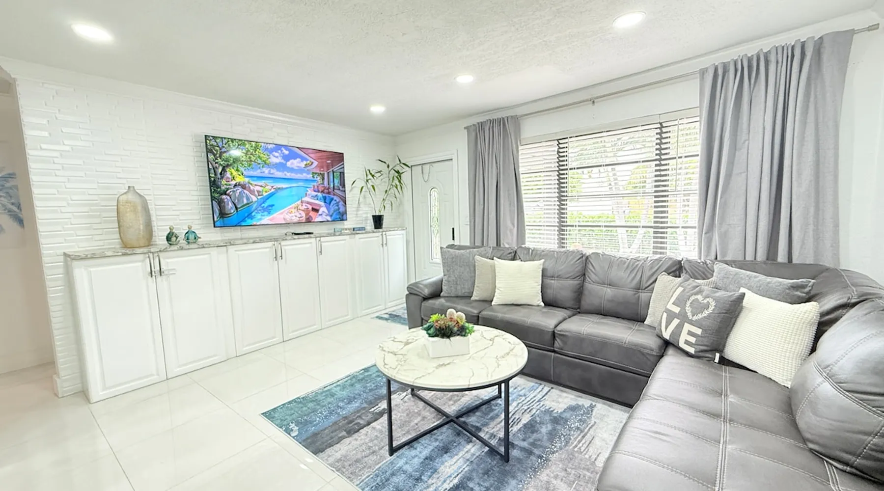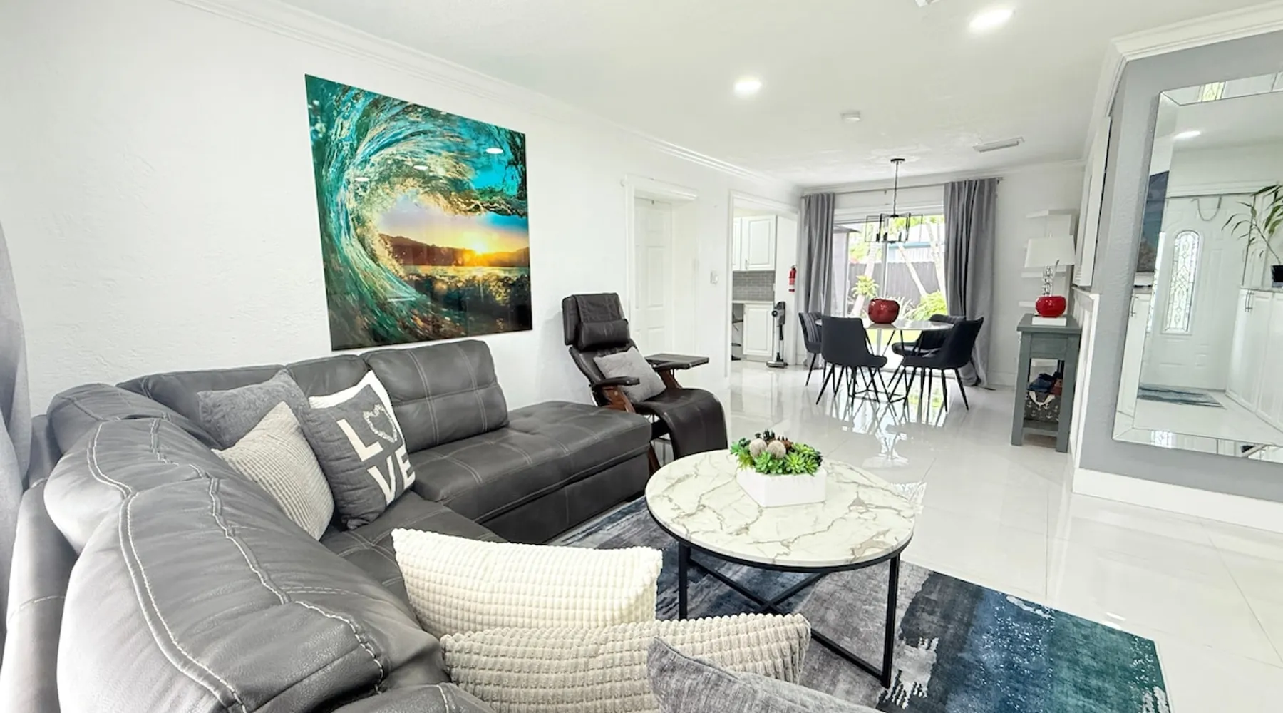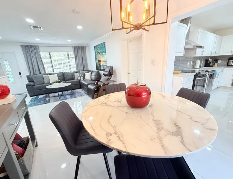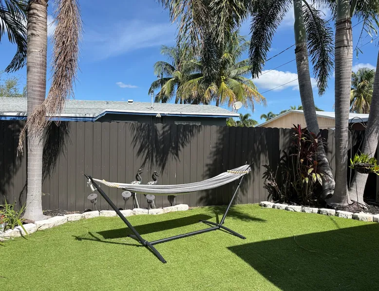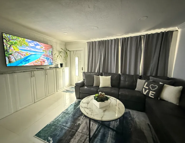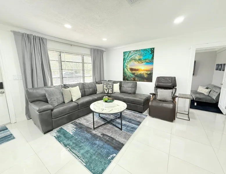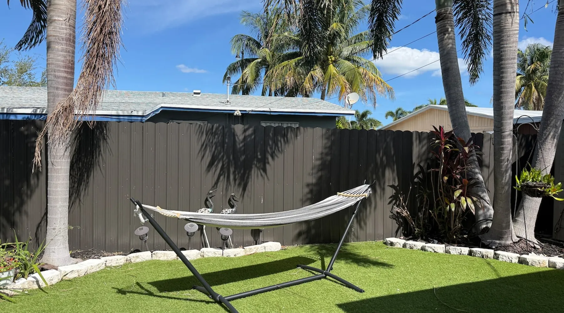 ✨ Welcome to your Pompano Beach getaway! This cozy 3BR, 1BA home is perfect for families or groups, sleeping up to 8 guests. Relax and enjoy all the comforts you need for a great stay. • 🛏 3 bedrooms with beds for 6 • 🛋 Futon for 2 extra guests • 🛀 Outdoor jacuzzi • 🍳 Full kitchen • 📺 Smart TV + Wi Fi • ❄️ Air conditioning • 🚗 Free parking • 🌴 Minutes to beaches, dining & shops Relax, unwind & enjoy Pompano ☀️🌊 The space ROOMS: This home comfortably sleeps up to 8 guests. Please see below for bed count: • Room 1: King Bed & A Futon with Smart TV (sleeps 4) • Room 2: Queen Bed with Smart TV (sleeps 2) • Room 3: Queen Bed with Smart TV (sleeps 2) LIVING ROOM: Sectional Sofa with Smart TV BATHROOM: 1 full bathroom stocked with shampoo, conditioner, body wash, hand soap, towels, and a hair dryer for your convenience. KITCHEN AND DINING: The kitchen is fully equipped with pots & pans, plates, cups, mugs, utensils, cooking tools, coffee maker, toaster oven, oven, dishwasher, refrigerator, and microwave. There is ample dining space with seating for everyone. OUTDOOR AREAS: Relax in your private backyard oasis featuring a jacuzzi and comfortable outdoor seating. Perfect for enjoying warm Florida evenings. PARKING: Free parking is available on-site for up to 2 cars. WHAT’S INCLUDED: Free Wi-Fi and Smart TVs throughout the home. A starter pack of essentials (toilet paper, paper towels, toiletries) is provided for your first few nights. Depending on the length of your stay, you may need to purchase additional supplies. DRIVING DISTANCES: • 8 mins to Pompano Beach & Pier (beach, restaurants, and shopping) • 10 mins to Lauderdale-by-the-Sea (charming beach town with dining & nightlife) • 15 mins to Fort Lauderdale Beach • 20 mins to Las Olas Blvd (shops, dining, and riverfront nightlife) • 25 mins to Fort Lauderdale Airport (FLL) • 25 mins to Hard Rock Hotel & Casino • 30 mins to Sawgrass Mills Mall (South Florida’s largest outlet mall) • 40 mins to Miami International Airport (MIA) • 40 mins to Wynwood & Downtown Miami • 45 mins to South Beach Guest access The entire house is for your exclusive use. Please observe check-in time is 4pm due to high occupancy and new cleaning standards we may not be able to allow for an early check-in. If you require an early check-in please check with host to block out an additional night (if available) at a discounted rate, this will guarantee an early check-in. Other things to note • 🚫 No Parties or Events – Please keep gatherings small and respectful. • 🚭 No Smoking Indoors – Smoking is welcome outside only. 🌿 • 📹 Security – Outdoor cameras are in place for your safety. • 🔊 Quiet Enjoyment – Kindly keep noise to a minimum to respect our neighbors. • ⏳ Support – If any issue comes up, let us know right away. While we’re not on-site 24/7, we’ll do our best to resolve things quickly. • 🐜 Nature in South Florida – Due to the tropical climate, you may occasionally see ants or roaches even in the cleanest homes. We provide monthly professional pest control and appreciate your understanding. Thank you for your understanding! 😊