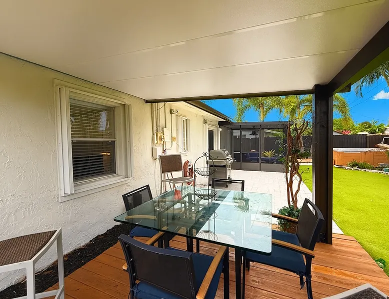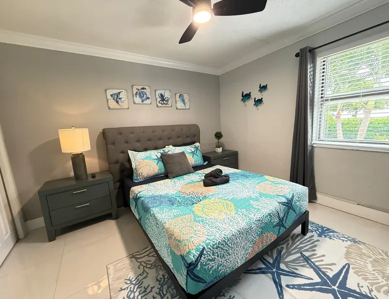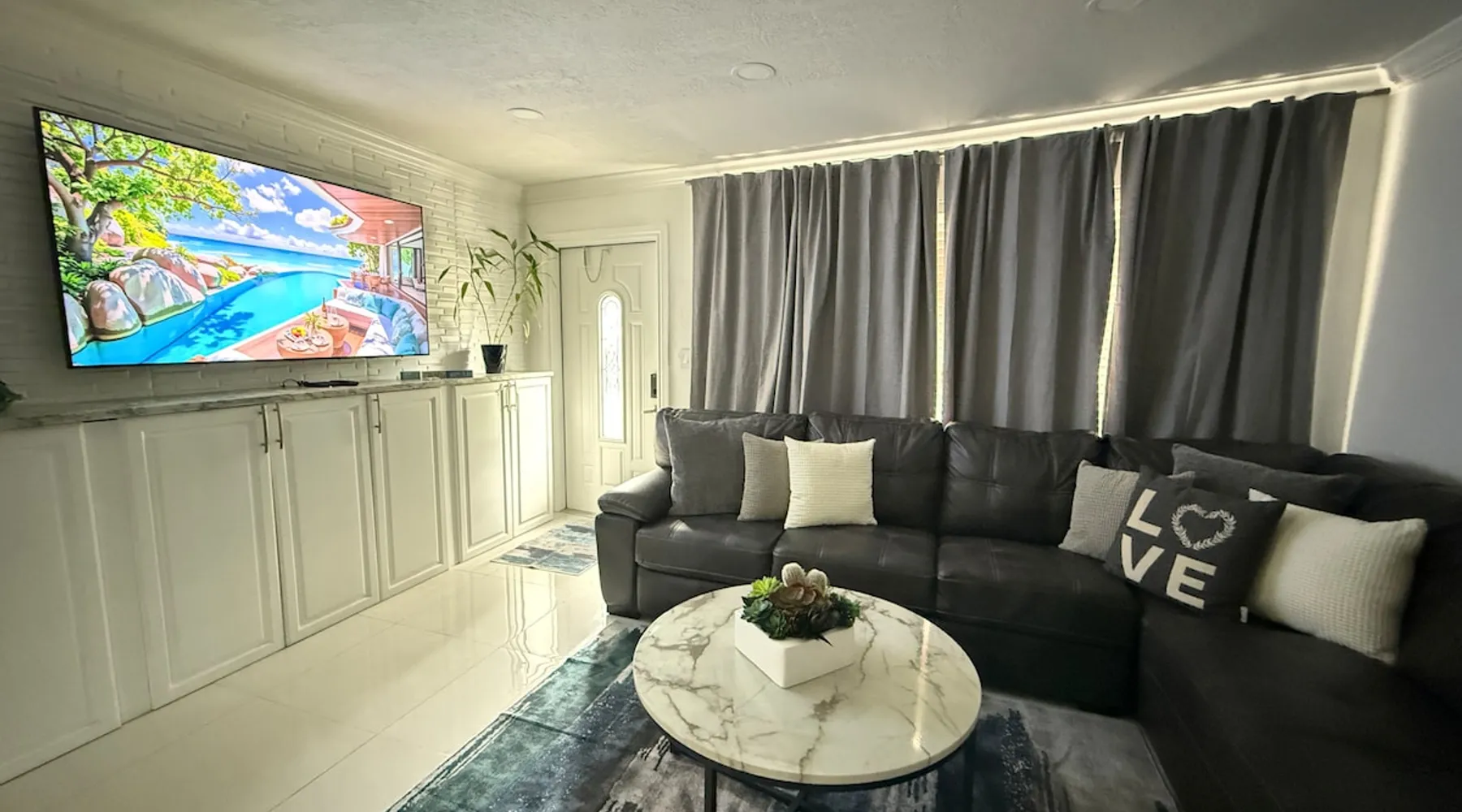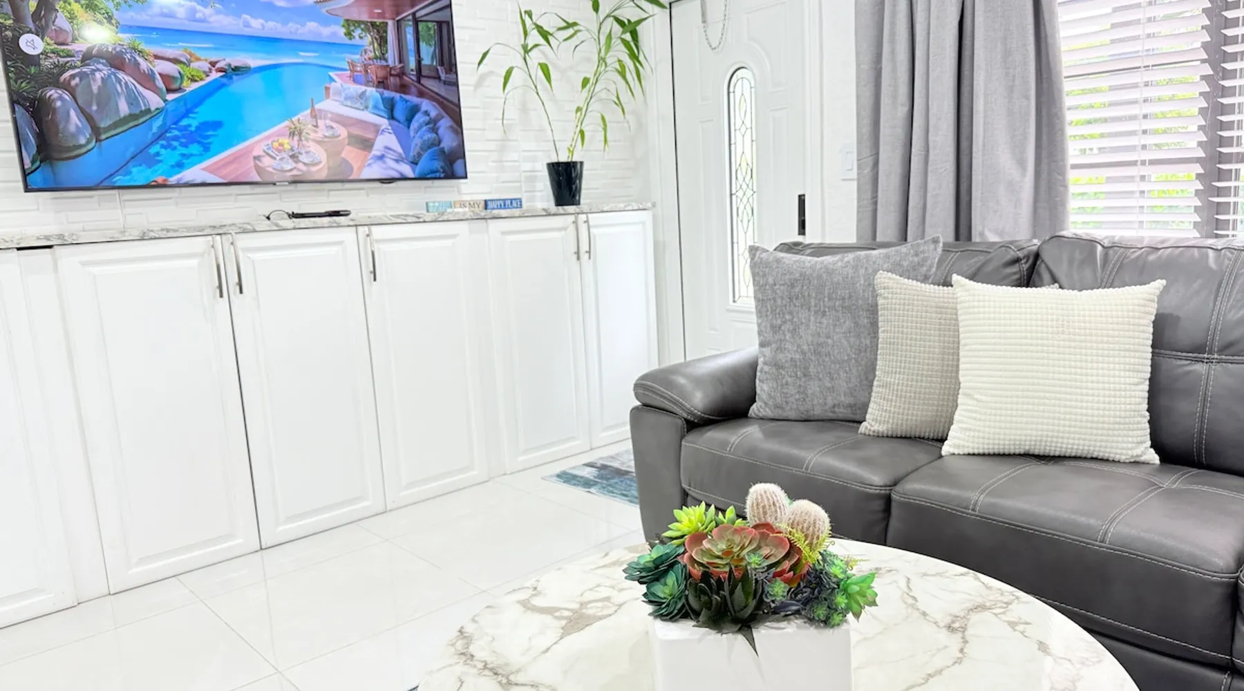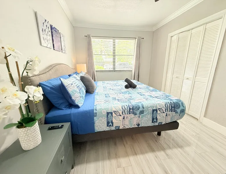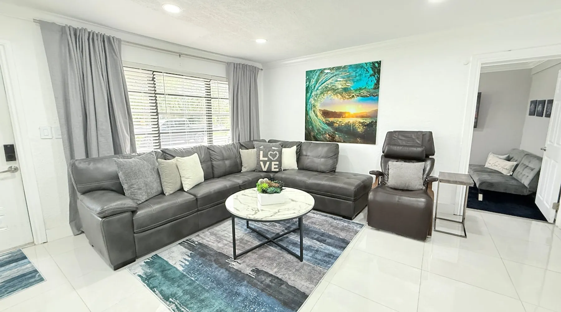 ✨ Welcome to your Pompano Beach getaway! This cozy 3BR, 1BA home is perfect for families or groups, sleeping up to 8 guests. Relax and enjoy all the comforts you need for a great stay. • 🛏 3 bedrooms with beds for 6 • 🛋 Futon for 2 extra guests • 🛀 Outdoor jacuzzi • 🍳 Full kitchen • 📺 Smart TV + Wi Fi • ❄️ Air conditioning • 🚗 Free parking • 🌴 Minutes to beaches, dining & shops Relax, unwind & enjoy Pompano ☀️🌊 The space ROOMS: This home comfortably sleeps up to 8 guests. Please see below for bed count: • Room 1: King Bed & A Futon with Smart TV (sleeps 4) • Room 2: Queen Bed with Smart TV (sleeps 2) • Room 3: Queen Bed with Smart TV (sleeps 2) LIVING ROOM: Sectional Sofa with Smart TV BATHROOM: 1 full bathroom stocked with shampoo, conditioner, body wash, hand soap, towels, and a hair dryer for your convenience. KITCHEN AND DINING: The kitchen is fully equipped with pots & pans, plates, cups, mugs, utensils, cooking tools, coffee maker, toaster oven, oven, dishwasher, refrigerator, and microwave. There is ample dining space with seating for everyone. OUTDOOR AREAS: Relax in your private backyard oasis featuring a jacuzzi and comfortable outdoor seating. Perfect for enjoying warm Florida evenings. PARKING: Free parking is available on-site for up to 2 cars. WHAT’S INCLUDED: Free Wi-Fi and Smart TVs throughout the home. A starter pack of essentials (toilet paper, paper towels, toiletries) is provided for your first few nights. Depending on the length of your stay, you may need to purchase additional supplies. DRIVING DISTANCES: • 8 mins to Pompano Beach & Pier (beach, restaurants, and shopping) • 10 mins to Lauderdale-by-the-Sea (charming beach town with dining & nightlife) • 15 mins to Fort Lauderdale Beach • 20 mins to Las Olas Blvd (shops, dining, and riverfront nightlife) • 25 mins to Fort Lauderdale Airport (FLL) • 25 mins to Hard Rock Hotel & Casino • 30 mins to Sawgrass Mills Mall (South Florida’s largest outlet mall) • 40 mins to Miami International Airport (MIA) • 40 mins to Wynwood & Downtown Miami • 45 mins to South Beach Guest access The entire house is for your exclusive use. Please observe check-in time is 4pm due to high occupancy and new cleaning standards we may not be able to allow for an early check-in. If you require an early check-in please check with host to block out an additional night (if available) at a discounted rate, this will guarantee an early check-in. Other things to note • 🚫 No Parties or Events – Please keep gatherings small and respectful. • 🚭 No Smoking Indoors – Smoking is welcome outside only. 🌿 • 📹 Security – Outdoor cameras are in place for your safety. • 🔊 Quiet Enjoyment – Kindly keep noise to a minimum to respect our neighbors. • ⏳ Support – If any issue comes up, let us know right away. While we’re not on-site 24/7, we’ll do our best to resolve things quickly. • 🐜 Nature in South Florida – Due to the tropical climate, you may occasionally see ants or roaches even in the cleanest homes. We provide monthly professional pest control and appreciate your understanding. Thank you for your understanding! 😊