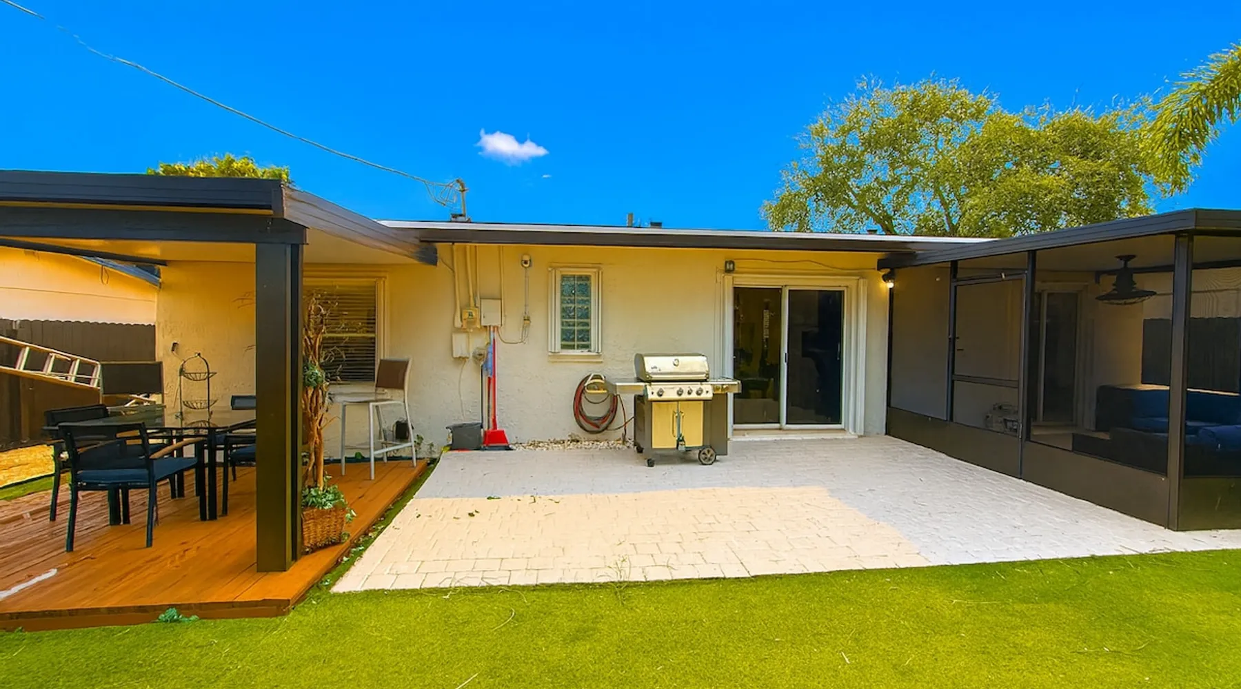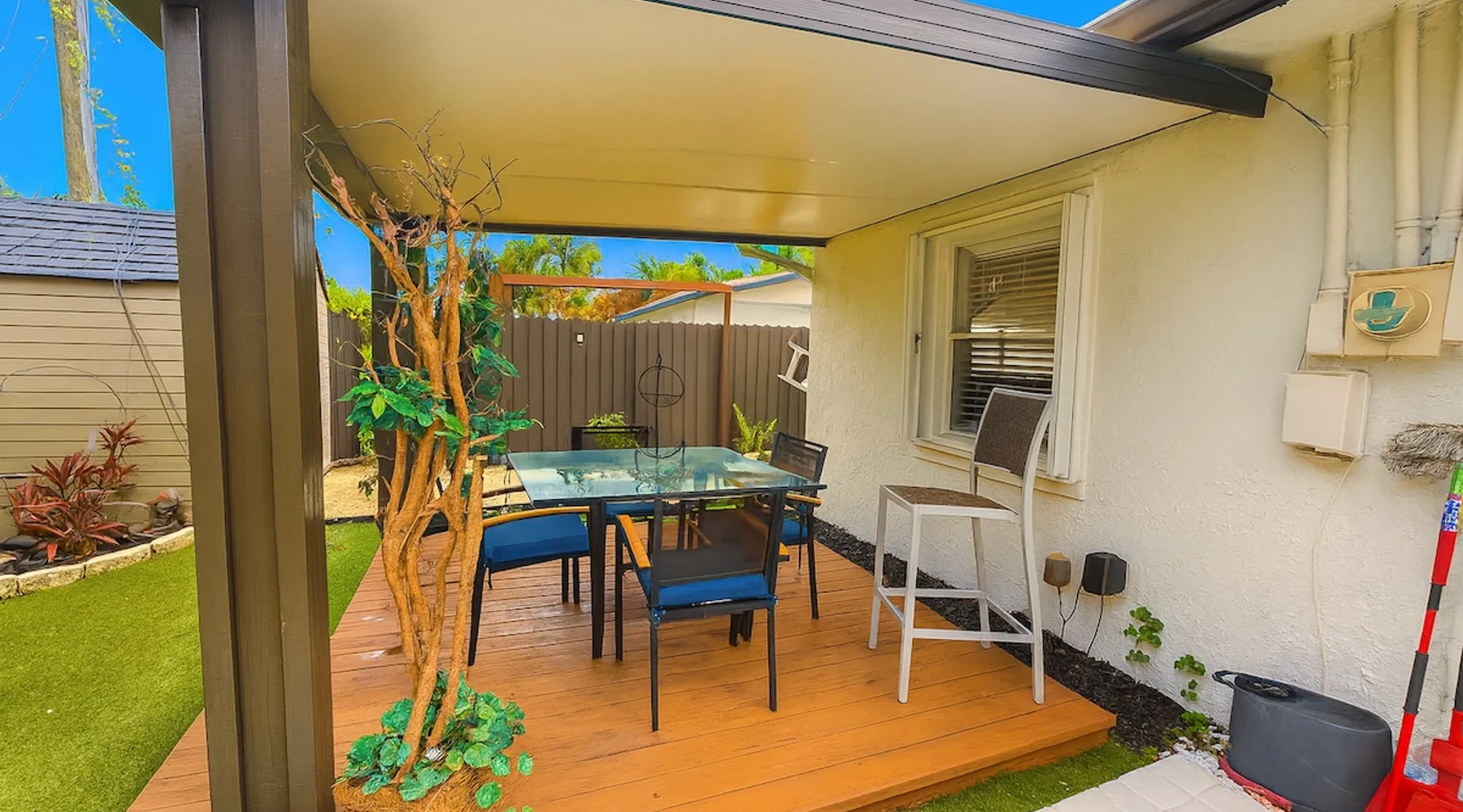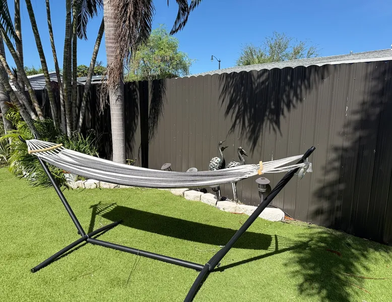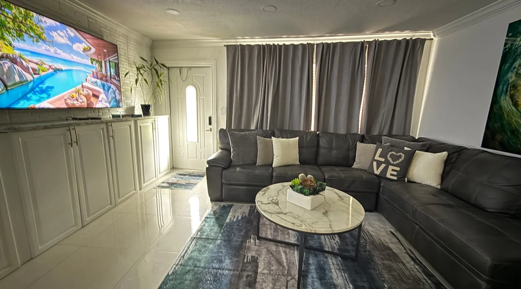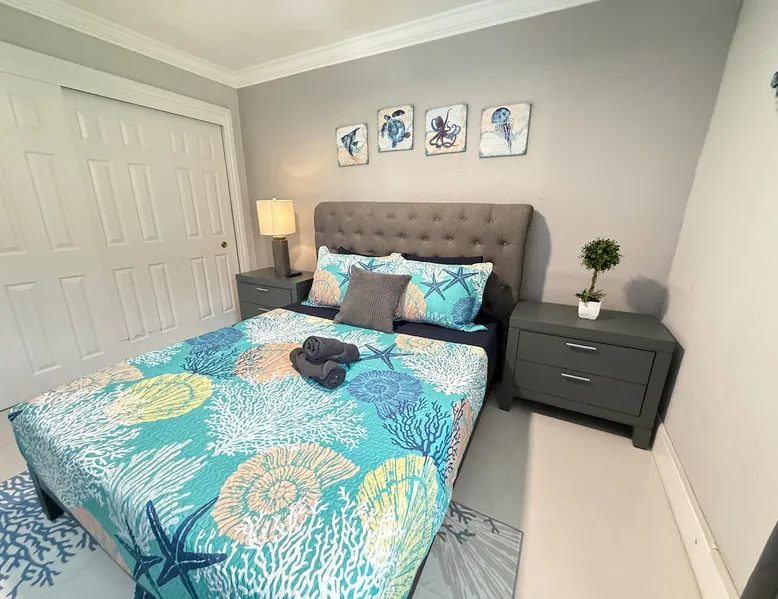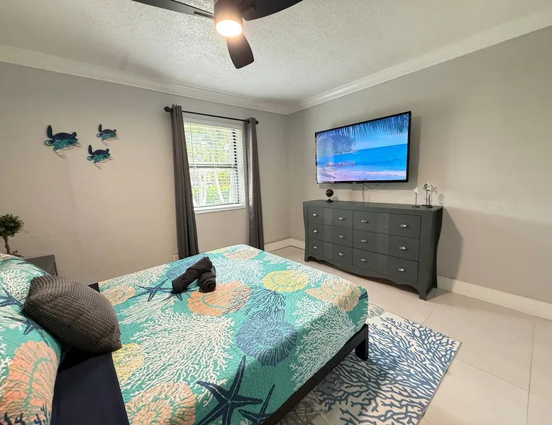 ✨ Welcome to your Pompano Beach getaway! This cozy 3BR, 1BA home is perfect for families or groups, sleeping up to 8 guests. Relax and enjoy all the comforts you need for a great stay. • 🛏 3 bedrooms with beds for 6 • 🛋 Futon for 2 extra guests • 🛀 Outdoor jacuzzi • 🍳 Full kitchen • 📺 Smart TV + Wi Fi • ❄️ Air conditioning • 🚗 Free parking • 🌴 Minutes to beaches, dining & shops Relax, unwind & enjoy Pompano ☀️🌊 The space ROOMS: This home comfortably sleeps up to 8 guests. Please see below for bed count: • Room 1: King Bed & A Futon with Smart TV (sleeps 4) • Room 2: Queen Bed with Smart TV (sleeps 2) • Room 3: Queen Bed with Smart TV (sleeps 2) LIVING ROOM: Sectional Sofa with Smart TV BATHROOM: 1 full bathroom stocked with shampoo, conditioner, body wash, hand soap, towels, and a hair dryer for your convenience. KITCHEN AND DINING: The kitchen is fully equipped with pots & pans, plates, cups, mugs, utensils, cooking tools, coffee maker, toaster oven, oven, dishwasher, refrigerator, and microwave. There is ample dining space with seating for everyone. OUTDOOR AREAS: Relax in your private backyard oasis featuring a jacuzzi and comfortable outdoor seating. Perfect for enjoying warm Florida evenings. PARKING: Free parking is available on-site for up to 2 cars. WHAT’S INCLUDED: Free Wi-Fi and Smart TVs throughout the home. A starter pack of essentials (toilet paper, paper towels, toiletries) is provided for your first few nights. Depending on the length of your stay, you may need to purchase additional supplies. DRIVING DISTANCES: • 8 mins to Pompano Beach & Pier (beach, restaurants, and shopping) • 10 mins to Lauderdale-by-the-Sea (charming beach town with dining & nightlife) • 15 mins to Fort Lauderdale Beach • 20 mins to Las Olas Blvd (shops, dining, and riverfront nightlife) • 25 mins to Fort Lauderdale Airport (FLL) • 25 mins to Hard Rock Hotel & Casino • 30 mins to Sawgrass Mills Mall (South Florida’s largest outlet mall) • 40 mins to Miami International Airport (MIA) • 40 mins to Wynwood & Downtown Miami • 45 mins to South Beach Guest access The entire house is for your exclusive use. Please observe check-in time is 4pm due to high occupancy and new cleaning standards we may not be able to allow for an early check-in. If you require an early check-in please check with host to block out an additional night (if available) at a discounted rate, this will guarantee an early check-in. Other things to note • 🚫 No Parties or Events – Please keep gatherings small and respectful. • 🚭 No Smoking Indoors – Smoking is welcome outside only. 🌿 • 📹 Security – Outdoor cameras are in place for your safety. • 🔊 Quiet Enjoyment – Kindly keep noise to a minimum to respect our neighbors. • ⏳ Support – If any issue comes up, let us know right away. While we’re not on-site 24/7, we’ll do our best to resolve things quickly. • 🐜 Nature in South Florida – Due to the tropical climate, you may occasionally see ants or roaches even in the cleanest homes. We provide monthly professional pest control and appreciate your understanding. Thank you for your understanding! 😊
