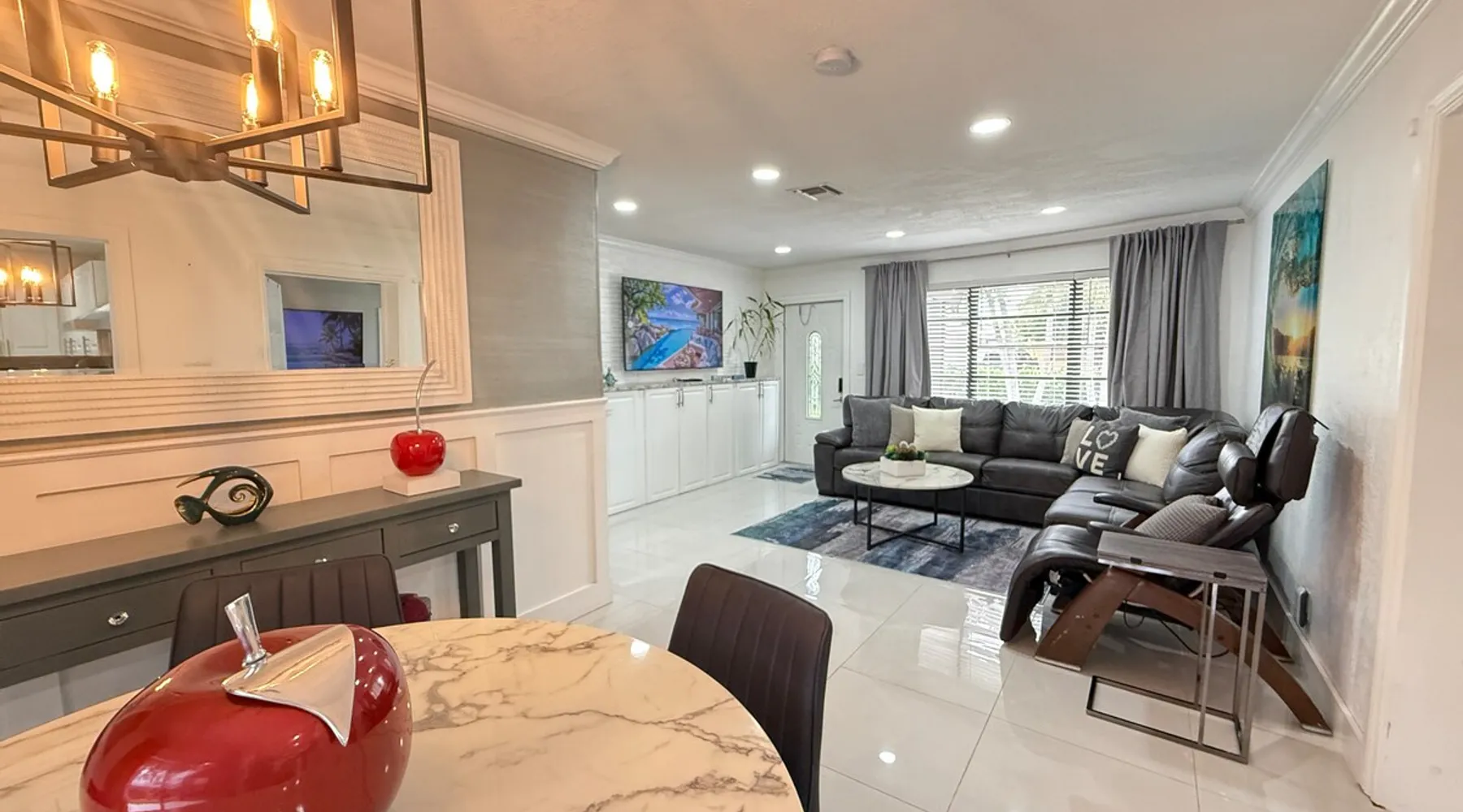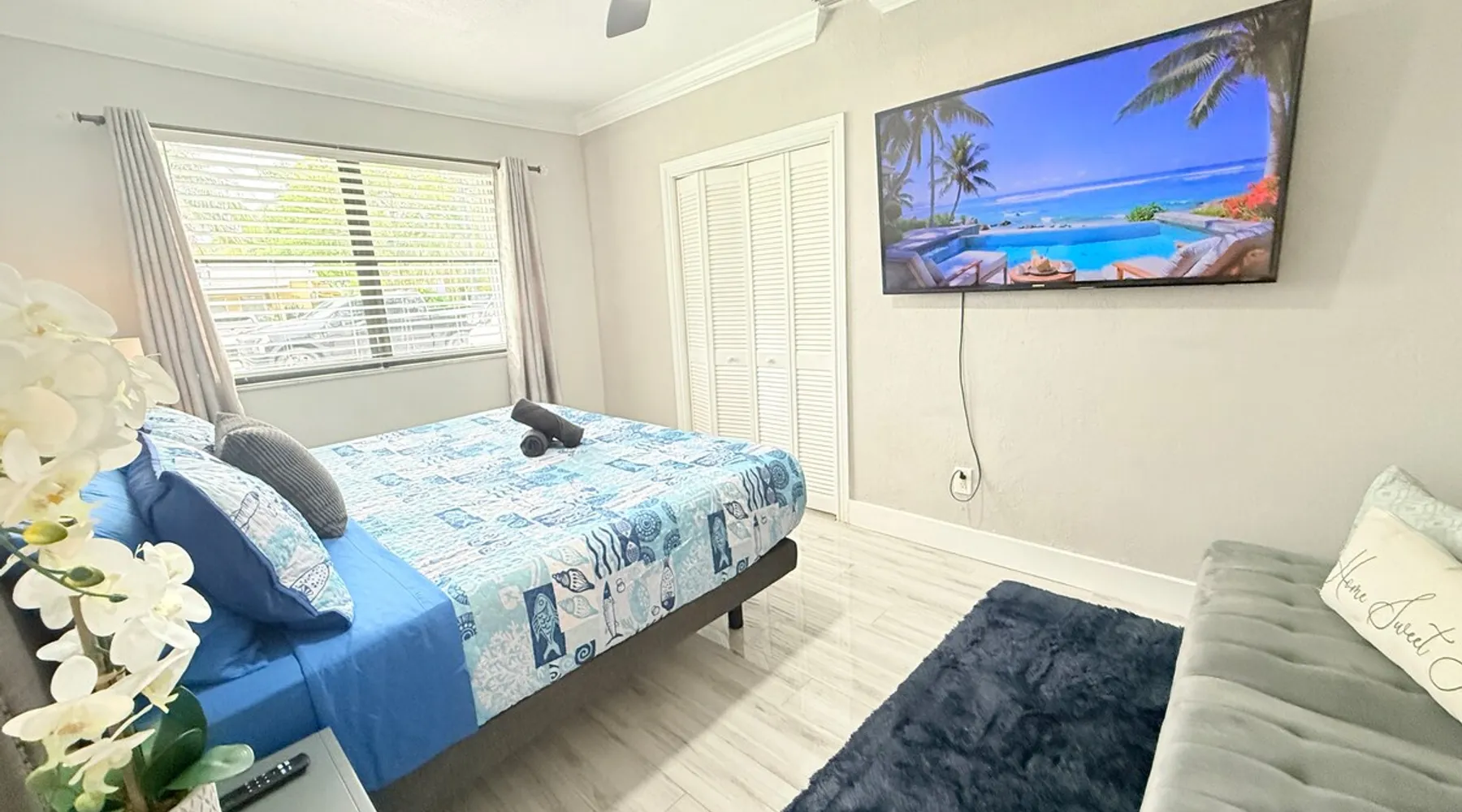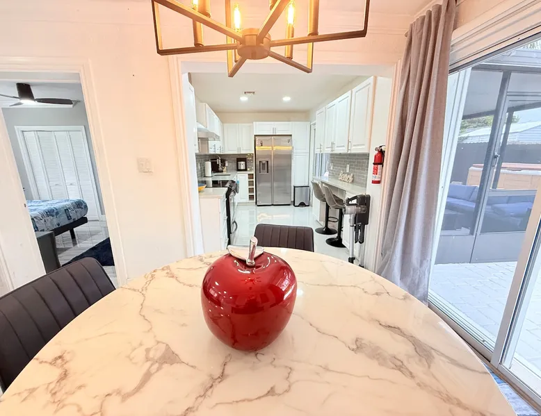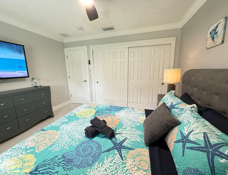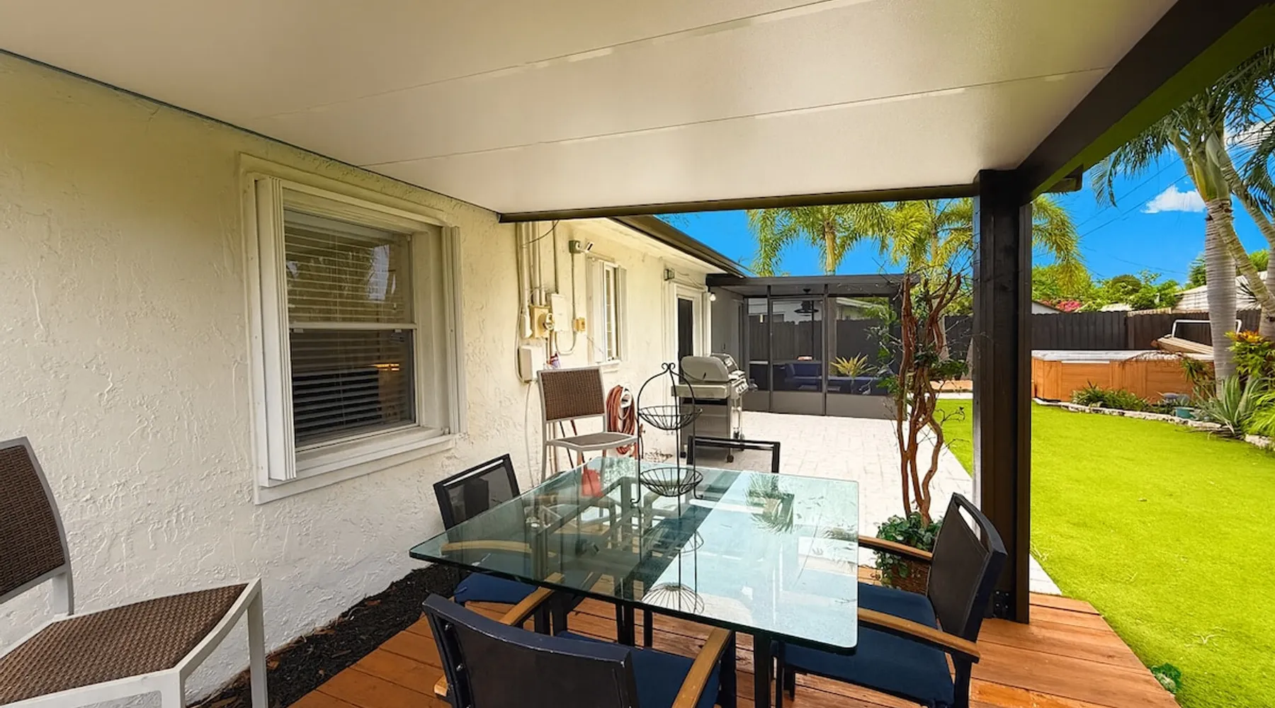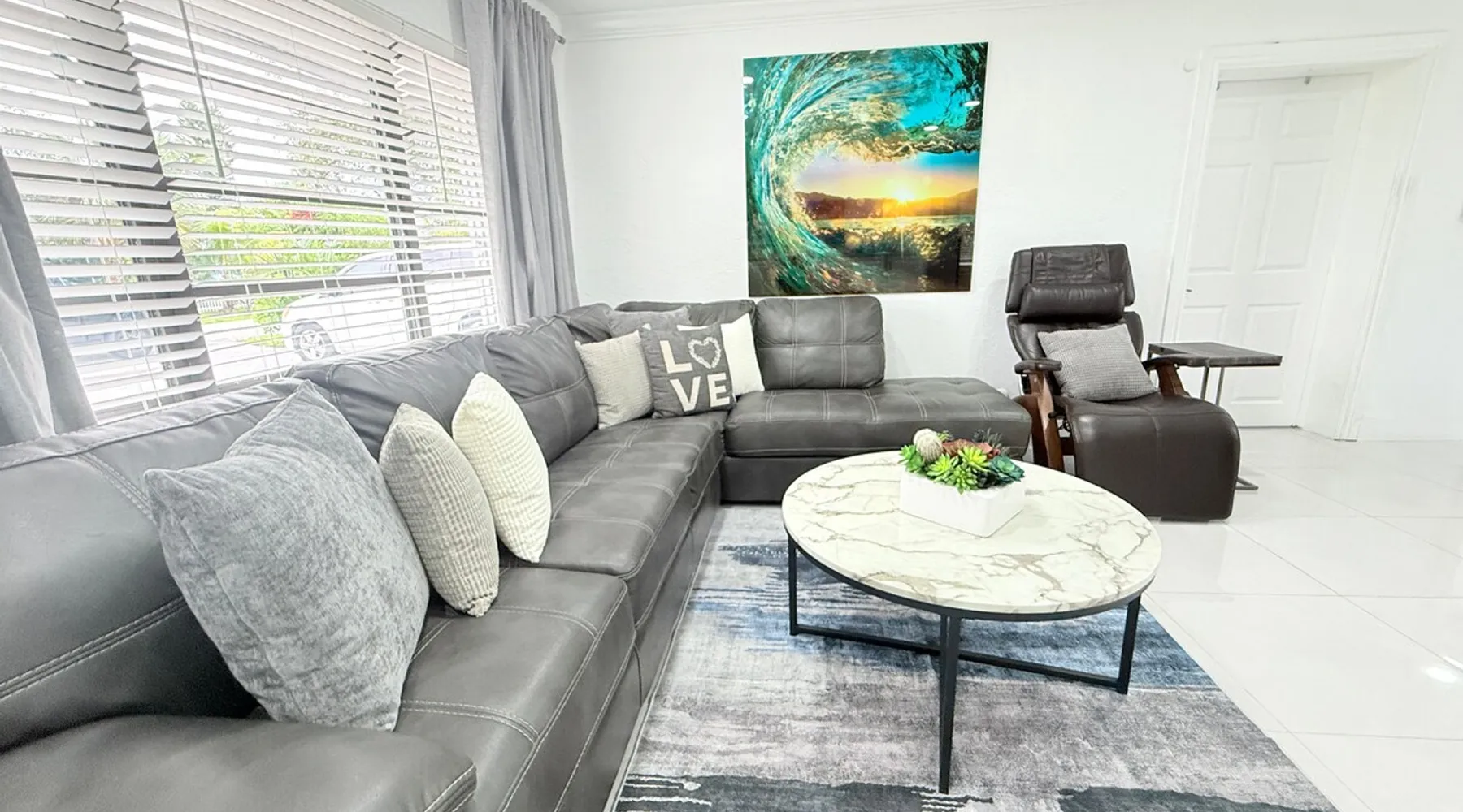✨ Welcome to your Pompano Beach getaway! This cozy 3BR, 1BA home is perfect for families or groups, sleeping up to 8 guests. Relax and enjoy all the comforts you need for a great stay. • 🛏 3 bedrooms with beds for 6 • 🛋 Futon for 2 extra guests • 🛀 Outdoor jacuzzi • 🍳 Full kitchen • 📺 Smart TV + Wi Fi • ❄️ Air conditioning • 🚗 Free parking • 🌴 Minutes to beaches, dining & shops Relax, unwind & enjoy Pompano ☀️🌊 The space ROOMS: This home comfortably sleeps up to 8 guests. Please see below for bed count: • Room 1: King Bed & A Futon with Smart TV (sleeps 4) • Room 2: Queen Bed with Smart TV (sleeps 2) • Room 3: Queen Bed with Smart TV (sleeps 2) LIVING ROOM: Sectional Sofa with Smart TV BATHROOM: 1 full bathroom stocked with shampoo, conditioner, body wash, hand soap, towels, and a hair dryer for your convenience. KITCHEN AND DINING: The kitchen is fully equipped with pots & pans, plates, cups, mugs, utensils, cooking tools, coffee maker, toaster oven, oven, dishwasher, refrigerator, and microwave. There is ample dining space with seating for everyone. OUTDOOR AREAS: Relax in your private backyard oasis featuring a jacuzzi and comfortable outdoor seating. Perfect for enjoying warm Florida evenings. PARKING: Free parking is available on-site for up to 2 cars. WHAT’S INCLUDED: Free Wi-Fi and Smart TVs throughout the home. A starter pack of essentials (toilet paper, paper towels, toiletries) is provided for your first few nights. Depending on the length of your stay, you may need to purchase additional supplies. DRIVING DISTANCES: • 8 mins to Pompano Beach & Pier (beach, restaurants, and shopping) • 10 mins to Lauderdale-by-the-Sea (charming beach town with dining & nightlife) • 15 mins to Fort Lauderdale Beach • 20 mins to Las Olas Blvd (shops, dining, and riverfront nightlife) • 25 mins to Fort Lauderdale Airport (FLL) • 25 mins to Hard Rock Hotel & Casino • 30 mins to Sawgrass Mills Mall (South Florida’s largest outlet mall) • 40 mins to Miami International Airport (MIA) • 40 mins to Wynwood & Downtown Miami • 45 mins to South Beach Guest access The entire house is for your exclusive use. Please observe check-in time is 4pm due to high occupancy and new cleaning standards we may not be able to allow for an early check-in. If you require an early check-in please check with host to block out an additional night (if available) at a discounted rate, this will guarantee an early check-in. Other things to note • 🚫 No Parties or Events – Please keep gatherings small and respectful. • 🚭 No Smoking Indoors – Smoking is welcome outside only. 🌿 • 📹 Security – Outdoor cameras are in place for your safety. • 🔊 Quiet Enjoyment – Kindly keep noise to a minimum to respect our neighbors. • ⏳ Support – If any issue comes up, let us know right away. While we’re not on-site 24/7, we’ll do our best to resolve things quickly. • 🐜 Nature in South Florida – Due to the tropical climate, you may occasionally see ants or roaches even in the cleanest homes. We provide monthly professional pest control and appreciate your understanding. Thank you for your understanding! 😊