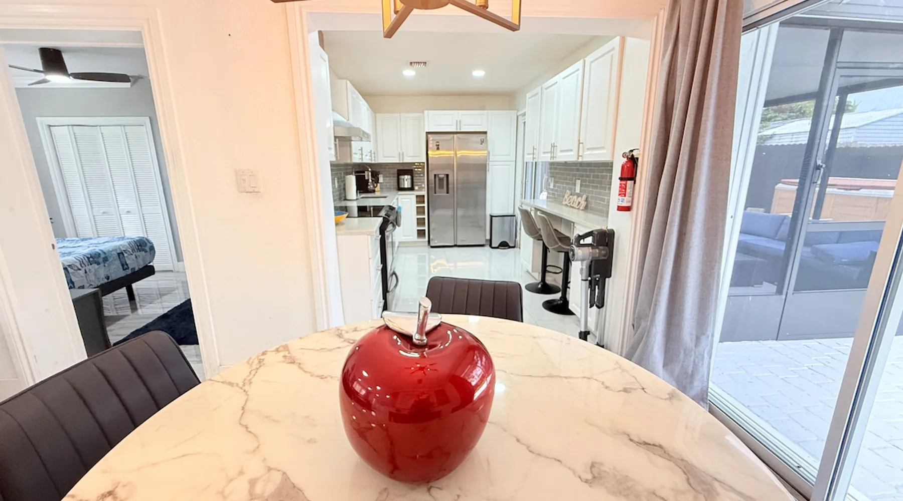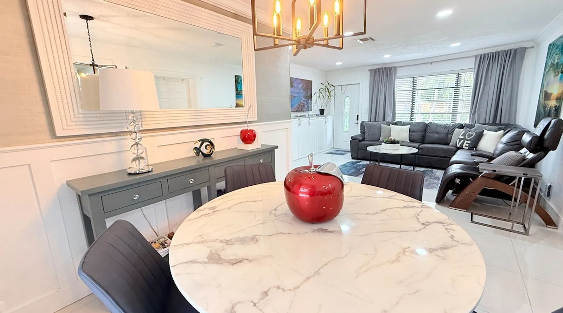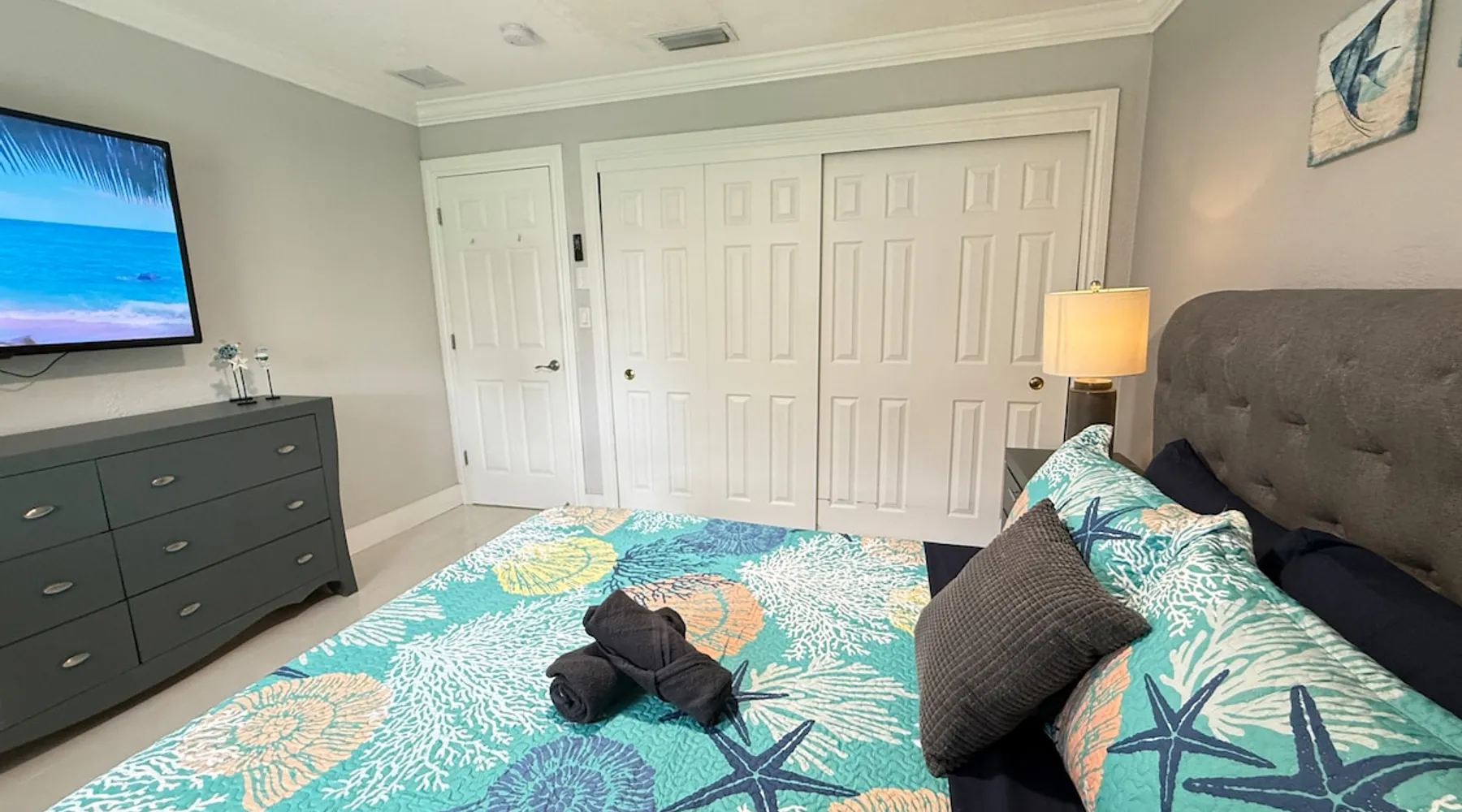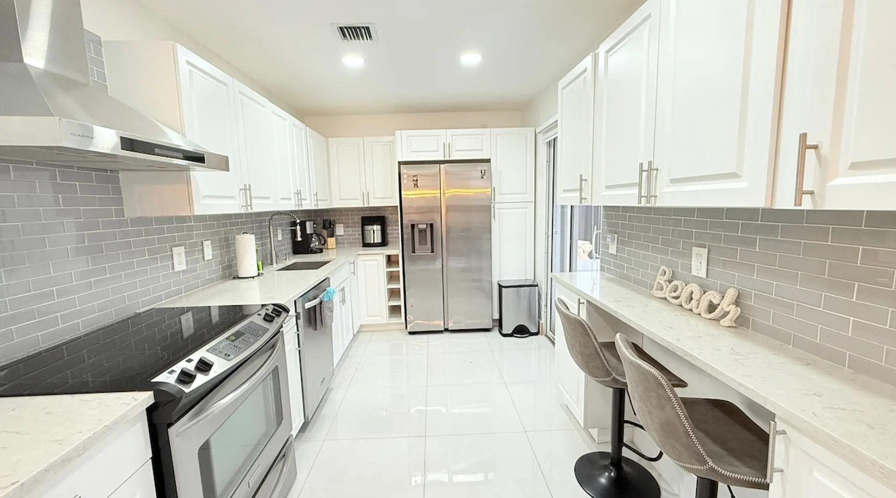 ✨ Welcome to your Pompano Beach getaway! This cozy 3BR, 1BA home is perfect for families or groups, sleeping up to 8 guests. Relax and enjoy all the comforts you need for a great stay. • 🛏 3 bedrooms with beds for 6 • 🛋 Futon for 2 extra guests • 🛀 Outdoor jacuzzi • 🍳 Full kitchen • 📺 Smart TV + Wi Fi • ❄️ Air conditioning • 🚗 Free parking • 🌴 Minutes to beaches, dining & shops Relax, unwind & enjoy Pompano ☀️🌊 The space ROOMS: This home comfortably sleeps up to 8 guests. Please see below for bed count: • Room 1: King Bed & A Futon with Smart TV (sleeps 4) • Room 2: Queen Bed with Smart TV (sleeps 2) • Room 3: Queen Bed with Smart TV (sleeps 2) LIVING ROOM: Sectional Sofa with Smart TV BATHROOM: 1 full bathroom stocked with shampoo, conditioner, body wash, hand soap, towels, and a hair dryer for your convenience. KITCHEN AND DINING: The kitchen is fully equipped with pots & pans, plates, cups, mugs, utensils, cooking tools, coffee maker, toaster oven, oven, dishwasher, refrigerator, and microwave. There is ample dining space with seating for everyone. OUTDOOR AREAS: Relax in your private backyard oasis featuring a jacuzzi and comfortable outdoor seating. Perfect for enjoying warm Florida evenings. PARKING: Free parking is available on-site for up to 2 cars. WHAT’S INCLUDED: Free Wi-Fi and Smart TVs throughout the home. A starter pack of essentials (toilet paper, paper towels, toiletries) is provided for your first few nights. Depending on the length of your stay, you may need to purchase additional supplies. DRIVING DISTANCES: • 8 mins to Pompano Beach & Pier (beach, restaurants, and shopping) • 10 mins to Lauderdale-by-the-Sea (charming beach town with dining & nightlife) • 15 mins to Fort Lauderdale Beach • 20 mins to Las Olas Blvd (shops, dining, and riverfront nightlife) • 25 mins to Fort Lauderdale Airport (FLL) • 25 mins to Hard Rock Hotel & Casino • 30 mins to Sawgrass Mills Mall (South Florida’s largest outlet mall) • 40 mins to Miami International Airport (MIA) • 40 mins to Wynwood & Downtown Miami • 45 mins to South Beach Guest access The entire house is for your exclusive use. Please observe check-in time is 4pm due to high occupancy and new cleaning standards we may not be able to allow for an early check-in. If you require an early check-in please check with host to block out an additional night (if available) at a discounted rate, this will guarantee an early check-in. Other things to note • 🚫 No Parties or Events – Please keep gatherings small and respectful. • 🚭 No Smoking Indoors – Smoking is welcome outside only. 🌿 • 📹 Security – Outdoor cameras are in place for your safety. • 🔊 Quiet Enjoyment – Kindly keep noise to a minimum to respect our neighbors. • ⏳ Support – If any issue comes up, let us know right away. While we’re not on-site 24/7, we’ll do our best to resolve things quickly. • 🐜 Nature in South Florida – Due to the tropical climate, you may occasionally see ants or roaches even in the cleanest homes. We provide monthly professional pest control and appreciate your understanding. Thank you for your understanding! 😊