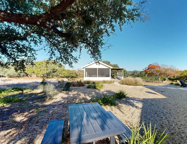 The space Green Acres Escape to this luxurious yet cozy farmstead home, a perfect retreat for those seeking both relaxation and refinement, set against breathtaking country views that stretch up to 15 miles. At night, the sky comes alive with a blanket of stars, creating an enchanting ambiance that will make your stay truly unforgettable. Located in the heart of Hye, Texas, this charming ranch property is the ultimate home away from home. Elegantly designed with comfort in mind, the home features inviting sleeping arrangements ideal for families or groups. Its thoughtful amenities include a washer and dryer, high-speed internet, cable TV, access to your favorite streaming services, and a fully equipped kitchen—ensuring a seamless stay. This property offers a peaceful and scenic setting, with rolling fields and a spacious patio featuring a cozy fire pit. The expansive land provides plenty of room for children to play and explore. A charming cottage completes the picture, offering a comfortable and inviting space to unwind. Whether you’re relaxing indoors or enjoying the natural beauty of the outdoors, this ranch offers a perfect retreat from the busyness of daily life. Should you deisre to venture out and do some wine tasting, please note that William Chris Vineyard is close by and has numerous accolades, including being named one of the World's 50 Best vinyards and was awarded by Austin Monthly as the number one winery in TX. Book your stay today and experience the comfort, tranquility, and charm of this beautiful property. Things to Know: Due to the Hill Country location of our rentals, you may encounter situations with wildlife/pests. Please be aware of your surroundings, take caution while driving at night and supervise your children at all times while outdoors. In addition, all properties do utilize pest control maintenance on a regular basis, BUT this does not guarantee pests/bugs/critters will not be visible. No dog(s) are welcome in this home. No other animals are allowed without specific Vacasa approval. Parking notes: There is free parking available for 6 vehicles. Please note: this home resides in a noise-sensitive area and the owners participate in our Good Neighbor protection program. Our smart home technology will alert our team if excessive decibel or occupancy levels are detected, allowing us to reach out directly with a reminder of maximun occupancy and quiet hours. This technology is privacy compliant, and only monitors the presence of decibels and devices -not any personal conversation or information. Thank you for supporting our efforts to be good neighbors! Damage waiver: The total cost of your reservation for this Property includes a damage waiver fee which covers you for up to $3,000 of accidental damage to the Property or its contents (such as furniture, fixtures, and appliances) as long as you report the incident to the host prior to checking out. More information can be found from the "Additional rules" on the checkout page. Due to local laws or HOA requirements, guests must be at least 25 years of age to book. Guests under 25 must be accompanied by a parent or legal guardian for the duration of the reservation.