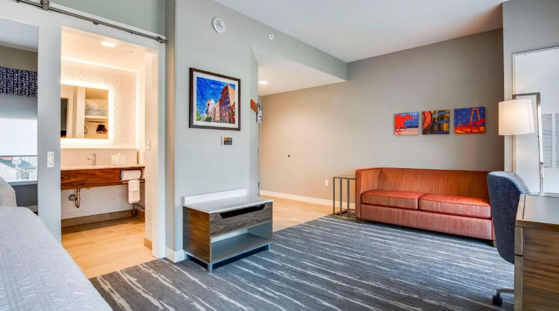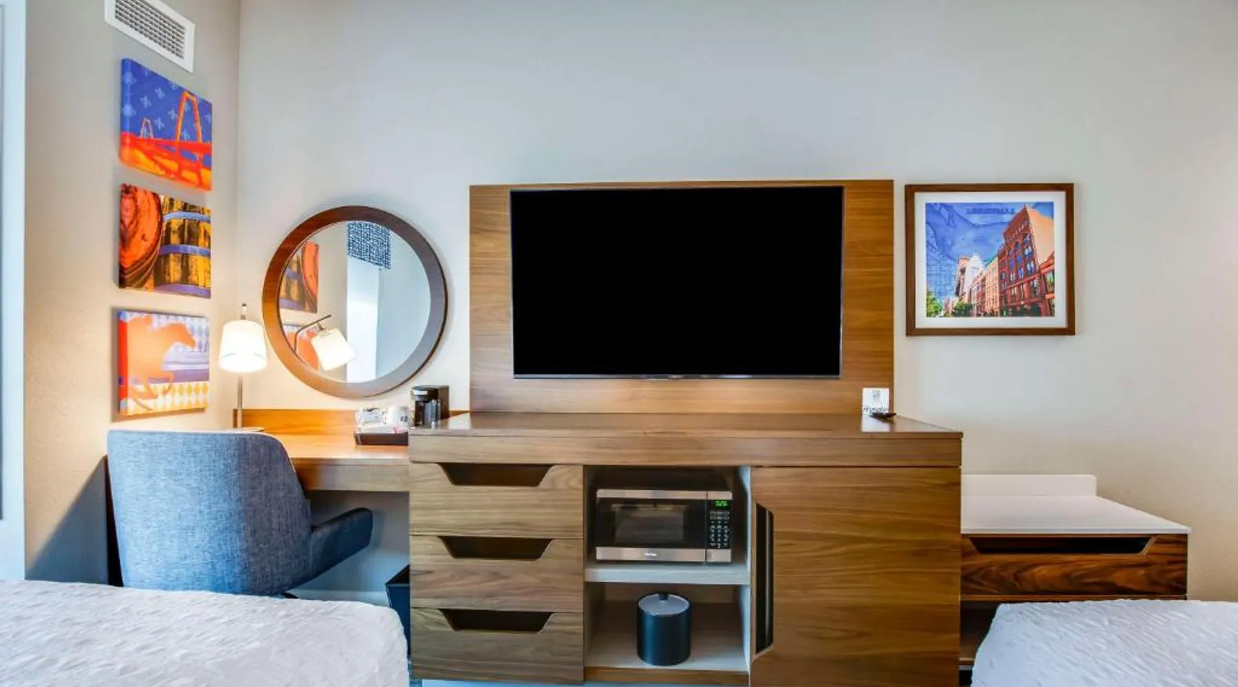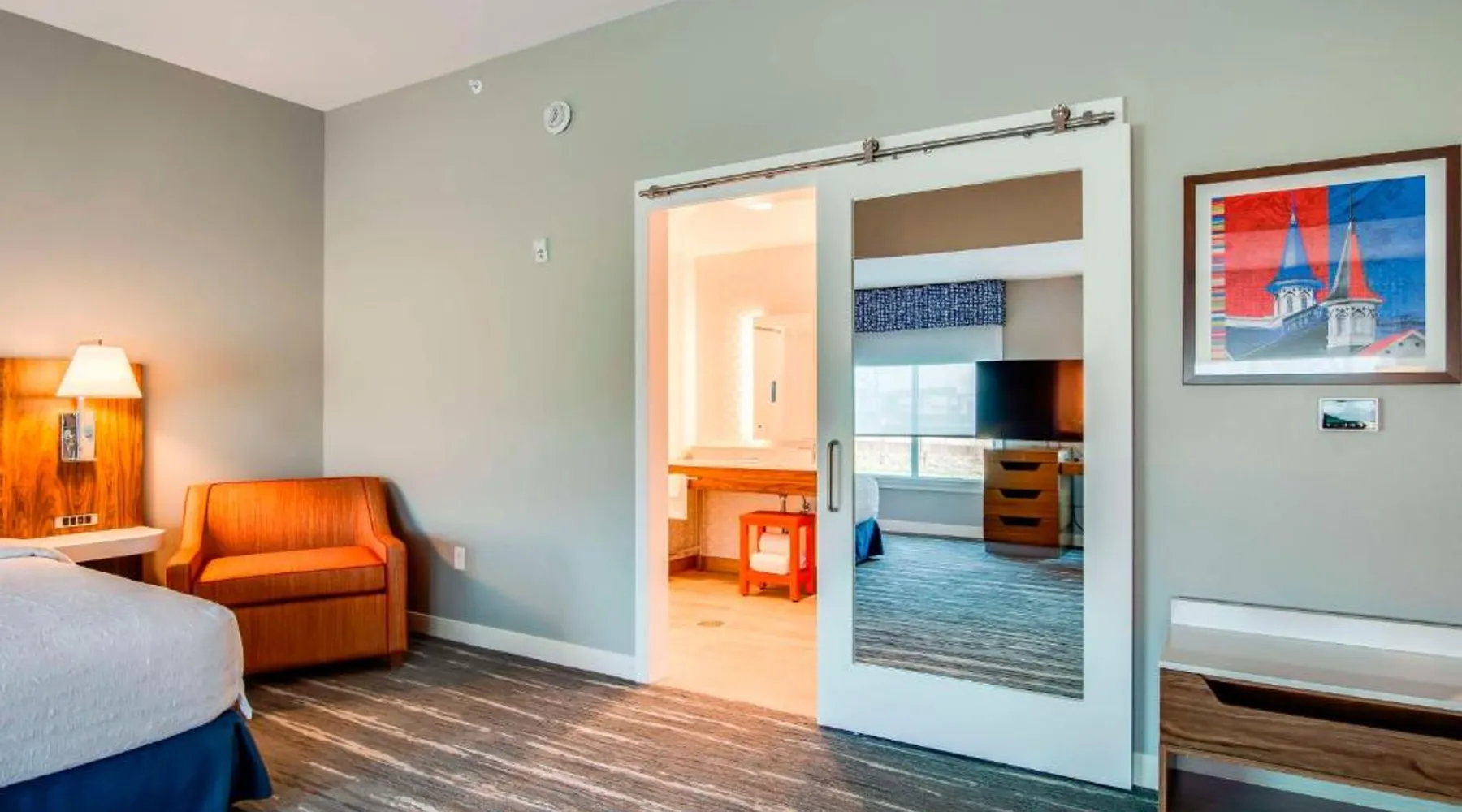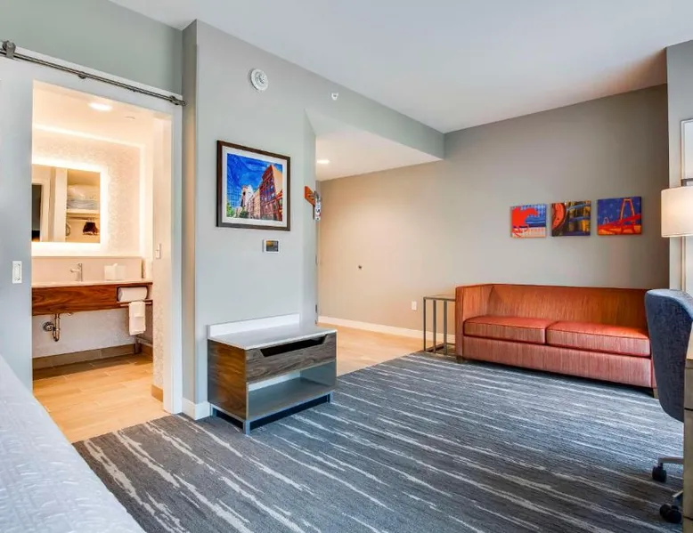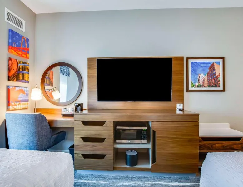 Comfortable Accommodations: Hampton Inn & Suites By Hilton Louisville East Oxmoor in Louisville offers comfortable rooms with air-conditioning, refrigerators, microwaves, tea and coffee makers, hairdryers, work desks, and free toiletries. Leisure Facilities: Guests can enjoy an indoor swimming pool, fitness room, and a 24-hour front desk. Additional amenities include a elevator and free WiFi throughout the property. Convenient Location: Located 9.3 mi from Louisville International Airport, the hotel is close to attractions such as Louisville Mega Cavern (8.1 mi), Louisville Zoo (8.7 mi), and Louisville Slugger Field (9.3 mi). The studio provides air conditioning, a tea and coffee maker and heating. The unit offers 2 beds.