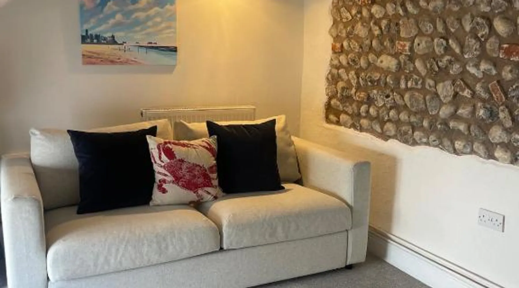 Comfortable Living Space: Beachway in Cromer offers a one-bedroom apartment with a living room. The property includes a washing machine, kitchen, dining table, sofa bed, and TV. Modern Amenities: Guests enjoy free WiFi, a fully equipped kitchen with a refrigerator, microwave, dishwasher, oven, and toaster. Additional amenities include a hairdryer, electric kettle, and kitchenware. Pet Friendly: The apartment welcomes pets, ensuring a pleasant stay for travelers with animals. Prime Location: Located 21 mi from Norwich International Airport, Beachway is a short walk from Cromer Beach and 656 feet from Cromer Pier. Nearby attractions include Blickling Hall (12 mi) and Norwich Cathedral (24 mi). A bakery is also in the surroundings. Meals can be prepared in the well-fitted kitchen, which comes with a refrigerator, a dishwasher, kitchenware and an oven. The apartment provides a washing machine, an electric kettle, tumble dryer, a sofa and a flat-screen TV with cable channels. The unit offers 2 beds.