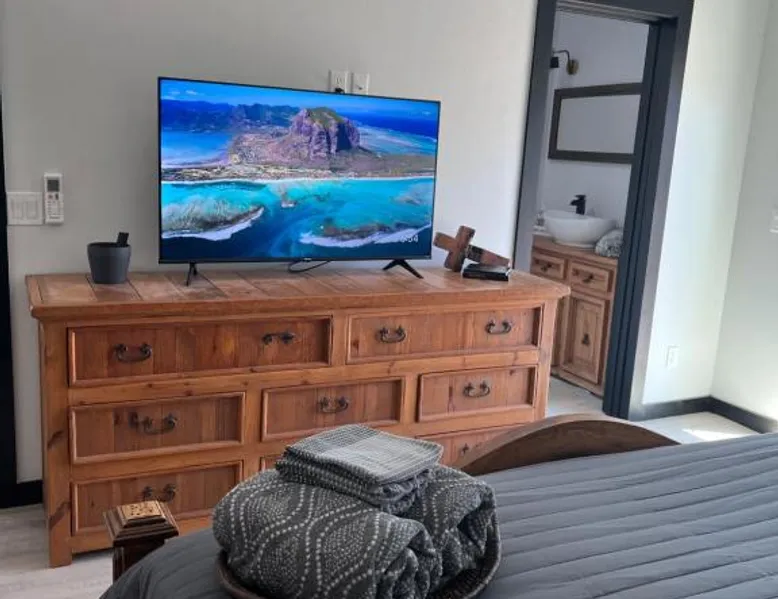 Comfortable Accommodations: Pine Tree With King Bed in Prescott offers a guest house with a terrace and free WiFi. The property is pet-friendly and welcomes guests with their furry companions. Modern Amenities: Each room features air-conditioning, a private bathroom, tea and coffee maker, mountain views, hairdryer, dining table, refrigerator, shower, TV, dining area, kitchenware, and wardrobe. Free on-site private parking is available. Convenient Location: Ernest A Love Field Airport is 11 mi away. Prescott College lies 6.8 mi from the property. Reception staff speak English and Spanish. The double room provides air conditioning, a tea and coffee maker, as well as a private bathroom featuring a shower and a hairdryer. The unit offers 1 bed.