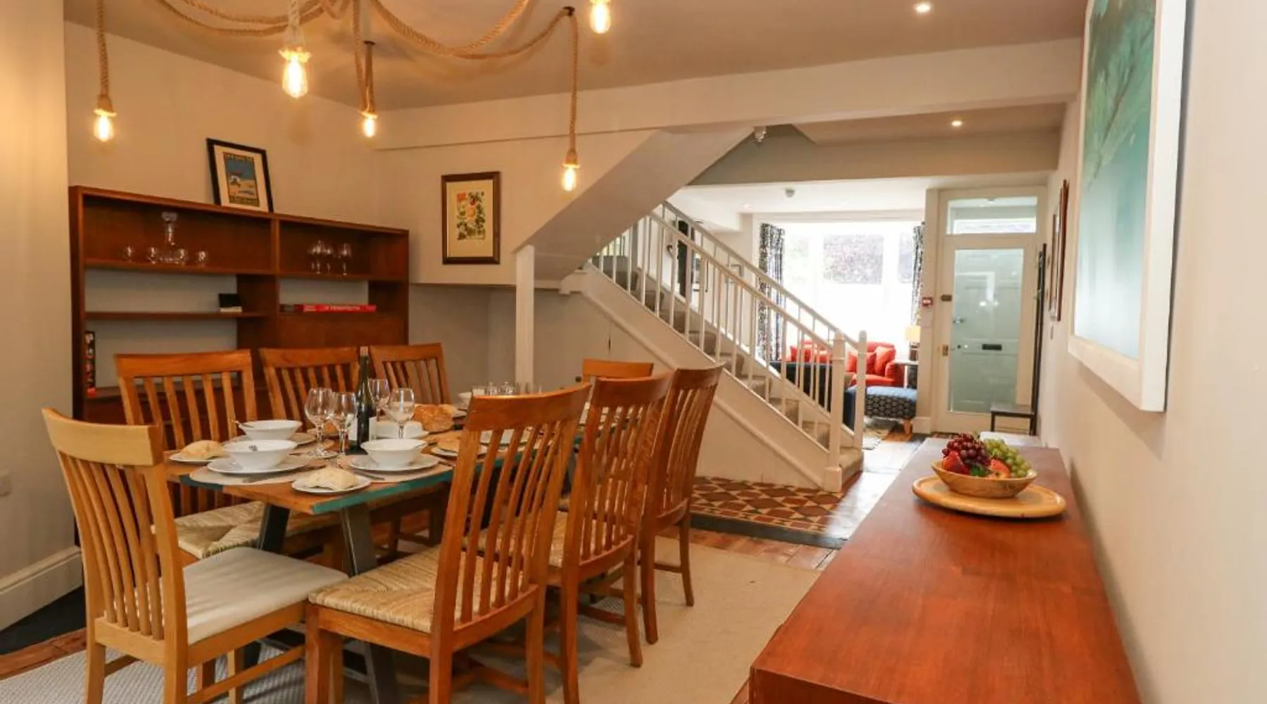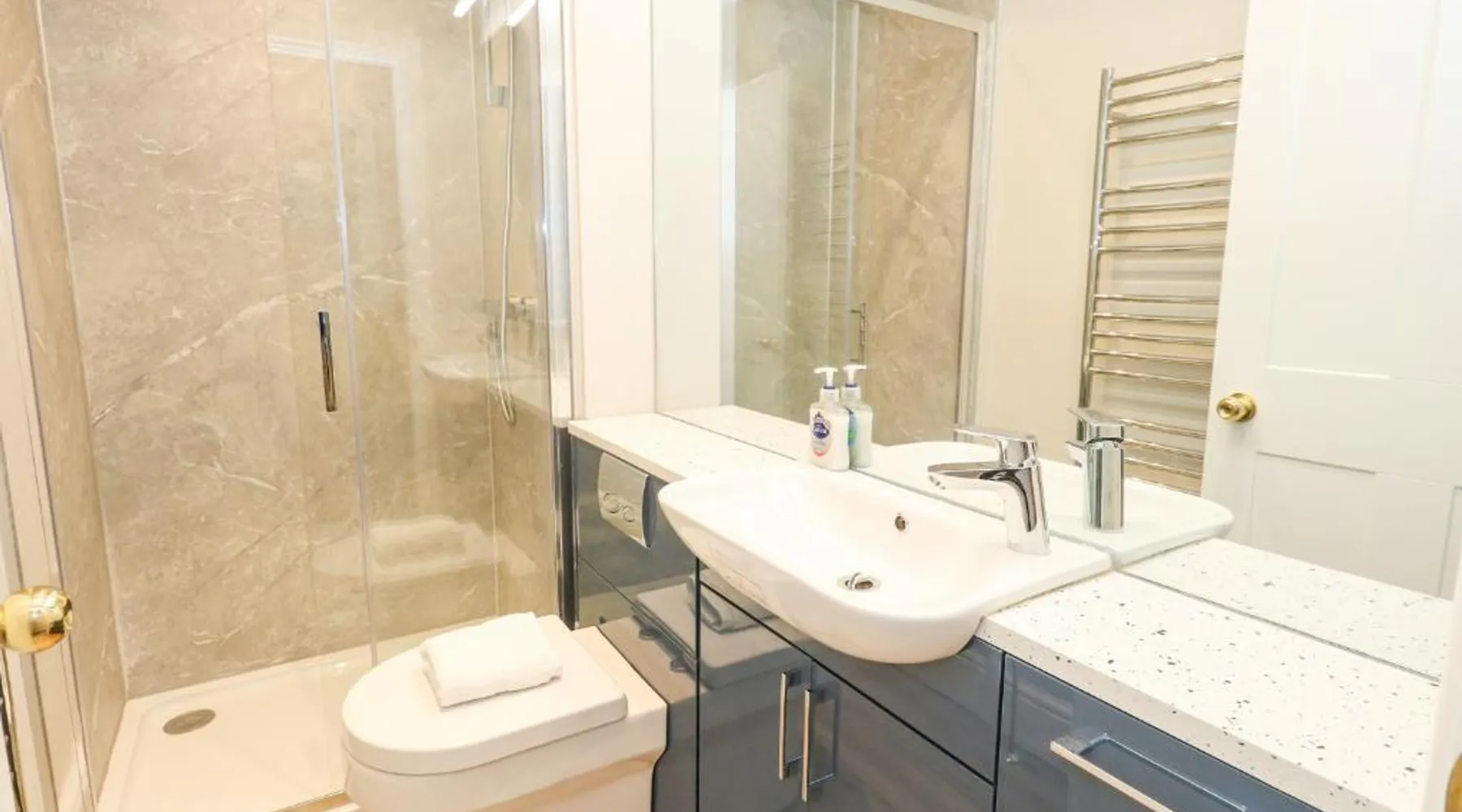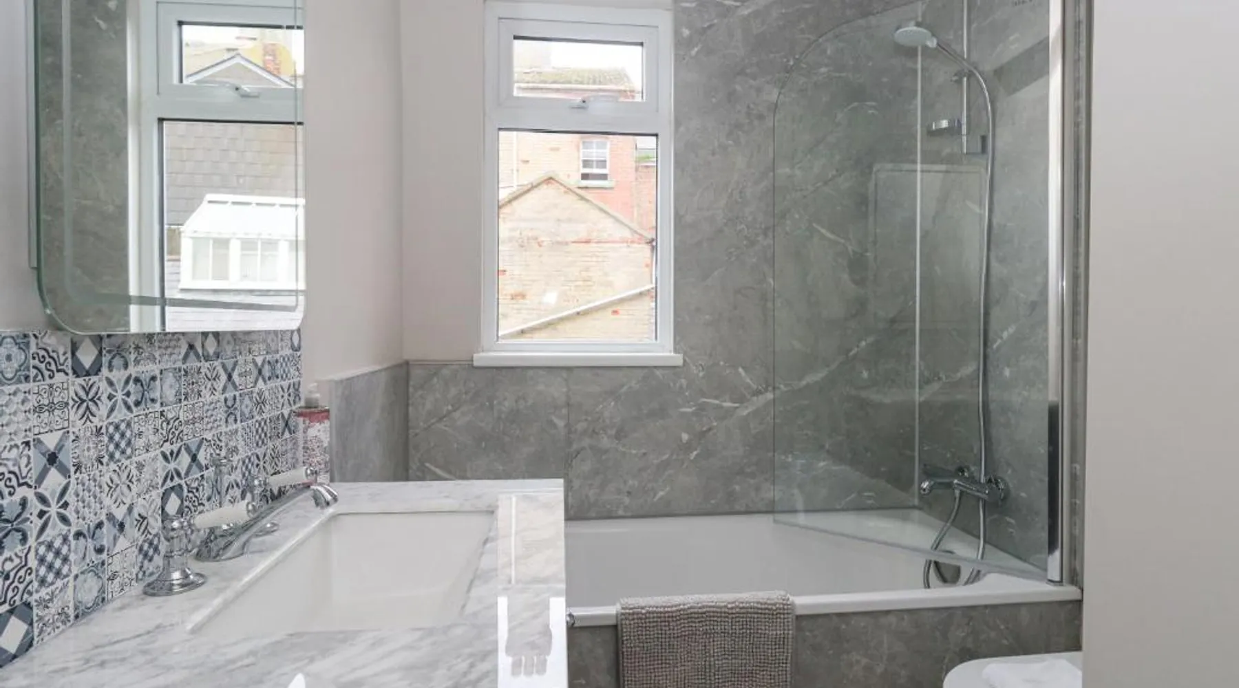Spacious Accommodations: Shore View in Weymouth offers a spacious holiday home with five bedrooms and three bathrooms. Guests enjoy sea views, a fully equipped kitchen, and a cozy fireplace. Modern Amenities: The property features free WiFi, a washing machine, and a dishwasher. Additional amenities include a walk-in shower, refrigerator, microwave, and TV. Convenient Location: Weymouth Beach is a 3-minute walk away, while Weymouth Harbor lies 1.2 mi from the property. Bournemouth Airport is 37 mi distant. Nearby attractions include Portland Castle (5 mi) and Monkey World (16 mi). Guests will have a special experience as the holiday home offers a fireplace. This spacious holiday home consists of 5 bedrooms, a seating area with a sofa and 3 bathrooms with a walk-in shower. Guests can make meals in the kitchen that is equipped with a stovetop, a refrigerator, a dishwasher and an oven. The holiday home provides a washing machine, a dining area, a wardrobe, a TV, as well as sea views. The unit offers 7 beds.