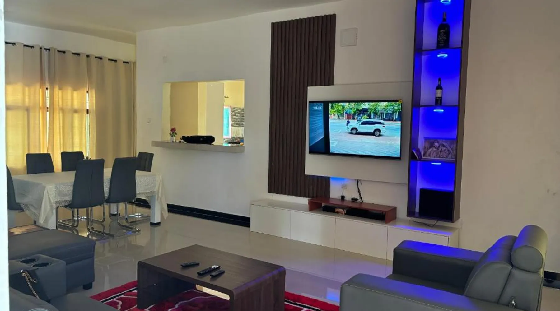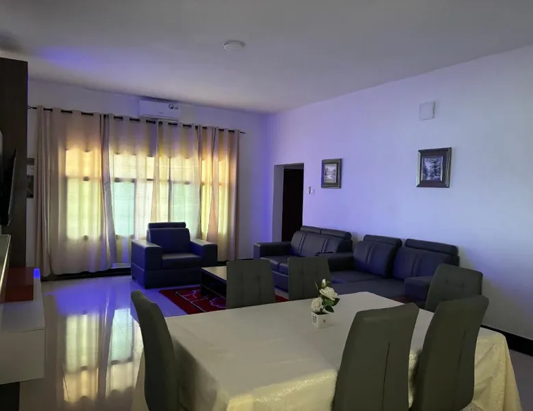 Comfortable Accommodations: Bella House in Inhambane offers a two-bedroom apartment with two bathrooms and a spacious living room. The property features family rooms and a garden, providing a relaxing environment for all guests. Modern Amenities: The apartment includes air-conditioning, a balcony, patio, and a fully equipped kitchen with a refrigerator, microwave, oven, and stovetop. Additional amenities include a dining table, outdoor dining area, TV, sofa, and tiled floors. Convenient Location: Located 5 mi from Inhambane Airport, Bella House is 17 mi from Tofinho Monument. The quiet street offers garden views and free on-site private parking, ensuring a pleasant stay. Featuring 2 bedrooms and 2 bathrooms, this air-conditioned apartment consists of a living room and seating area. Guests can make meals in the kitchen that is equipped with a stovetop, a refrigerator, kitchenware and an oven. Boasting a balcony with garden views, this apartment also provides a mini-bar and a flat-screen TV with satellite channels. The unit offers 3 beds.