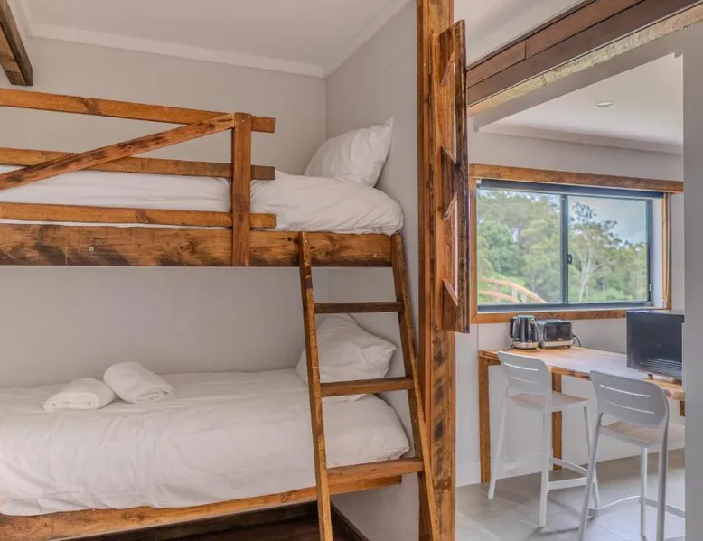 Comfortable Accommodations: Mount Mee Country Lodge in Mount Mee offers a lodge with air-conditioning, private bathrooms, and free toiletries. Each room includes a tea and coffee maker, hairdryer, dining table, microwave, shower, TV, and electric kettle. Convenient Amenities: Guests can enjoy a dining area, dining table, and a fully equipped kitchen. The lodge provides a comfortable space with a TV and a relaxing environment. Accessible Location: Located 43 mi from Brisbane Airport, the lodge offers easy access to local attractions. Reception staff speak English, ensuring a pleasant stay for all visitors. The quadruple room features air conditioning, a tea and coffee maker, as well as a private bathroom boasting a shower and a hairdryer. This quadruple room offers a dining area and a flat-screen TV. The unit has 3 beds.
