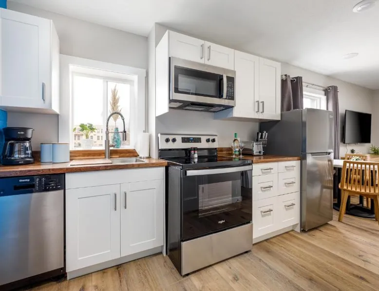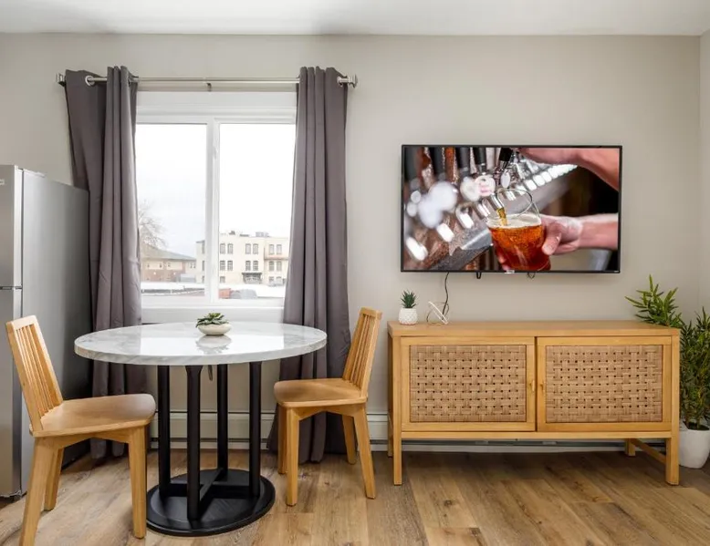 Spacious Accommodations: Downtown Newly Remodeled Apartment AC Beach Restaurants Breweries Nightlife in Traverse City offers a spacious apartment with one bedroom and one bathroom. Free WiFi is available throughout the property. Modern Amenities: The apartment includes air-conditioning, a washing machine, a fully equipped kitchen with a refrigerator, microwave, dishwasher, oven, stovetop, toaster, and tea and coffee maker. Additional amenities include a hairdryer, shower, and TV. Convenient Location: Located 3.1 mi from Cherry Capital Airport, the property is a 6-minute walk from West End Beach and less than 0.6 mi from Clinch Park. Nearby attractions include Dennos Museum Center At Northwestern Michigan College (2.5 mi) and Great Wolf Lodge Traverse City (2.5 mi). Guests can make meals in the kitchen that features a stovetop, a refrigerator, a dishwasher and kitchenware. The spacious apartment features air conditioning, a washing machine, a tea and coffee maker, tumble dryer and a TV with cable channels. The unit has 2 beds.