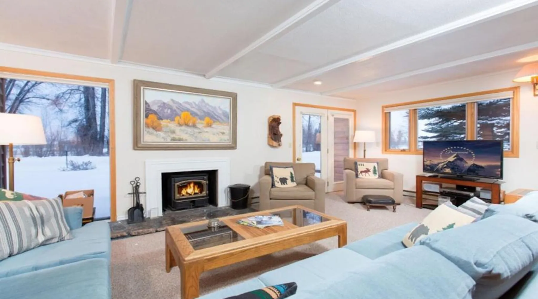 Spacious Accommodations: Wister A in Jackson offers a spacious apartment with three bedrooms and three bathrooms. The property features a fully equipped kitchen, washing machine, and a dining area. Amenities and Facilities: Guests can enjoy a restaurant, picnic area, and children's playground. The apartment includes a fireplace, barbecue, and mountain views. Additional amenities include a work desk, TV, and free toiletries. Activities and Attractions: Skiing and cycling are available nearby. Grand Teton National Park is 7.5 mi away, while Jackson Hole Airport is 1.9 mi from the property. Other attractions include Center For The Arts (8.1 mi) and Shooting Star Jackson Hole Golf Club (19 mi). Highly Rated by Guests: Wister A receives high ratings from guests for its spaciousness and excellent facilities. The fireplace is the standout feature of this apartment. The spacious apartment has 3 bedrooms and 3 bathrooms with a walk-in shower and free toiletries. Guests will find a stovetop, a refrigerator, a dishwasher and kitchenware in the well-fitted kitchen. The apartment also includes a barbecue. The apartment features a flat-screen TV with cable channels, a washing machine, a private entrance, a tea and coffee maker as well as mountain views. The unit has 4 beds and 1 futon.