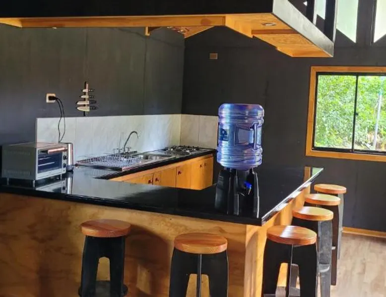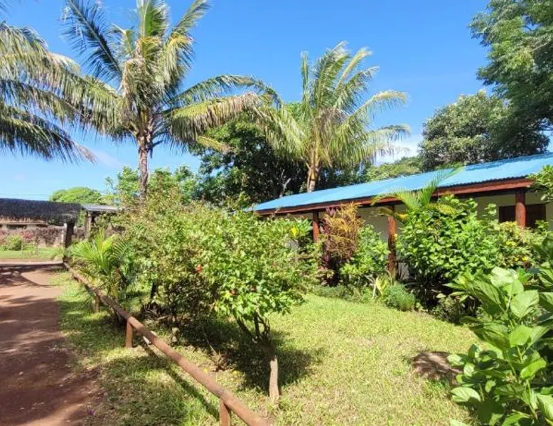 Comfortable Accommodations: Cabañas Raquel Roe in Hanga Roa offers a guest house with free on-site private parking. Each room includes a kitchenette, private bathroom, tea and coffee maker, hairdryer, dining table, refrigerator, shower, dining area, electric kettle, kitchenware, and wardrobe. Modern Amenities: Guests can enjoy air-conditioning, a terrace with garden views, and a dining area. Additional amenities include a terrace, garden views, and a dining area. Local Attractions: Located a few steps from Mataveri International Airport, the property is 1.2 mi from Pea and 12 mi from Ahu Tongariki. Nearby attractions include Hanga Roa Anthropological Museum (1.9 mi), Vinapu (2.5 mi), and Rano Kau (3.7 mi). Activities: The surroundings offer scuba diving opportunities. The double room's kitchenette, which has a refrigerator and kitchenware, is available for cooking and storing food. The double room offers air conditioning, a tea and coffee maker, a terrace with garden views as well as a private bathroom boasting a shower.