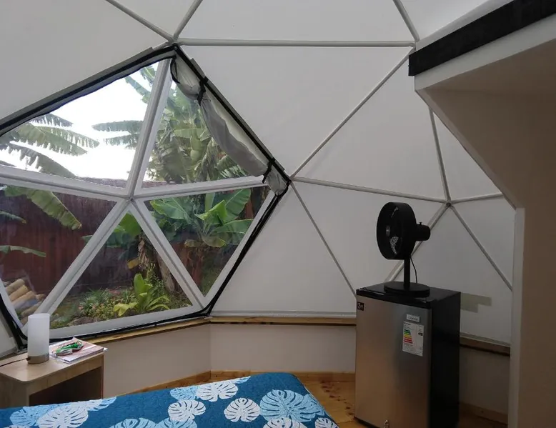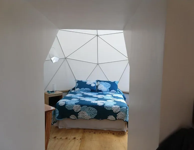 Located 1640 feet from the city center and 0.6 mi from Pea beach, Mama Nui offers glamping accommodations in Hanga Roa. Guests at Mama Nui are received with a flower necklace. Providing a tranquil environment, the bungalows in Mama Nui feature balconies with panoramic sea views and private external bathrooms. 2 bungalows stand 9.8 feet above ground level with staircase access, and 1 is located at ground level right next to the garden. Capacity for 2 up to 4 people. Guests at Mama Nui are provided 24-hour front desk assistance and free private parking is possible at a location nearby. A restaurant is featured on site. Mama Nui is 1.2 mi from Mataveri international airport. The triple room features a private entrance, a mini-bar, a terrace with pool views as well as a private bathroom boasting a shower. The unit has 3 beds.