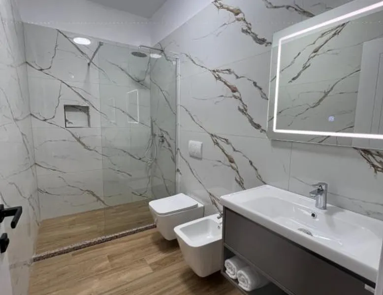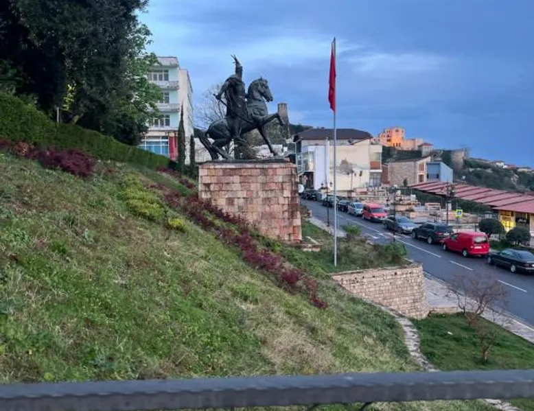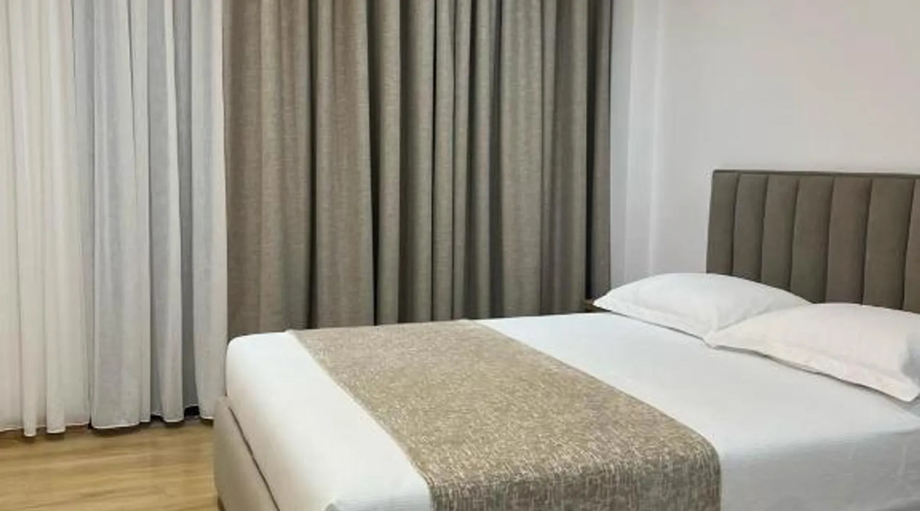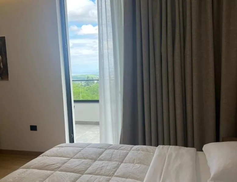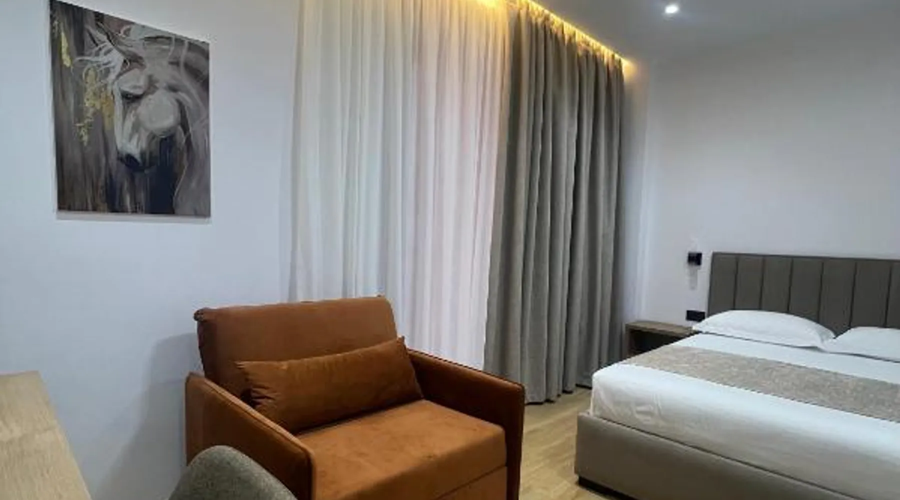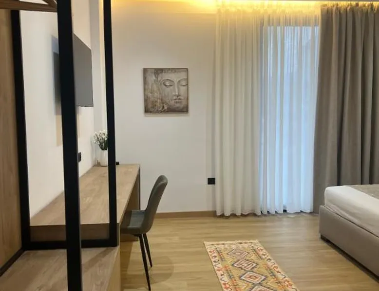 Comfortable Accommodations: Skanderbeg Hotel in Kruje offers family rooms with air-conditioning, balconies, and private bathrooms. Each room includes a bath, bidet, and free toiletries. Mountain and city views enhance the stay. Exceptional Facilities: Guests can relax in the garden or bar, enjoy free WiFi, and take advantage of the outdoor seating area. Additional amenities include a paid shuttle service, 24-hour front desk, and free on-site private parking. Delicious Breakfast: A variety of breakfast options are available, including continental, American, Italian, and vegetarian. Local specialties, juice, pancakes, cheese, and fruits are served daily. Prime Location: Located 11 mi from Tirana International Mother Teresa Airport, the hotel is near attractions such as Skanderbeg Square (20 mi) and Dajti Ekspres Cable Car (22 mi). The triple room offers air conditioning, a seating area, a balcony with mountain views as well as a private bathroom boasting a bath. The unit has 2 beds.