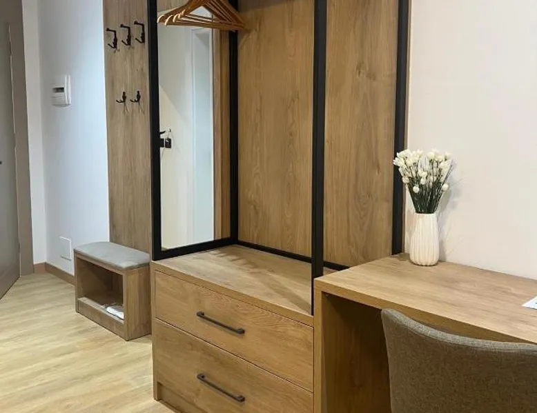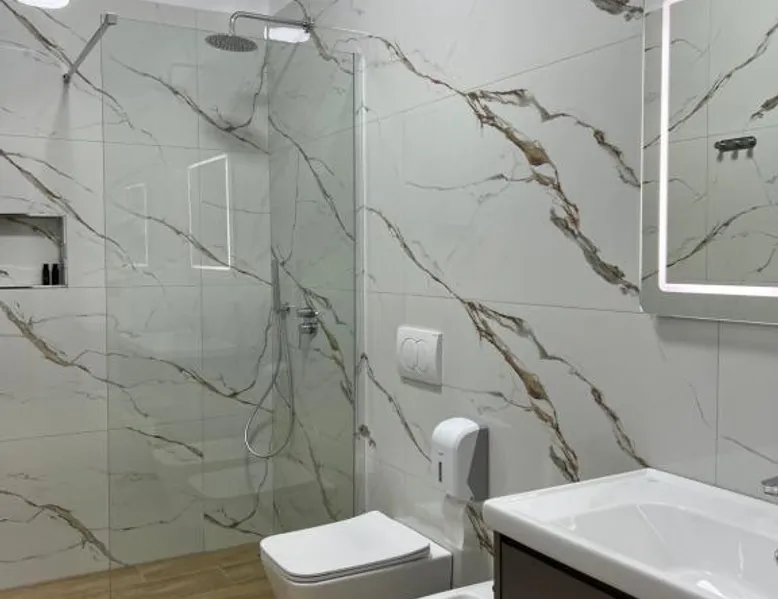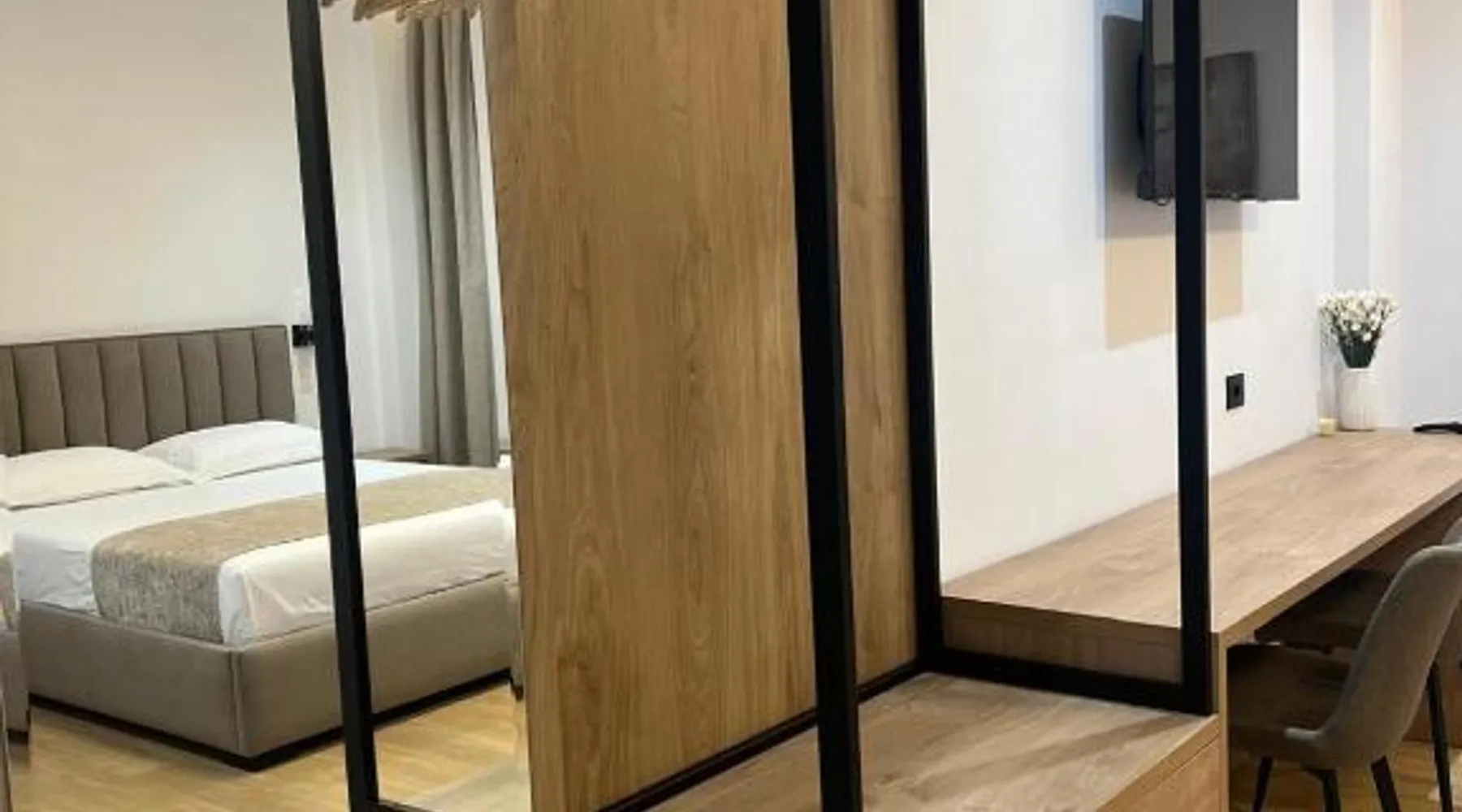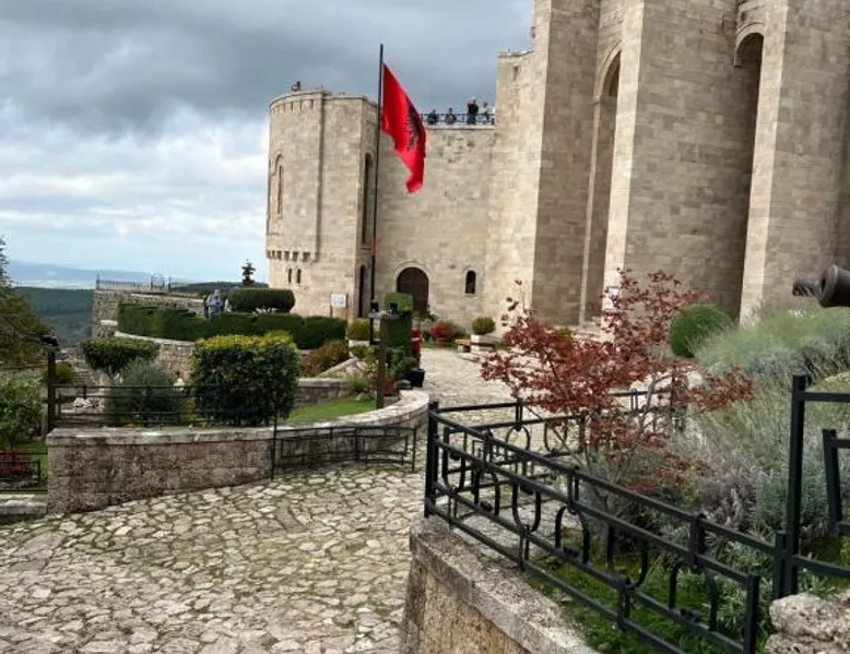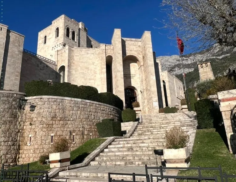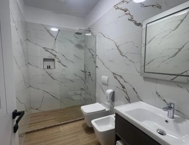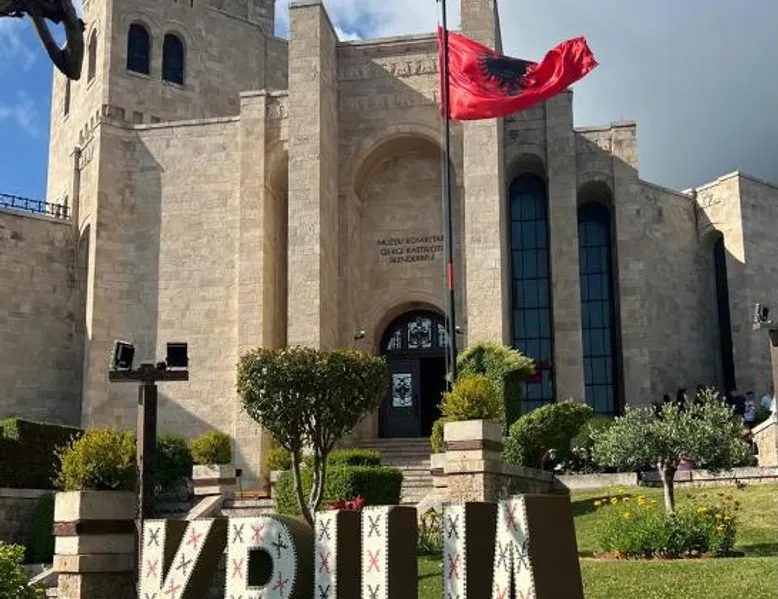 Comfortable Accommodations: Skanderbeg Hotel in Kruje offers family rooms with air-conditioning, balconies, and private bathrooms. Each room includes a bath, bidet, and free toiletries. Mountain and city views enhance the stay. Exceptional Facilities: Guests can relax in the garden or bar, enjoy free WiFi, and take advantage of the outdoor seating area. Additional amenities include a paid shuttle service, 24-hour front desk, and free on-site private parking. Delicious Breakfast: A variety of breakfast options are available, including continental, American, Italian, and vegetarian. Local specialties, juice, pancakes, cheese, and fruits are served daily. Prime Location: Located 11 mi from Tirana International Mother Teresa Airport, the hotel is near attractions such as Skanderbeg Square (20 mi) and Dajti Ekspres Cable Car (22 mi). The triple room offers air conditioning, a seating area, a balcony with mountain views as well as a private bathroom boasting a bath. The unit has 2 beds.