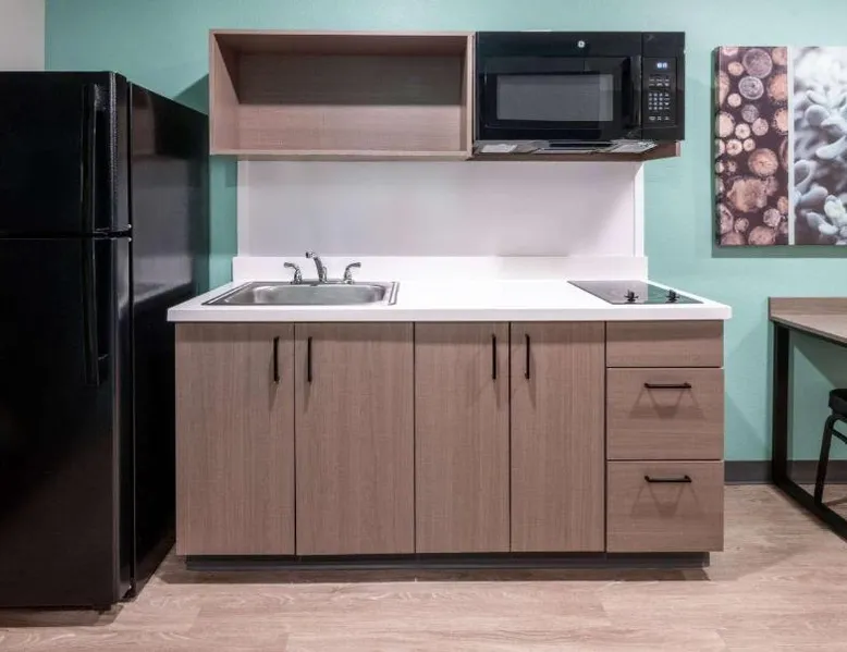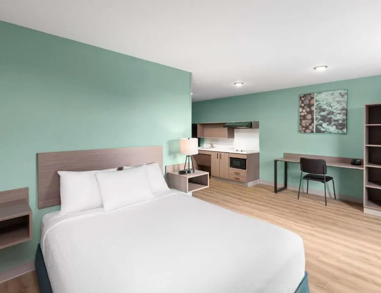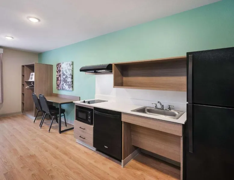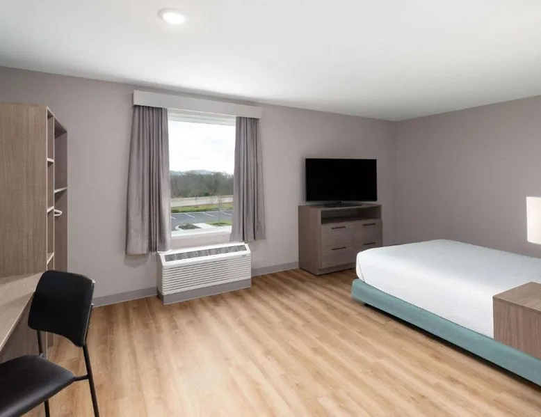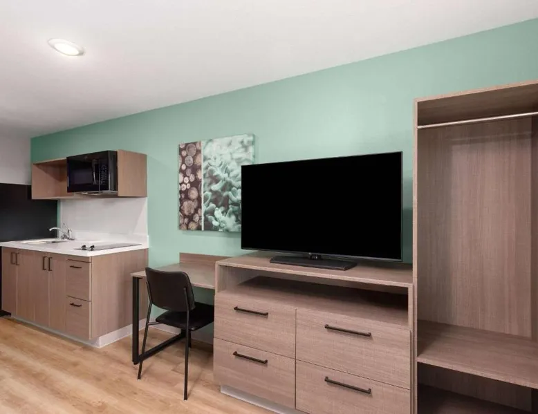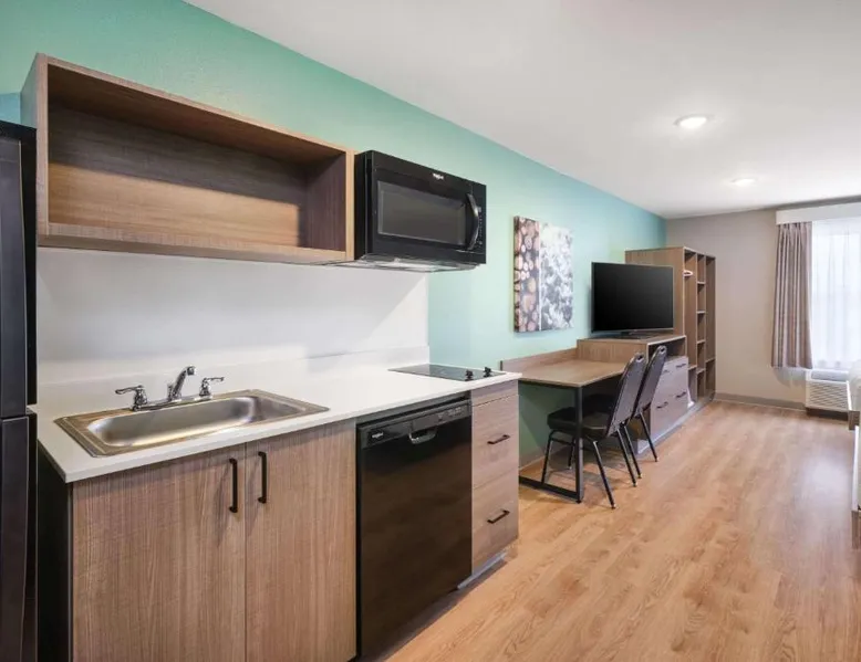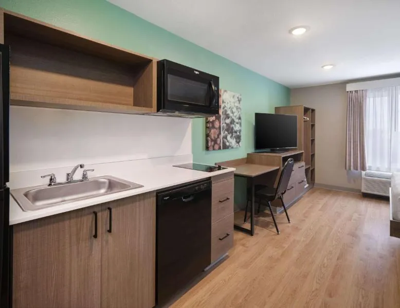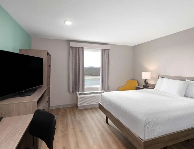 Comfortable Accommodations: ECHO Suites Extended Stay by Wyndham Nashville/ Gallatin in Gallatin offers comfortable rooms with air-conditioning, private bathrooms, and fully equipped kitchens. Each room includes a work desk, refrigerator, microwave, TV, and stovetop. Essential Facilities: Guests enjoy free WiFi, a elevator, and streaming services. Additional amenities include a bath with a walk-in shower, dishwasher, and a work desk. Convenient Location: Located 34 mi from Nashville International Airport, the hotel is near attractions such as The Hermitage (22 mi), Nissan Stadium (23 mi), and the Grand Ole Opry (23 mi). Highly rated by guests. Guests can make meals in the kitchen that features a stovetop, a refrigerator and a microwave. This air-conditioned double room is consisted of of a flat-screen TV with streaming services and a private bathroom. The unit has 1 bed.