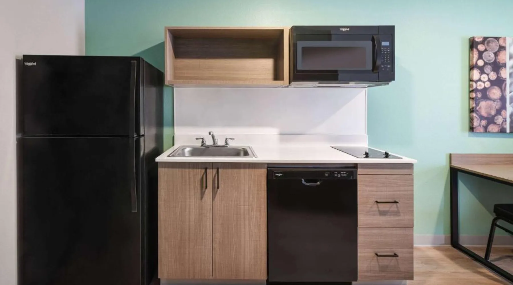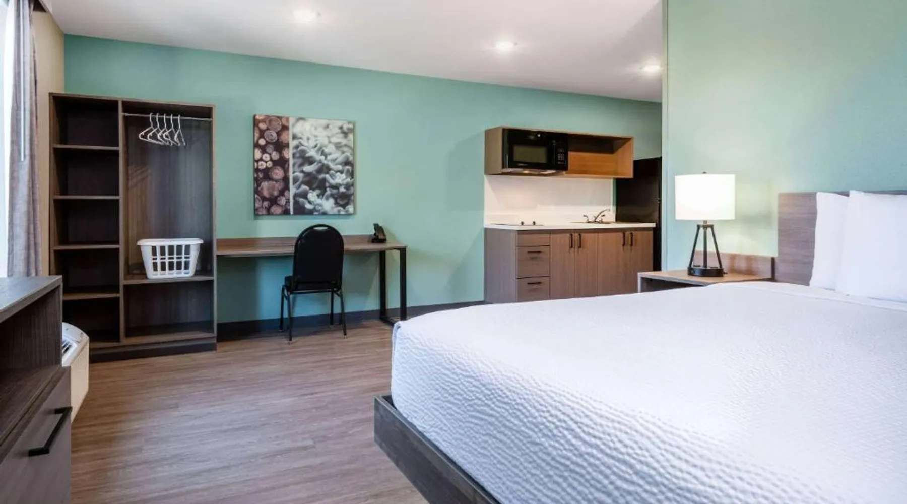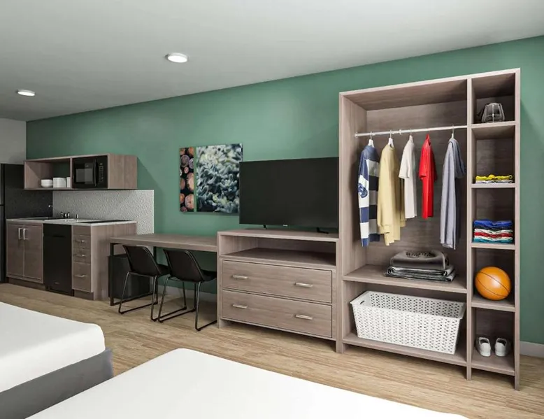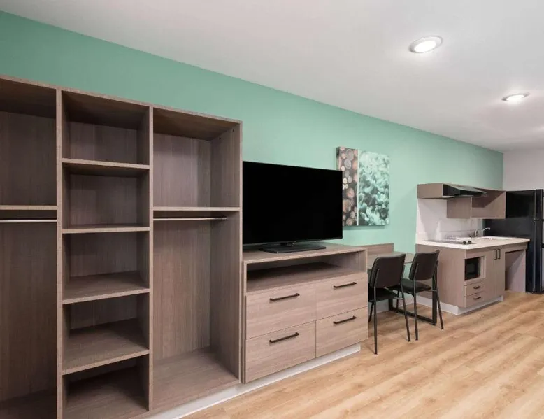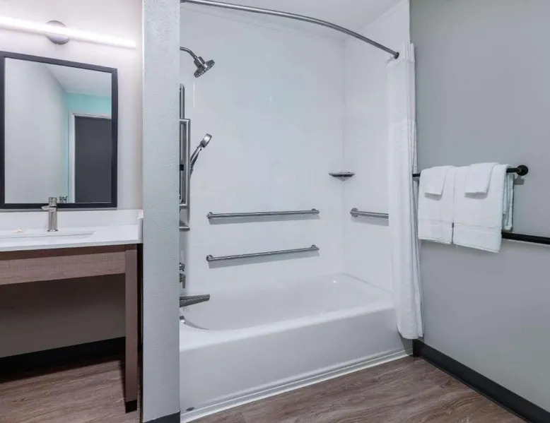Comfortable Accommodations: ECHO Suites Extended Stay by Wyndham Nashville/ Gallatin in Gallatin offers comfortable rooms with air-conditioning, private bathrooms, and fully equipped kitchens. Each room includes a work desk, refrigerator, microwave, TV, and stovetop. Essential Facilities: Guests enjoy free WiFi, a elevator, and streaming services. Additional amenities include a bath with a walk-in shower, dishwasher, and a work desk. Convenient Location: Located 34 mi from Nashville International Airport, the hotel is near attractions such as The Hermitage (22 mi), Nissan Stadium (23 mi), and the Grand Ole Opry (23 mi). Highly rated by guests. Guests can make meals in the kitchen that features a stovetop, a refrigerator and a microwave. This air-conditioned double room is consisted of of a flat-screen TV with streaming services and a private bathroom. The unit has 1 bed.