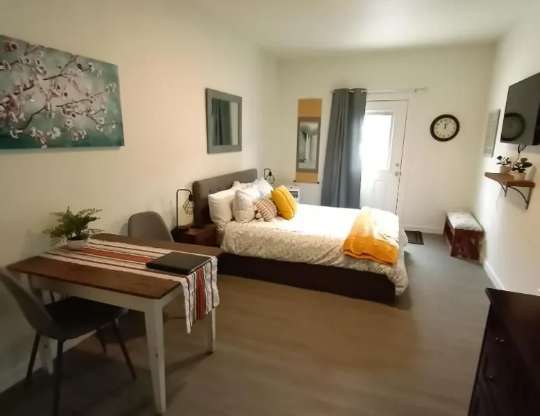 Comfortable Accommodations: The Asbury House Guest Rentals in Moscow offers clean and comfortable rooms with private bathrooms. Each room includes air-conditioning, a private entrance, and a dining area. Modern Facilities: Guests enjoy free WiFi, a sun terrace, and an outdoor seating area. The property features a lounge, shared kitchen, and free on-site private parking. Convenient Location: Located 5.6 mi from Pullman-Moscow Regional Airport and 8.7 mi from Washington State University, the guest house is near Martin Stadium and an ice-skating rink. Highly rated for room cleanliness, kitchen, and comfort. This air-conditioned double room has a private bathroom, a washing machine, a tea and coffee maker as well as a terrace. The unit has 1 bed.