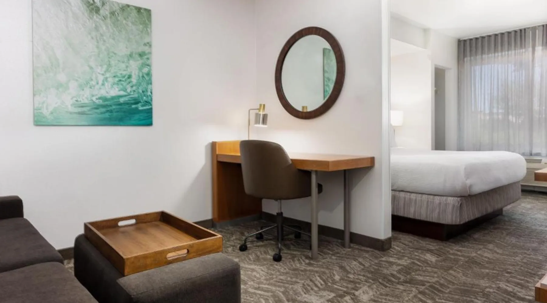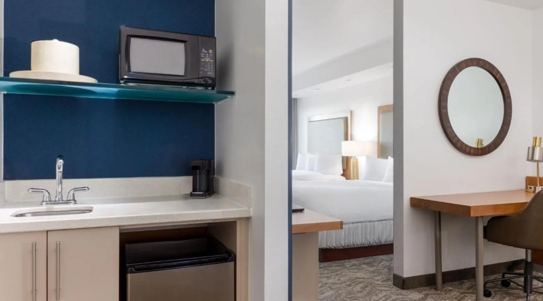 Located within 4 miles from Golfland /Sunsplash and Westville Galleria, Springhill Suites Roseville features a fitness facilities. Spacious rooms have a separate living area and free Wi-Fi. Rooms at SpringHill Suites by Marriott Sacramento Roseville are setup with a large sofa and work desk. The flat-screen TV comes with cable channels such as ESPN and HBO. Other amenities include microwave, small refrigerator and luxury bedding. Guests can work out at the fitness center that comes with cardio equipment and free weights. Laundry and ironing services are available as well. A complementary hot breakfast is served at the hotel’s lounge every morning. The on-site Market offers light snacks and cold beverages. Woodcreek Golf Club is within 4 miles from the hotel. The suite is furnished with a desk and a seating area and provides air conditioning and a wardrobe.