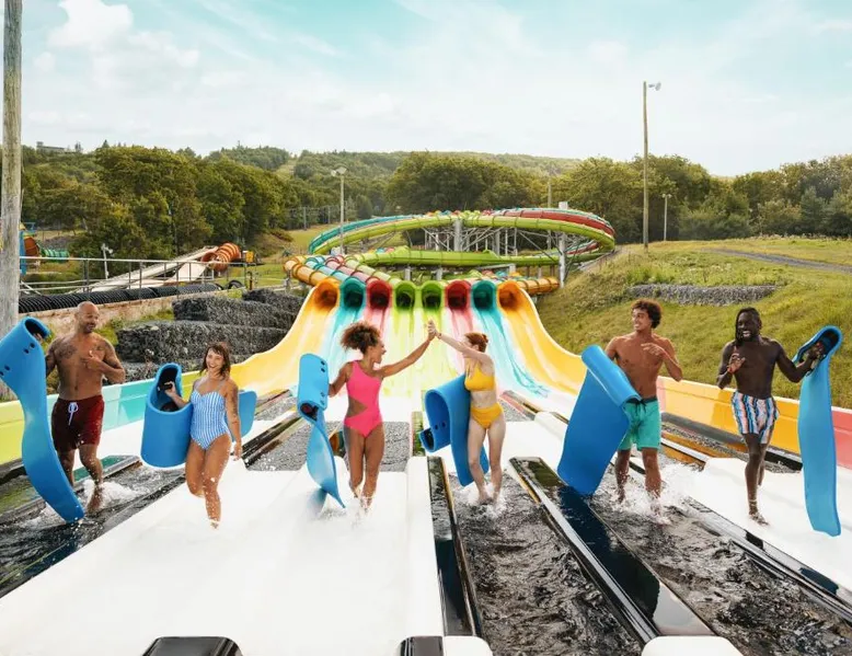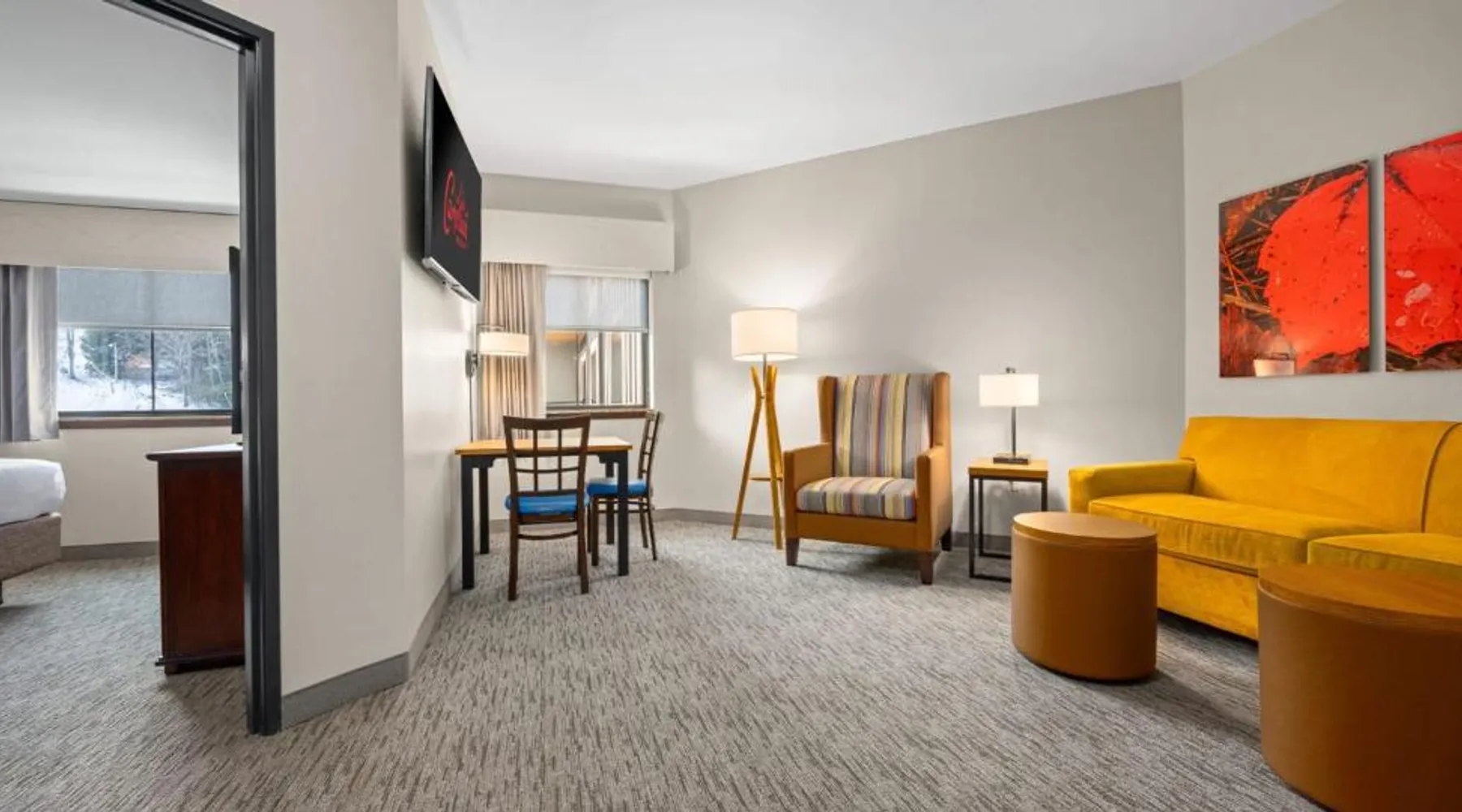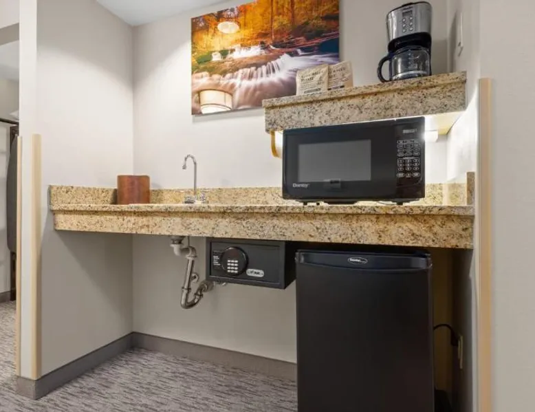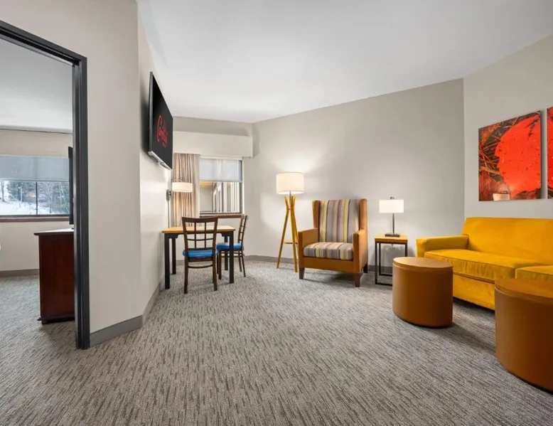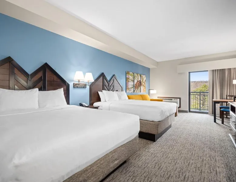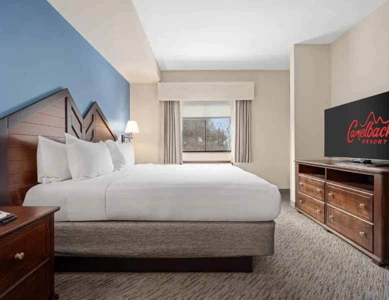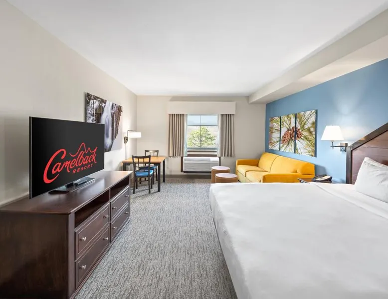 Comfortable Accommodations: Camelback Resort in Tannersville offers family rooms with air-conditioning, private bathrooms, and balconies. Each room includes a refrigerator, microwave, tea and coffee maker, and free WiFi. Exceptional Facilities: Guests enjoy ski-to-door access, a hot spring bath, fitness center, indoor swimming pool, and an outdoor fireplace. Additional amenities include a 24-hour front desk, concierge service, and free WiFi throughout the resort. Dining Experience: The family-friendly restaurant serves American, Italian, and pizza cuisines with vegetarian and gluten-free options. Dining options include a modern and romantic ambiance, lunch, and dinner. Activities and Attractions: Camelback Resort is located 35 mi from Lehigh Valley International Airport. Nearby attractions include Delaware Water Gap National Recreation Area (16 mi), Great Wolf Lodge Pocono Mountains (4.3 mi), and Jack Frost Mountain Resort (21 mi). Guests can enjoy skiing, hiking, and film nights. This air-conditioned suite features a seating area and a safe deposit box. The unit offers 3 beds.