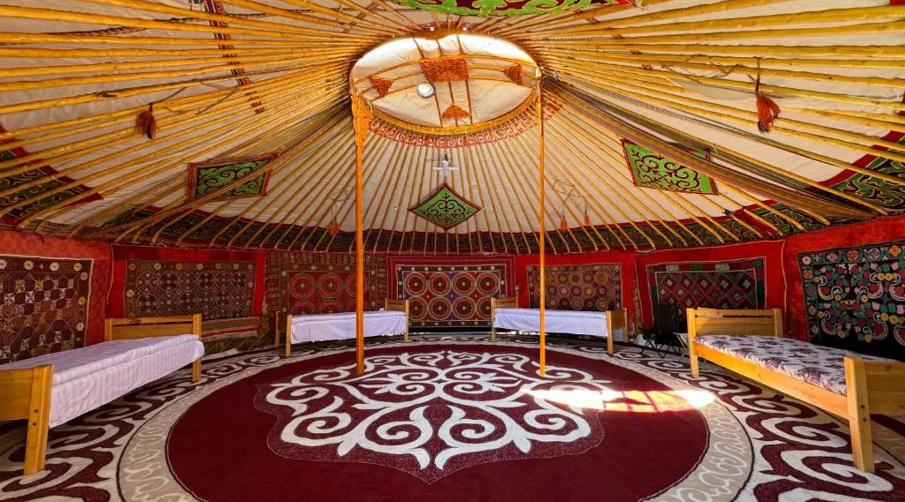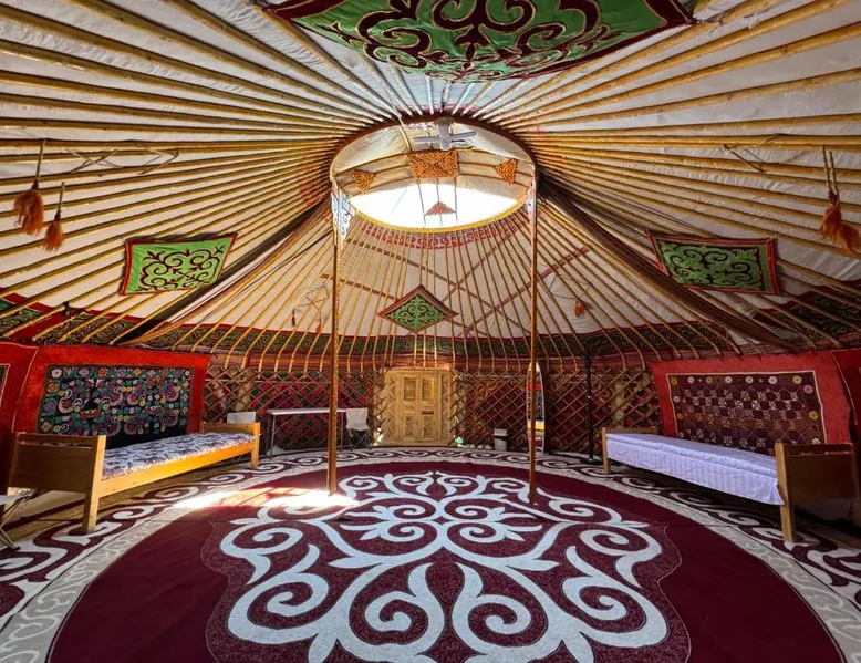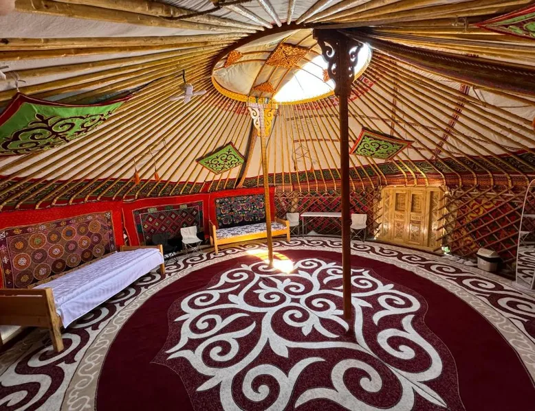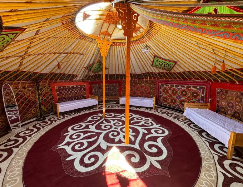 Essential Facilities: Ulgii Ger Camp in Ulgii offers a garden and free WiFi. Guests can enjoy mountain views and relax in the seating area. Comfortable Accommodations: Each ger features a dining table, wardrobe, electric kettle, and free toiletries. Bathrobes are available for added comfort. Local Attractions: The camp is located 4.3 mi from Ölgii Airport. Nearby landmarks include Khukh Khashaaa-3 and Bayan-Ulgii. The spacious quadruple room features a seating area, a wardrobe and garden views. The unit has 4 beds.