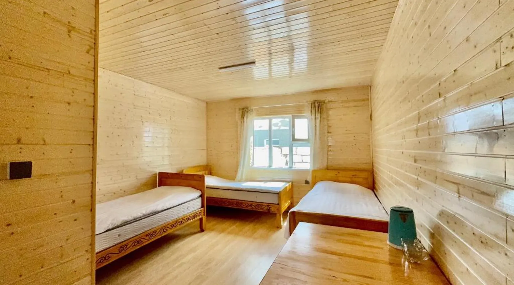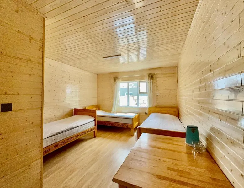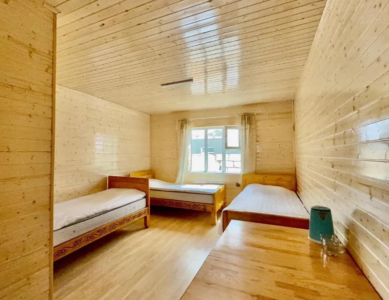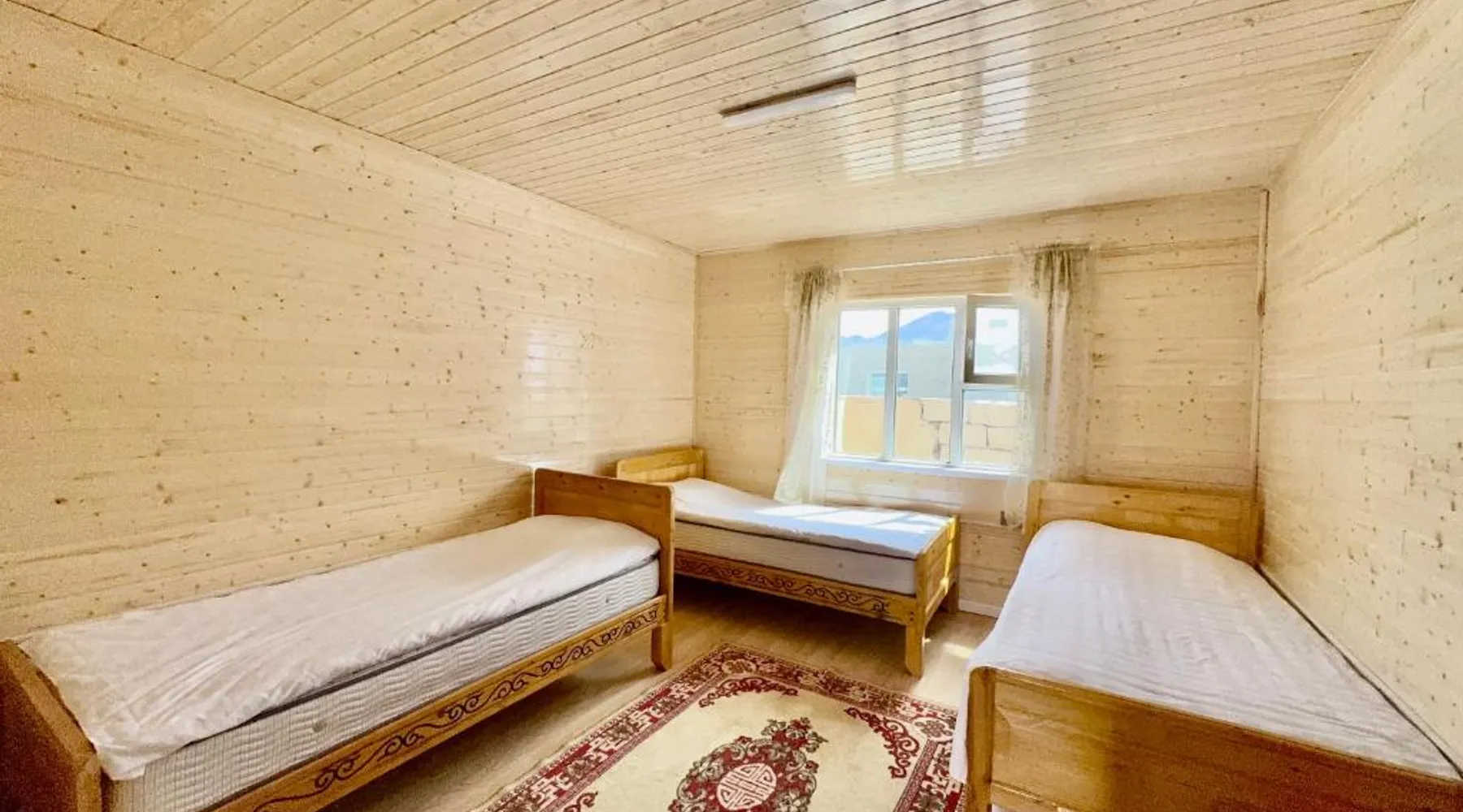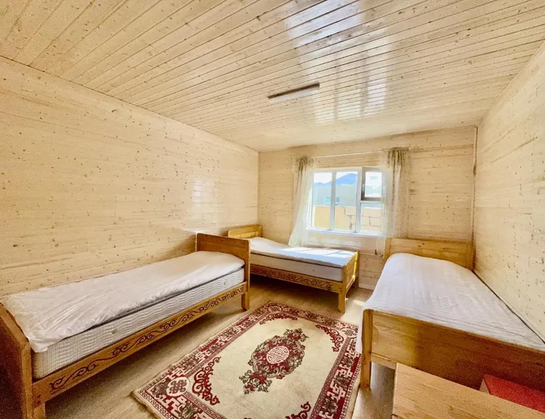 Comfortable Accommodations: BTMongolia Hostel Tour Operator in Ölgiy offers recently renovated homestay with family rooms. Each room includes a private bathroom, air-conditioning, and garden or mountain views. Essential Facilities: Guests enjoy a garden, free WiFi, and a shared kitchen. Additional amenities include a picnic area, bicycle parking, and free private parking. Guest Services: The property provides private check-in and check-out, a 24-hour front desk, and full-day security. Culture classes and a shared dining area enhance the stay. Local Attractions: Located 3.1 mi from Ölgii Airport, the homestay offers easy access to local landmarks. Guests can explore the surrounding area with free bicycles. Providing free toiletries, this double room includes a shared bathroom with a hairdryer and slippers. The double room is furnished with a desk and a seating area and provides a dining area, a wardrobe and garden views. The unit offers 1 bed.