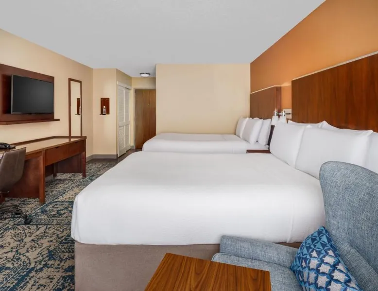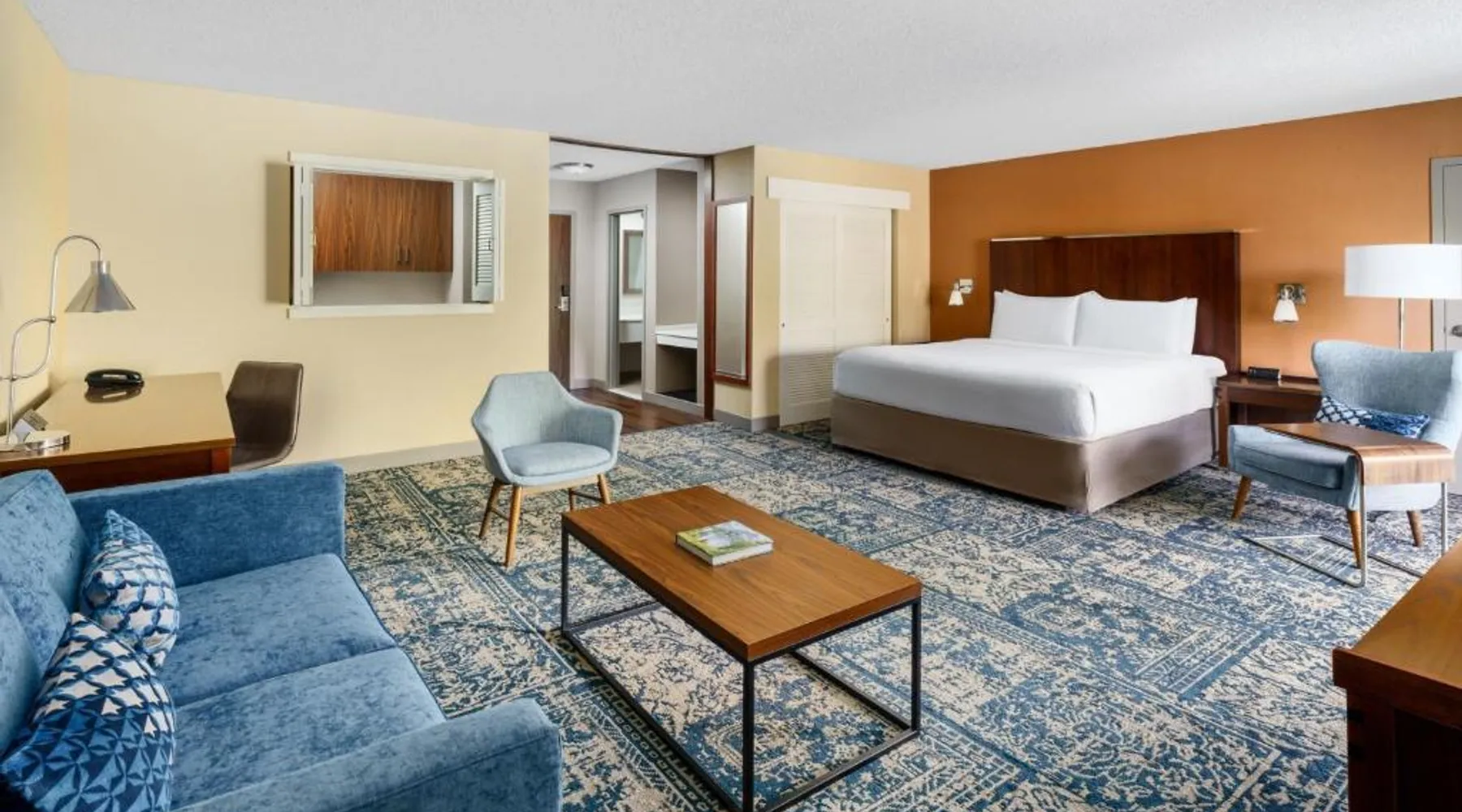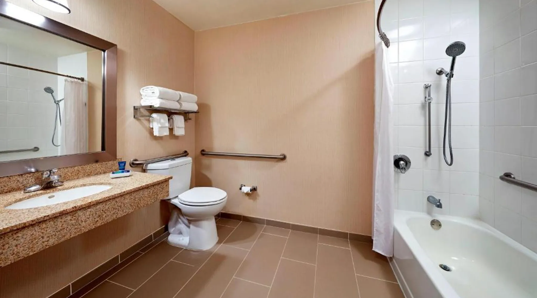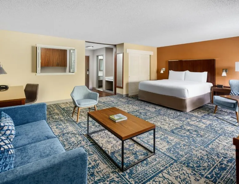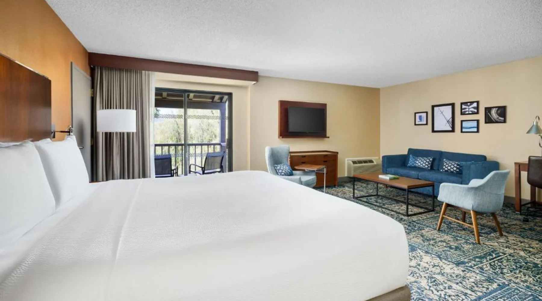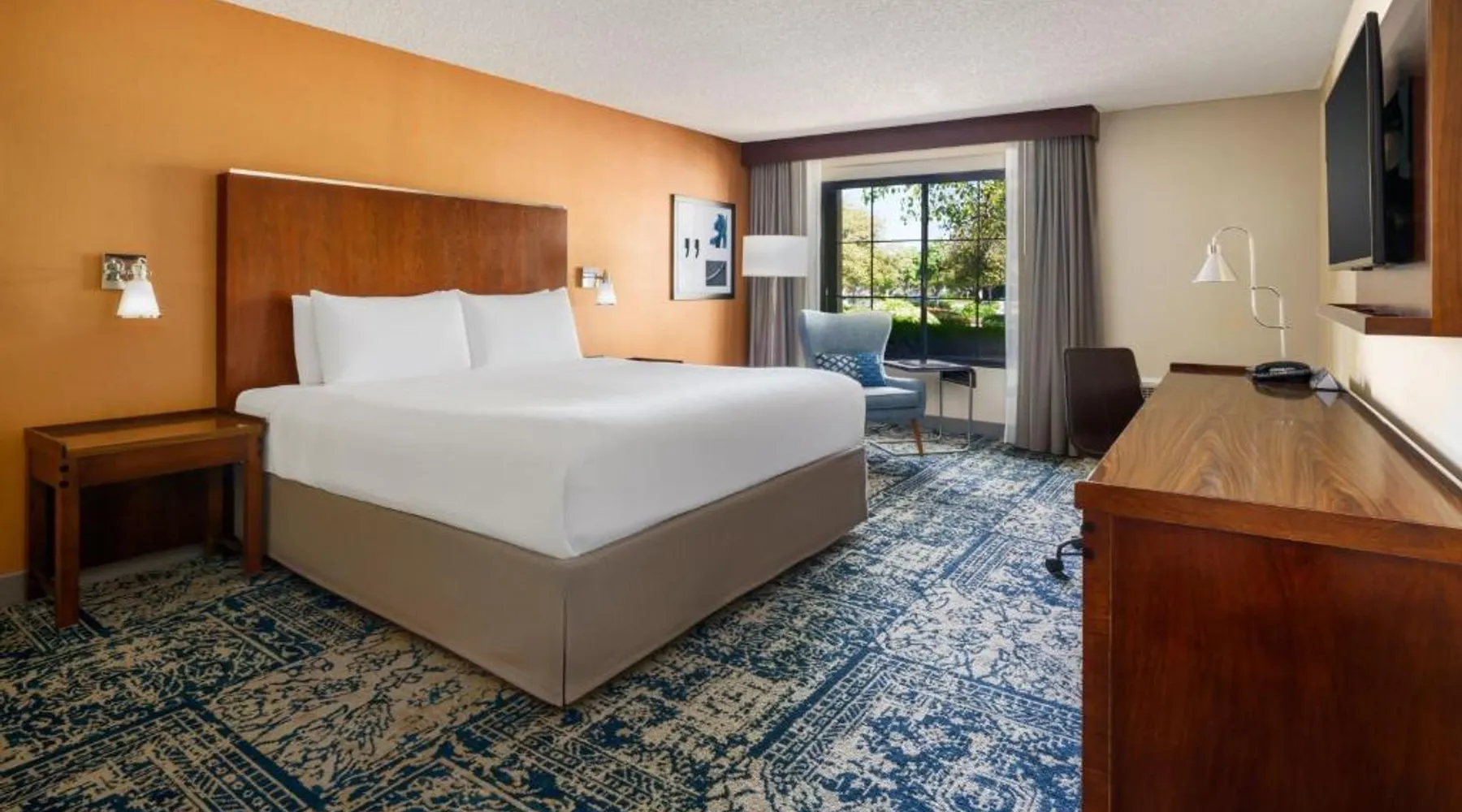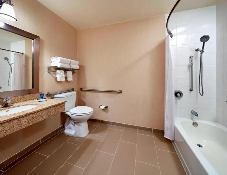 This Pleasanton hotel is located in the Hacienda Business Park, near Interstate 580. The hotel is located on 10.5 acres with an outdoor swimming pool, gardens and lagoons. Every room at the Four Points by Sheraton - Pleasanton is equipped with a 42-inch flat-screen TV. Free WiFi and free bottled water are also included. Deluxe rooms offer a balcony with garden views. Guests at the Pleasanton Four Points can use the gym or the jacuzzi. A business center is also available. Offering free toiletries, this double room includes a private bathroom with a shower and a hairdryer. The spacious double room offers air conditioning, a private entrance, a tea and coffee maker, a seating area and a flat-screen TV with cable channels. The unit has 1 bed.