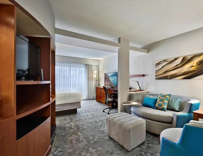 Comfortable Accommodations: Courtyard Philadelphia/Langhorne in Langhorne offers rooms with air-conditioning, private bathrooms, and modern amenities. Guests enjoy free WiFi, flat-screen TVs, and work desks. Exceptional Facilities: The hotel features a fitness center, indoor swimming pool, and a serene garden. Additional facilities include a restaurant, bar, and outdoor fireplace. Dining Experience: A modern restaurant serves breakfast, dinner, and cocktails with American, Ã la carte, full English/Irish, vegan, and gluten-free options. Fresh pastries, cheese, and fruits are available. Prime Location: Located 9.3 mi from Trenton-Mercer Airport, the hotel is a 17-minute walk from Sesame Place. Nearby attractions include Princeton University and Philadelphia Museum of Art. Offering free toiletries, this double room includes a private bathroom with a bath or a shower and a hairdryer. The spacious double room offers air conditioning, a coffee machine, a seating area, a wardrobe and a flat-screen TV with streaming services. The unit offers 2 beds.