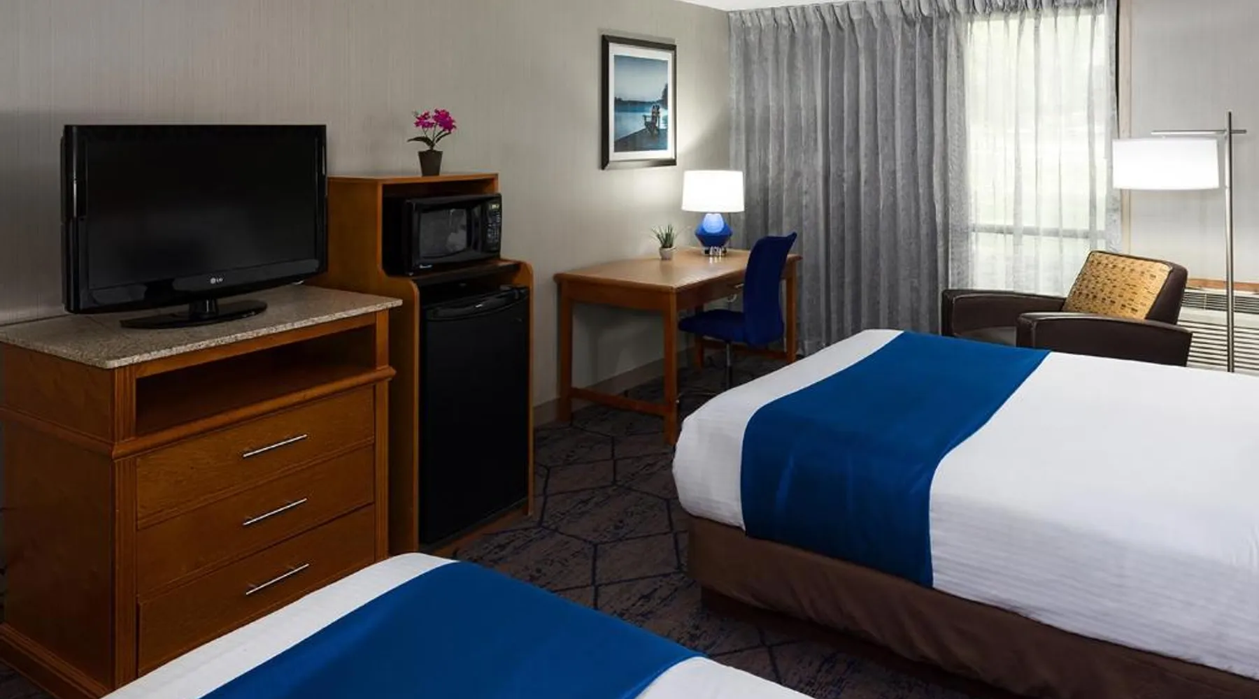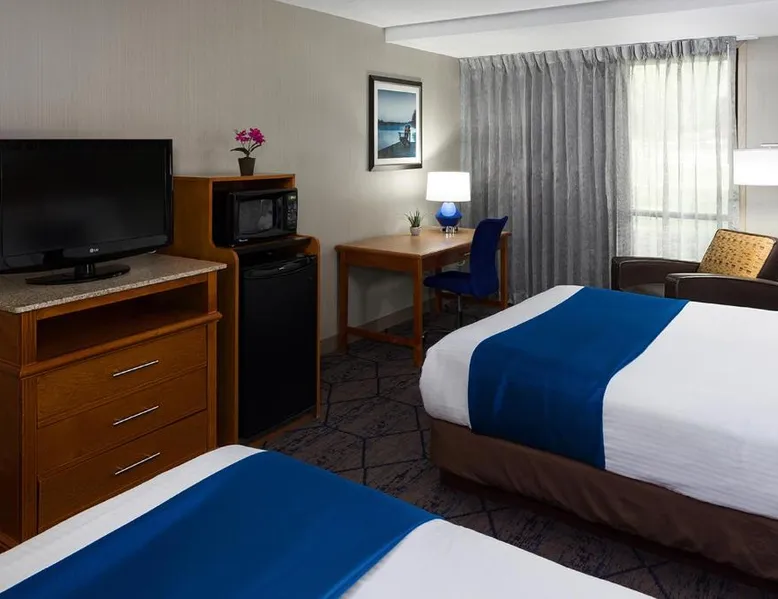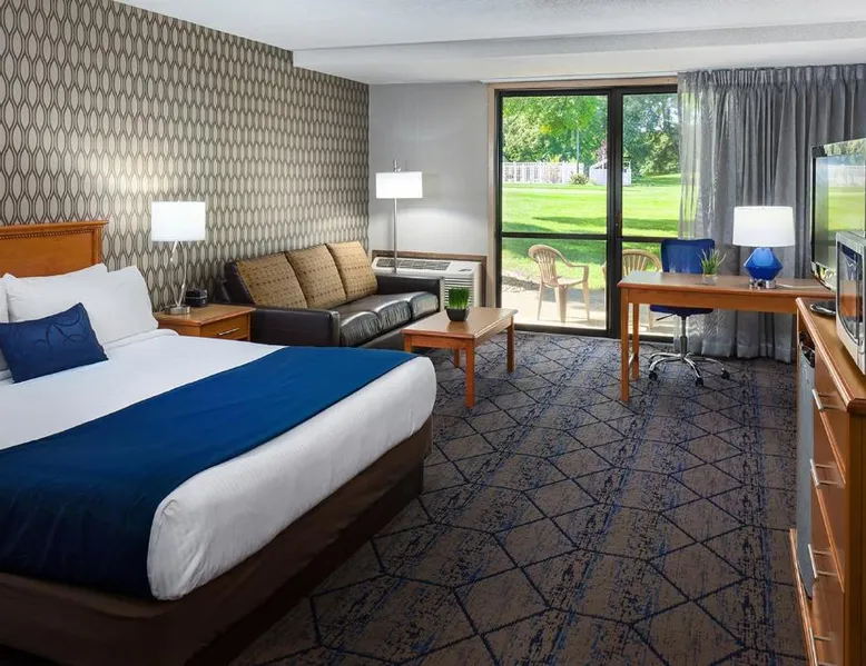 Comfortable Accommodations: Rooms feature air-conditioning, free WiFi, and amenities such as tea and coffee makers, refrigerators, and microwaves. Guests enjoy free on-site parking, a fitness center, sun terrace, indoor swimming pool, and a lounge. Dining Options: The family-friendly restaurant offers American cuisine with a traditional ambiance. Breakfast includes continental, American, buffet, and à la carte options with warm dishes, juice, and fruits. Lunch and dinner are also available. Convenient Location: Located in Okoboji, the hotel is 101 mi from Sioux Falls Regional Airport. Nearby attractions include Arnolds Park Amusement Park (2.3 mi) and a restaurant. Guests appreciate the convenient location, attentive staff, and room cleanliness. The unit has 2 beds.