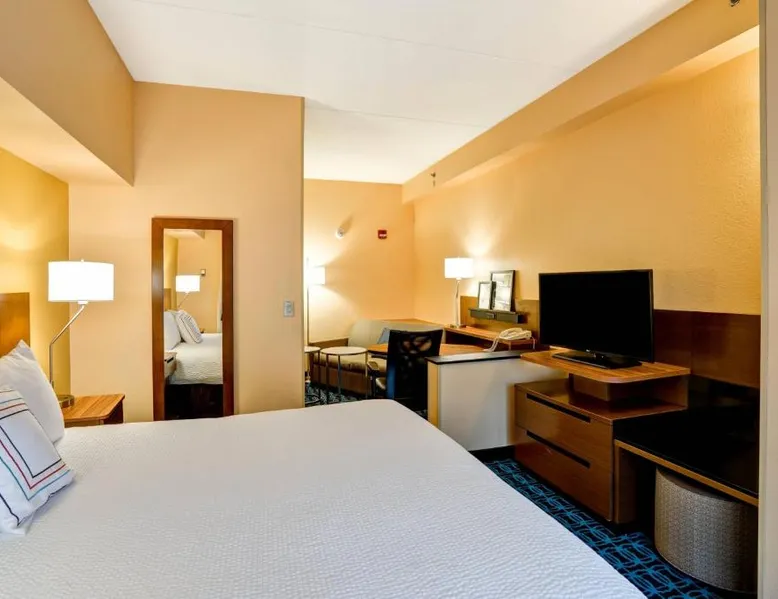 Comfortable Accommodations: Fairfield Inn & Suites Christiansburg in Christiansburg offers rooms with air-conditioning, private bathrooms, and free WiFi. Each room includes a work desk, sofa bed, and soundproofing for a restful stay. Leisure Facilities: Guests can enjoy a fitness center, seasonal outdoor swimming pool, and a lounge. Additional amenities include a minimarket, business area, and free on-site parking. Dining Options: A buffet breakfast is served daily, featuring warm dishes, fresh pastries, fruits, and juice. Streaming services and a 24-hour front desk enhance the stay. Location and Attractions: Located 27 mi from Roanoke Airport, the hotel is near Lane Stadium (9.9 mi) and Virginia Tech (12 mi). Guests appreciate the room cleanliness, attentive staff, and comfortable rooms.