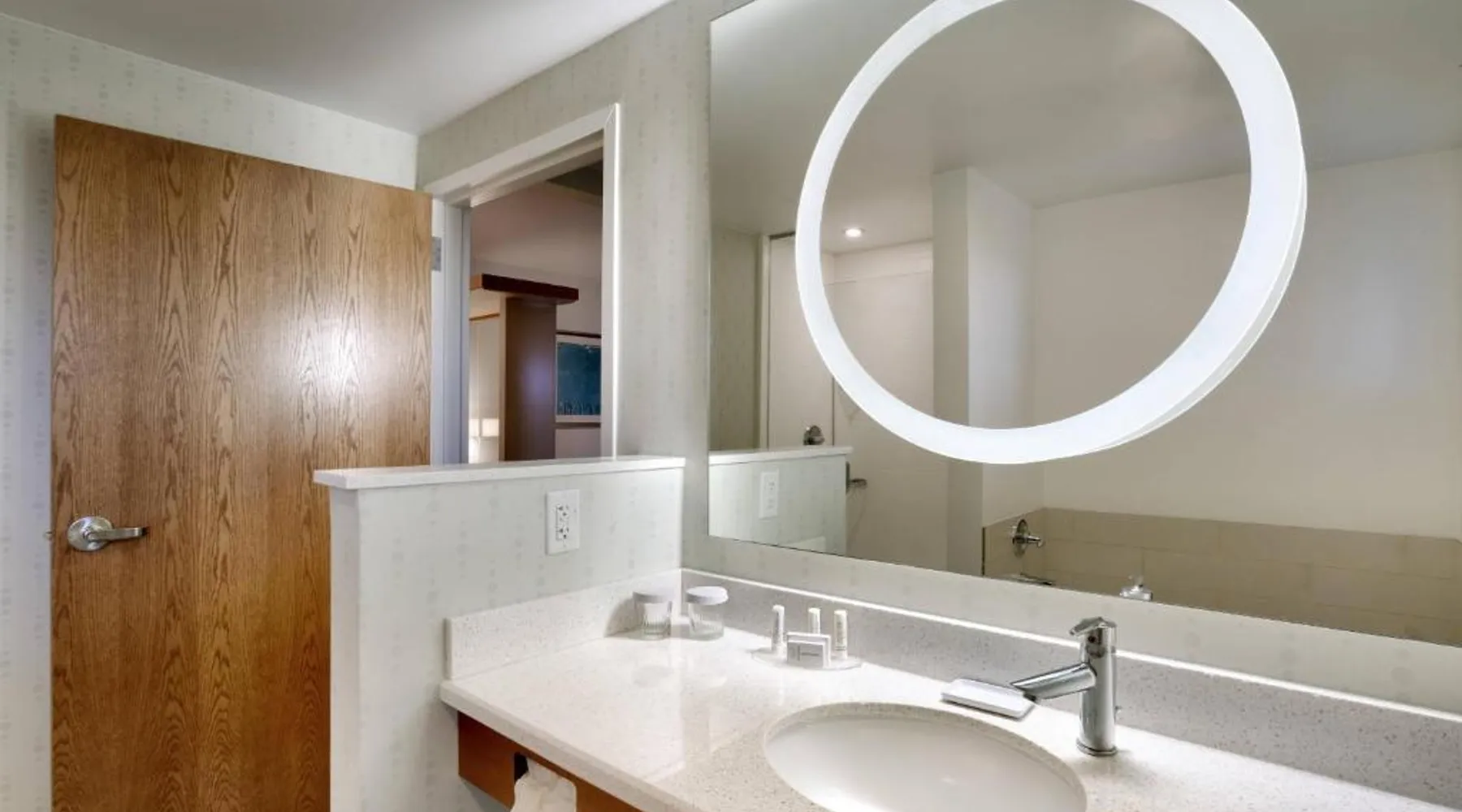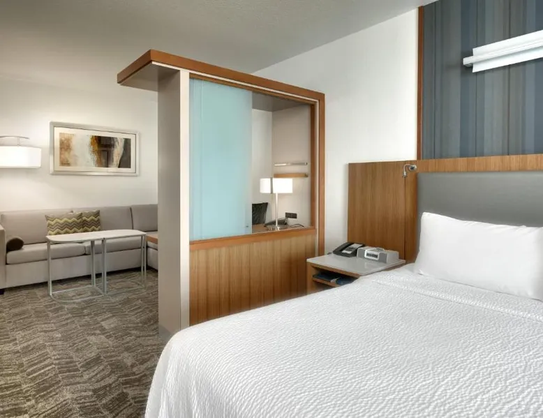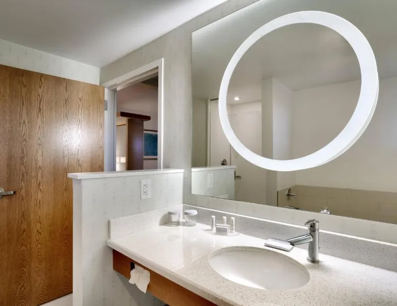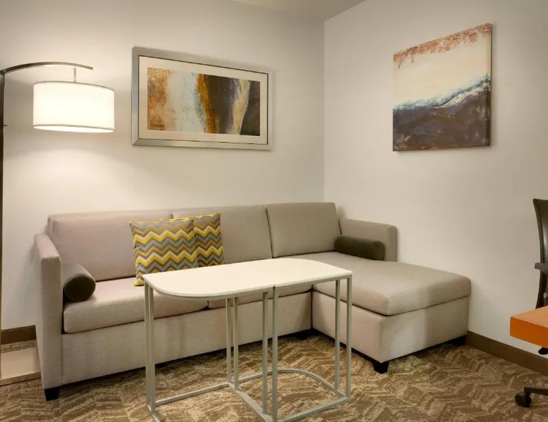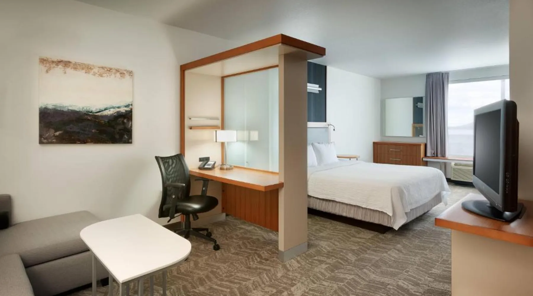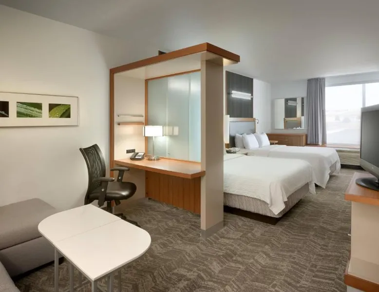 Comfortable Accommodations: SpringHill Suites by Marriott Rexburg in Rexburg offers family rooms with air-conditioning, private bathrooms, and free WiFi. Each room includes a tea and coffee maker, hairdryer, refrigerator, work desk, seating area, free toiletries, microwave, bath or shower, carpeted floors, TV, and kitchenware. Leisure Facilities: Guests can enjoy an indoor swimming pool and free on-site parking. Additional amenities include a fitness center, sauna, and hot tub. Convenient Location: Located 28 mi from Idaho Falls Regional Airport, the hotel is near attractions such as Eliza R. Snow Performing Arts Center (2.3 mi), Red C Gallery (2.5 mi), and Paramount 5 (2.6 mi). Guest Satisfaction: Highly rated for its breakfast provided by the property, convenient location, and room comfort. The unit has 2 beds.