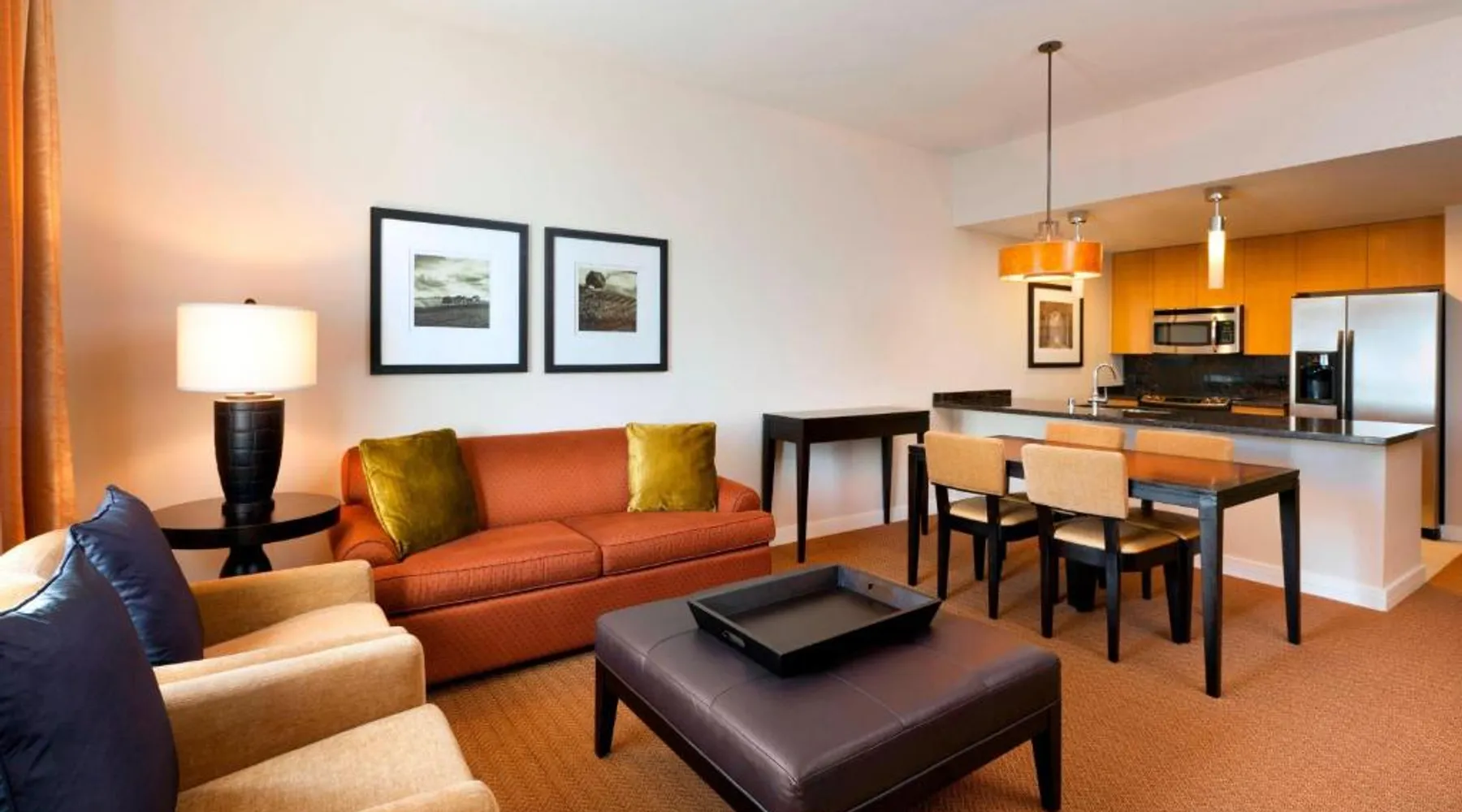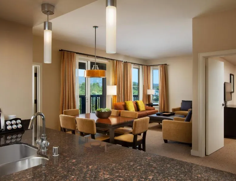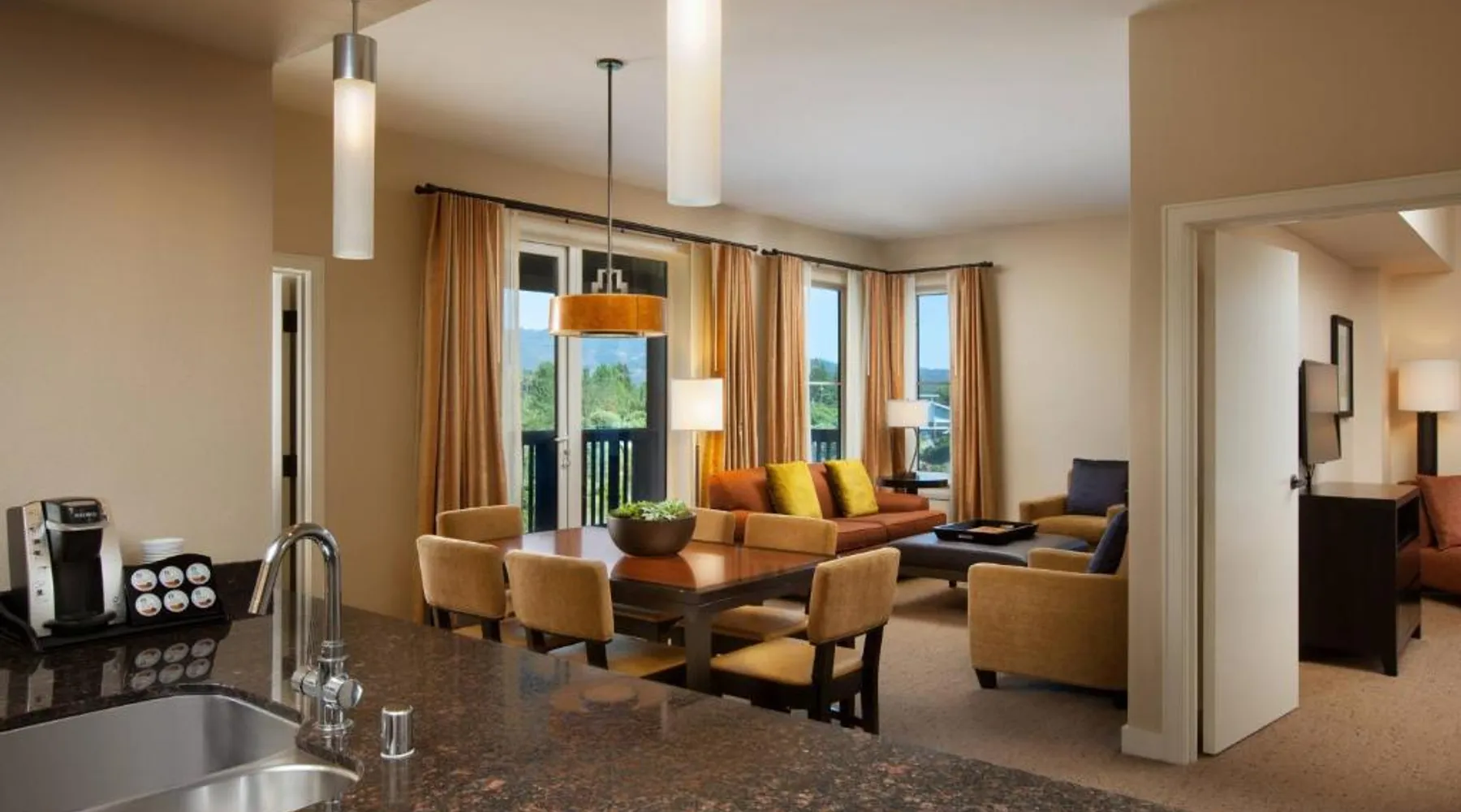 Ideally situated along the Napa River in the Napa wine region, the eco-friendly Westin Verasa boasts gourmet restaurants and an outdoor saltwater pool with panoramic mountain views. Spacious suites include a kitchenette. The modern suites are decorated in warm colors with bright accents and dark wood furniture. Each offers a separate living room, 2 wall-mounted flat-screen TVs and a private balcony. Bathrooms feature a separate soaking tub and bathrobes. Guests can relax on the large sundeck or by the firepit on the terrace. The Westin Verasa-Napa offers a modern gym as well as bocce courts. The concierge desk can arrange wine tours. Fine dining can be found at La Toque which serves modern French cuisine. Bank Café and Bar is open all day and offers both indoor and outdoor seating. The South Napa Marketplace is just 2 miles from the Verasa-Napa Westin and numerous wineries are within a mile of this hotel. The unit offers 1 bed.