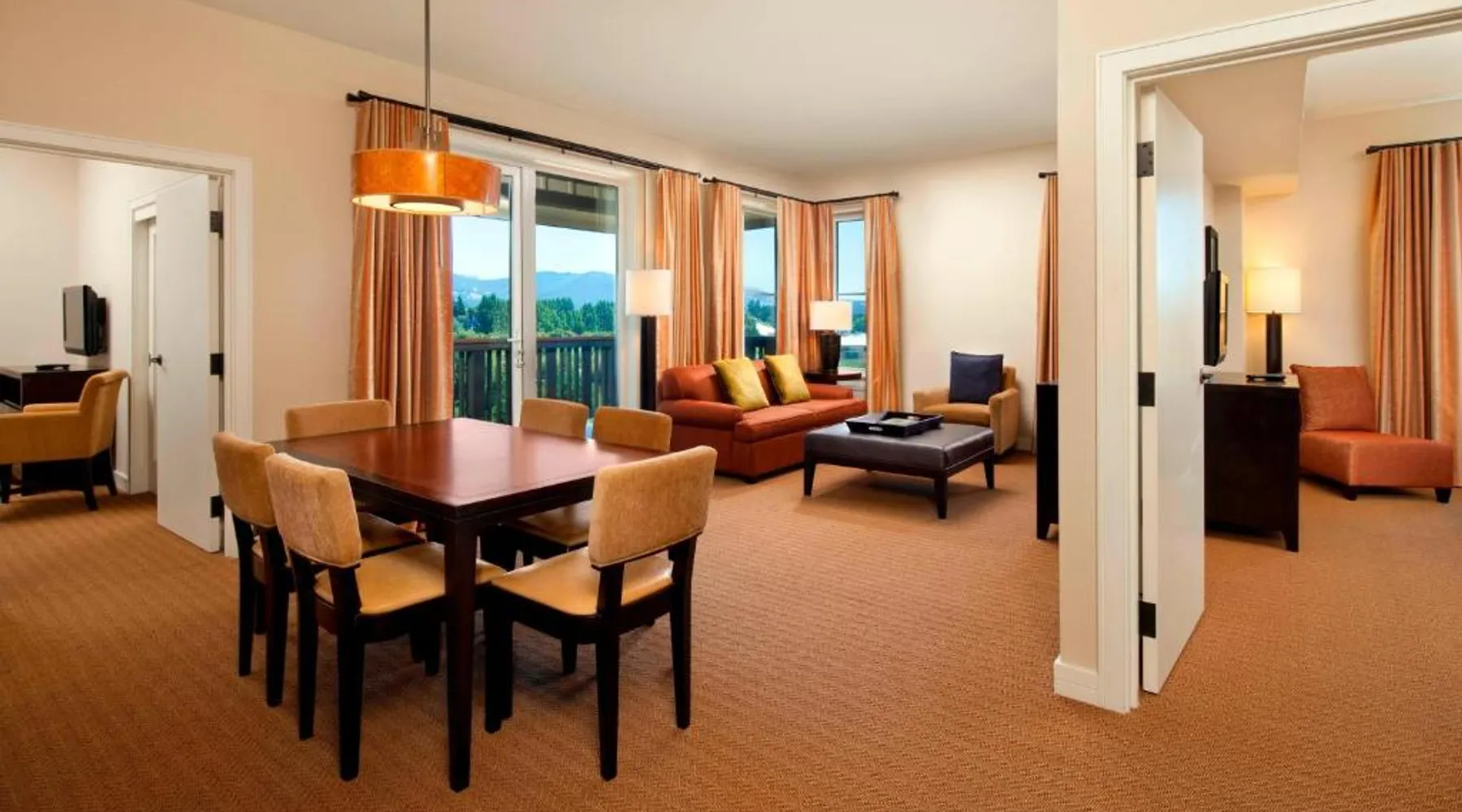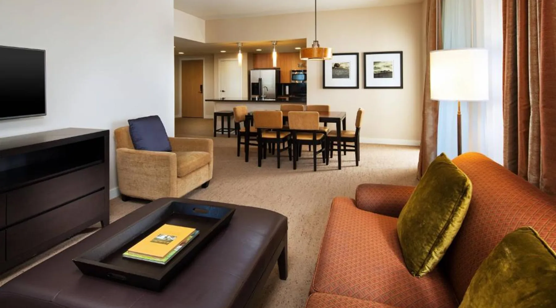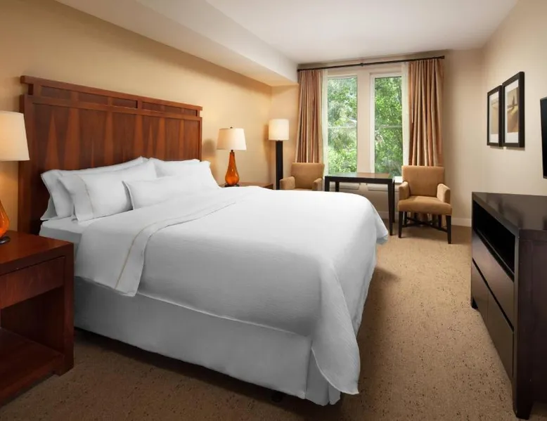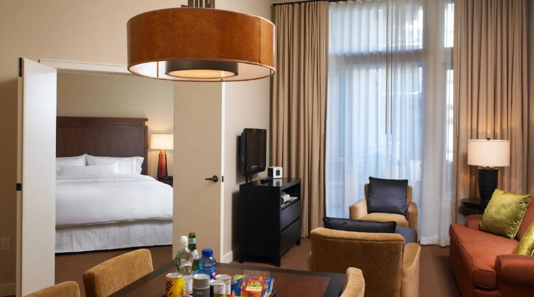 Ideally situated along the Napa River in the Napa wine region, the eco-friendly Westin Verasa boasts gourmet restaurants and an outdoor saltwater pool with panoramic mountain views. Spacious suites include a kitchenette. The modern suites are decorated in warm colors with bright accents and dark wood furniture. Each offers a separate living room, 2 wall-mounted flat-screen TVs and a private balcony. Bathrooms feature a separate soaking tub and bathrobes. Guests can relax on the large sundeck or by the firepit on the terrace. The Westin Verasa-Napa offers a modern gym as well as bocce courts. The concierge desk can arrange wine tours. Fine dining can be found at La Toque which serves modern French cuisine. Bank Café and Bar is open all day and offers both indoor and outdoor seating. The South Napa Marketplace is just 2 miles from the Verasa-Napa Westin and numerous wineries are within a mile of this hotel. The unit offers 1 bed.