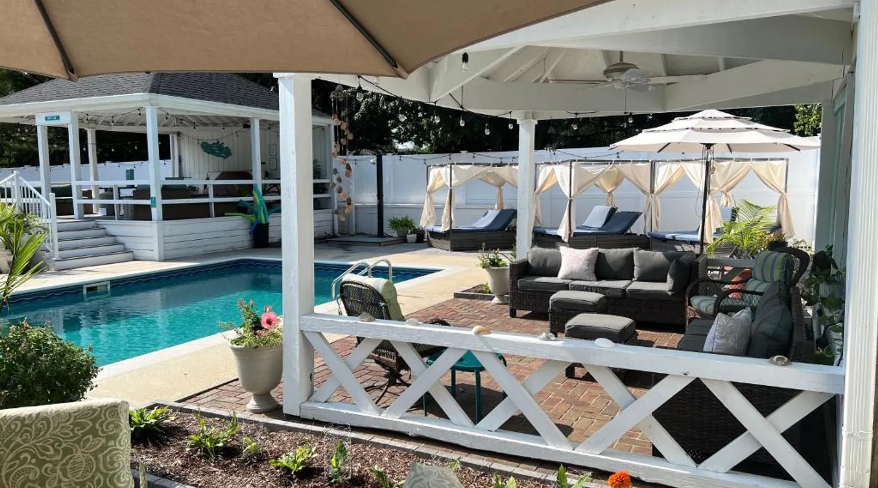 Comfortable Accommodations: Mar Bella Boutique Hotel & Spa in Rehoboth Beach offers adults-only rooms with private bathrooms, air-conditioning, and garden views. Each room includes a tea and coffee maker, refrigerator, and free WiFi. Relaxing Facilities: Guests can enjoy a sauna, sun terrace, seasonal outdoor swimming pool, and hot tub. Additional amenities include a minimarket, coffee shop, and outdoor seating area. Convenient Location: Located 4.3 mi from Rehoboth Beach Boardwalk and 21 mi from Thunder Lagoon Waterpark, the hotel provides easy access to local attractions. Free on-site private parking is available. Guest Favorites: The hot tub, swimming pool, and sauna are highly rated by guests, offering relaxation and leisure options. This double room features a hot tub and a sauna. Featuring free toiletries and bathrobes, this double room includes a private bathroom with a walk-in shower and a hairdryer. The spacious air-conditioned double room features a flat-screen TV with streaming services, a tea and coffee maker, a seating area, a wardrobe as well as garden views. The unit has 2 beds.