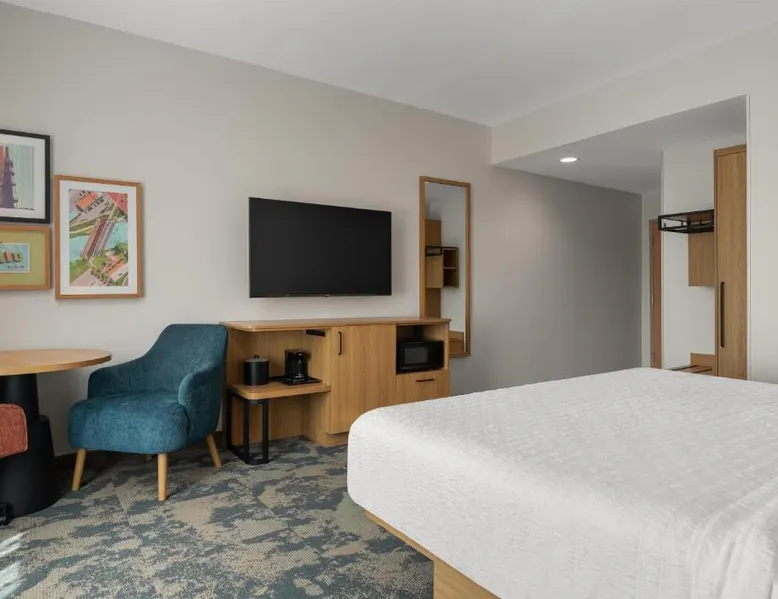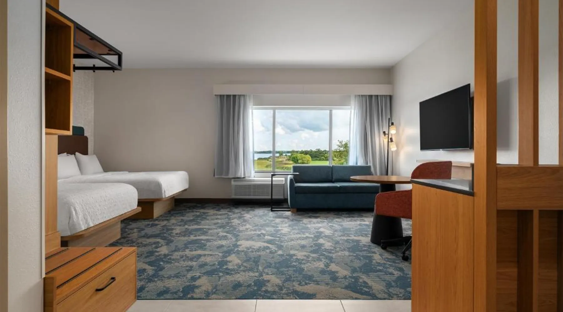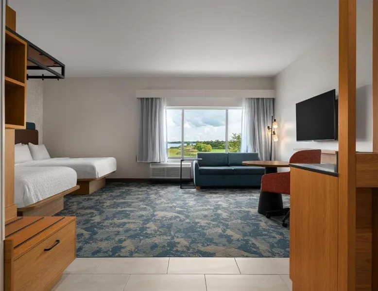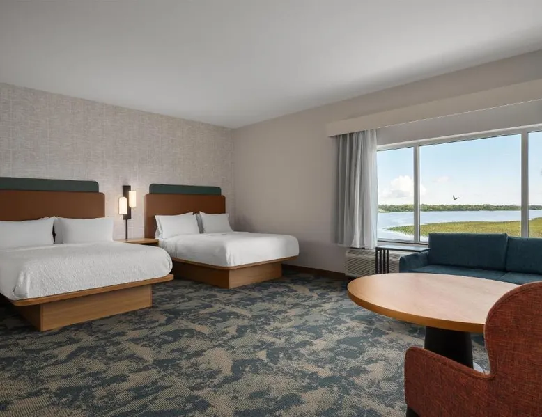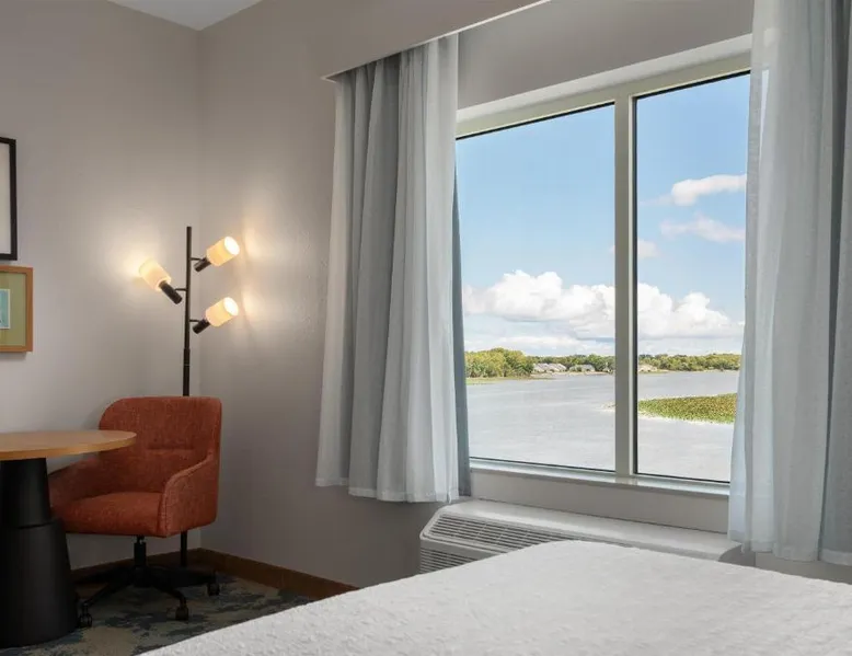 Comfortable Accommodations: Hampton Inn & Suites By Hilton Port Clinton Catawba Island in Port Clinton offers family rooms with sea views, sofa beds, and interconnected rooms. Each room includes air-conditioning, a private bathroom, and free WiFi. Leisure Facilities: Guests can enjoy a swimming pool with a view, indoor pool, fitness center, and terrace. Additional amenities include a lounge, outdoor fireplace, and outdoor seating area. Dining Options: A continental, American, and buffet breakfast is served daily, featuring warm dishes, fresh pastries, fruits, and juice. Location and Attractions: Located 60 mi from Toledo Express Airport, the hotel is near African Safari Wildlife Park (1.1 mi) and Cedar Point Amusement Park (17 mi). Boating is available in the surrounding area. This air-conditioned double room includes a flat-screen TV with streaming services and a private bathroom. The unit offers 1 bed.