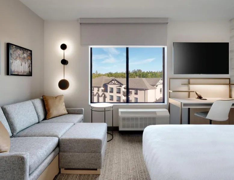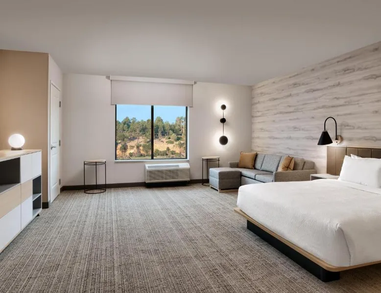 Comfortable Accommodations: TownePlace Suites by Marriott Show Low in Show Low offers family rooms with air-conditioning, private bathrooms, and modern amenities. Each room includes a work desk, free toiletries, and a TV. Exceptional Facilities: Guests can enjoy a fitness center, restaurant, and a year-round outdoor swimming pool. Additional facilities include an outdoor fireplace, hot tub, and electric vehicle charging station. Dining Experience: The modern restaurant serves Italian cuisine for lunch and dinner. Breakfast includes fresh pastries, fruits, and juice. Convenient Location: Located 2.5 mi from Show Low Regional Airport, the hotel provides free on-site private parking and is highly rated by guests.