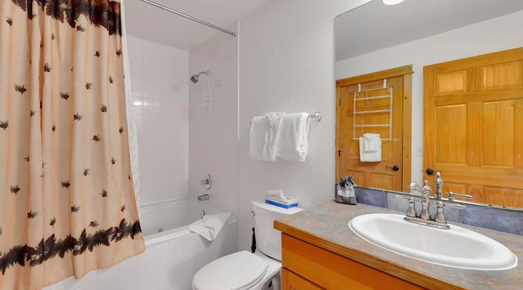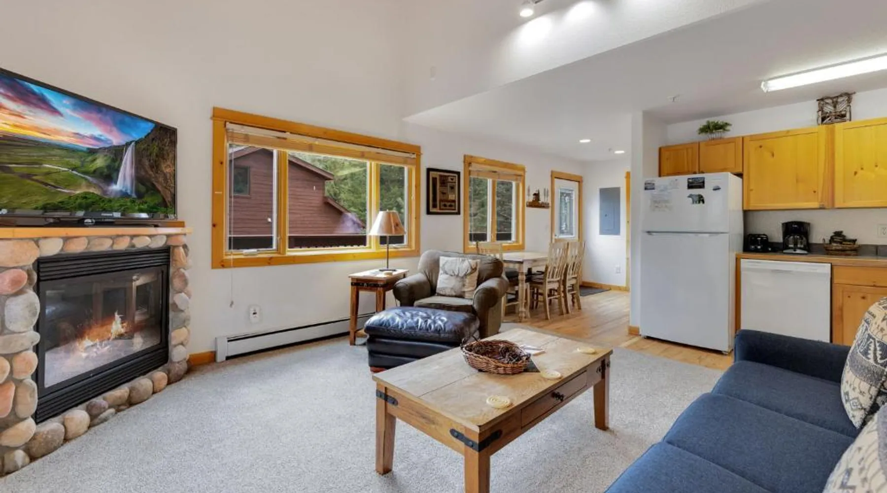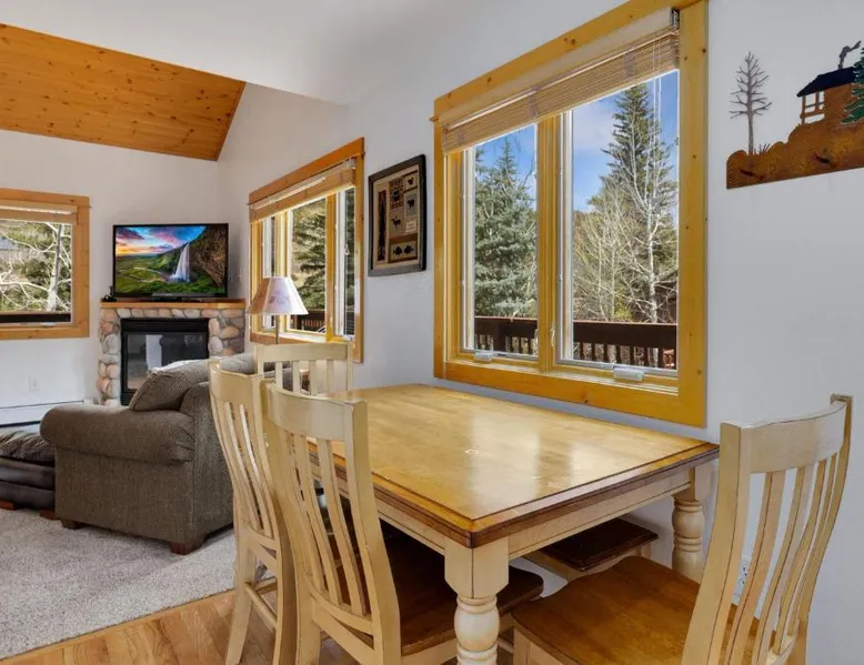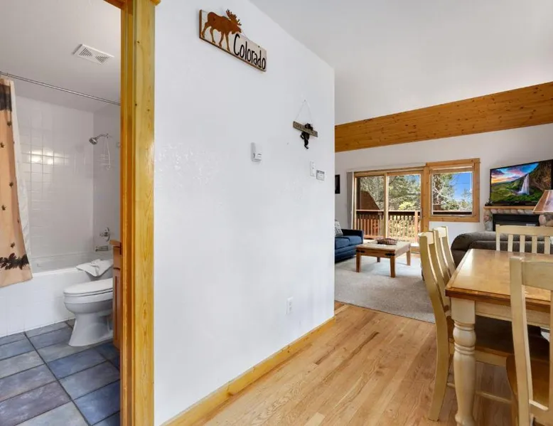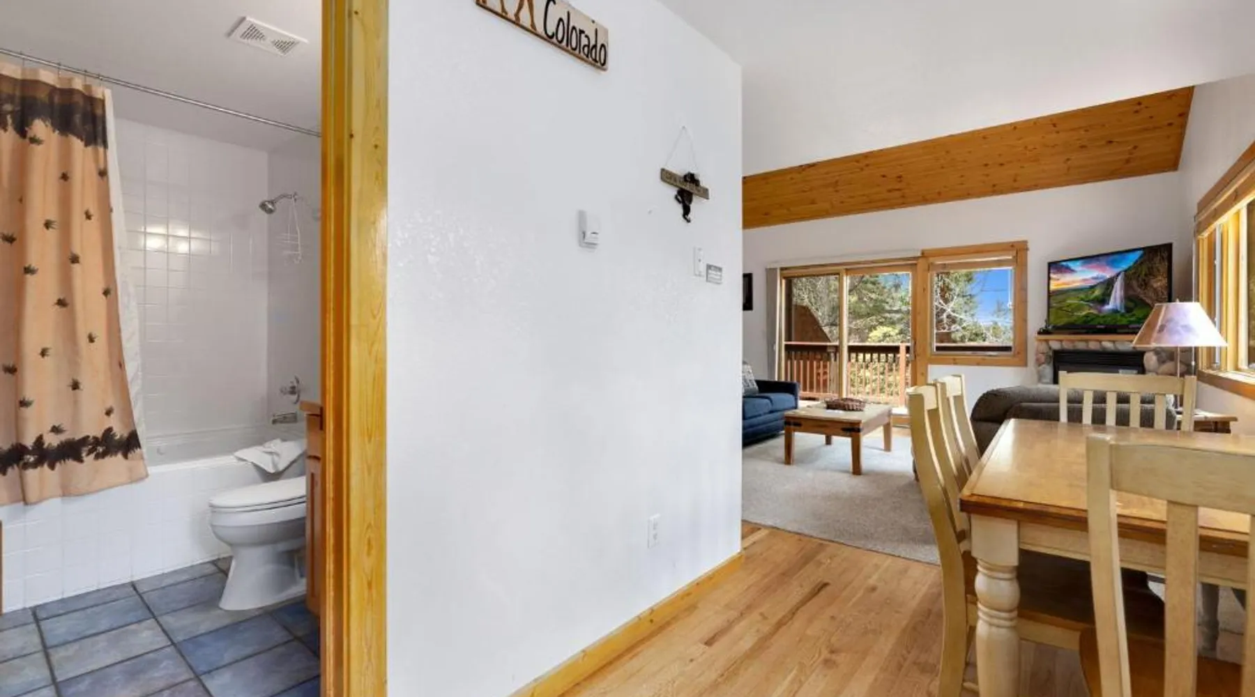 Spacious Accommodations: Bugle Pointe B23 by Estes Park Condos in Estes Park offers a spacious apartment with two bedrooms and two bathrooms. The living room features a sofa bed and a dining area with a table. Modern Amenities: Guests enjoy free WiFi, streaming services, a washing machine, and a fully equipped kitchen with a refrigerator, microwave, dishwasher, and oven. Additional amenities include a fireplace, tea and coffee maker, and free toiletries. Outdoor Spaces: The property features an outdoor seating area with mountain and river views. Free on-site private parking is available for guests. Convenient Location: Located 80517, the apartment is located near attractions such as Rocky Mountain National Park and the Estes Park Riverwalk. Reception staff speak English. Guests will have a special experience as the apartment offers a fireplace. This spacious apartment consists of 1 living room, 2 separate bedrooms and 2 bathrooms with a bath and free toiletries. The apartment provides a washing machine, a private entrance, a tea and coffee maker, a flat-screen TV with streaming services, as well as mountain views. The unit offers 1 bed.