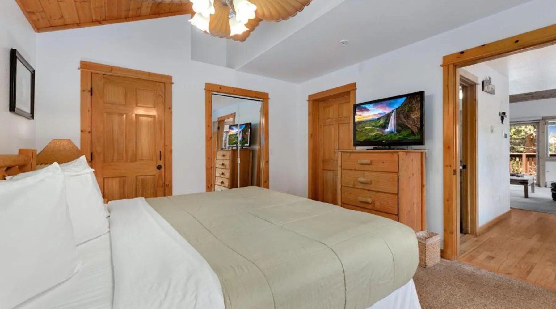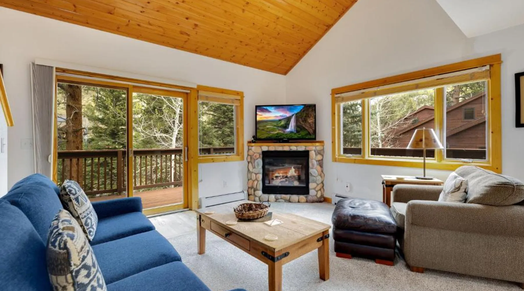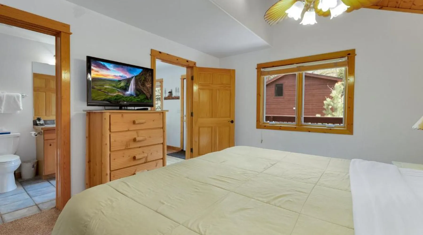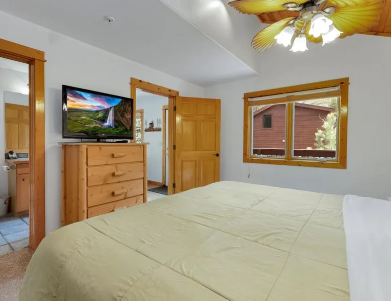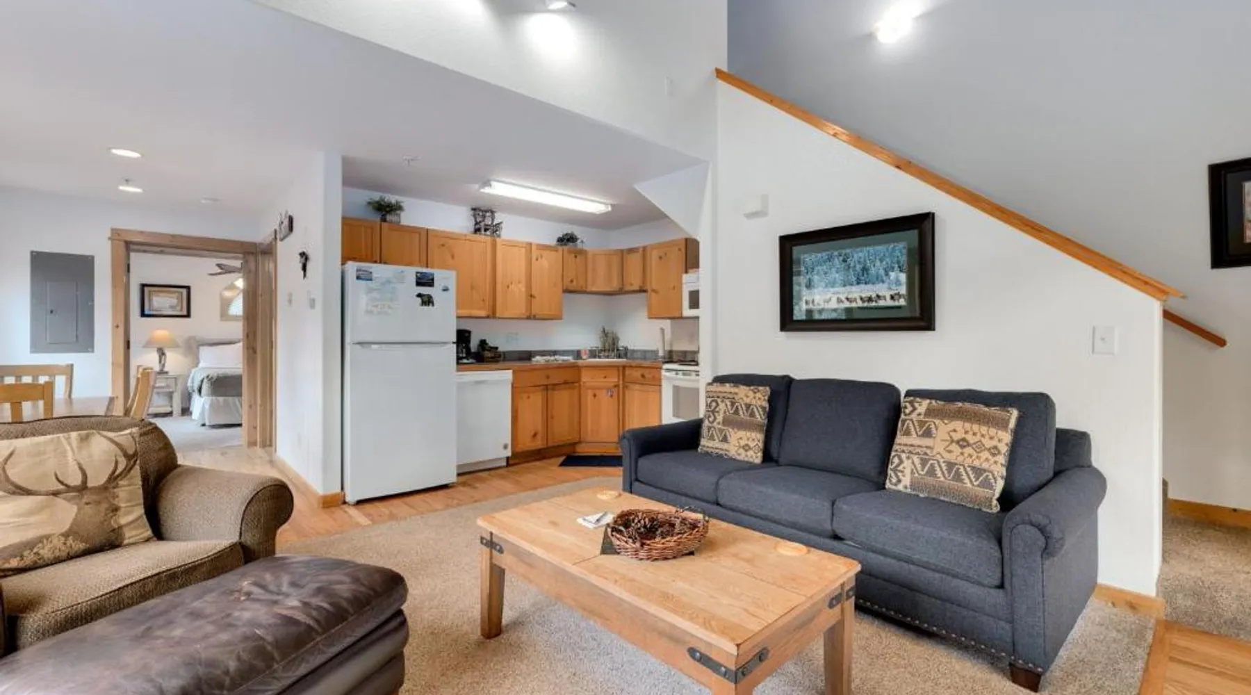 Spacious Accommodations: Bugle Pointe B23 by Estes Park Condos in Estes Park offers a spacious apartment with two bedrooms and two bathrooms. The living room features a sofa bed and a dining area with a table. Modern Amenities: Guests enjoy free WiFi, streaming services, a washing machine, and a fully equipped kitchen with a refrigerator, microwave, dishwasher, and oven. Additional amenities include a fireplace, tea and coffee maker, and free toiletries. Outdoor Spaces: The property features an outdoor seating area with mountain and river views. Free on-site private parking is available for guests. Convenient Location: Located 80517, the apartment is located near attractions such as Rocky Mountain National Park and the Estes Park Riverwalk. Reception staff speak English. Guests will have a special experience as the apartment offers a fireplace. This spacious apartment consists of 1 living room, 2 separate bedrooms and 2 bathrooms with a bath and free toiletries. The apartment provides a washing machine, a private entrance, a tea and coffee maker, a flat-screen TV with streaming services, as well as mountain views. The unit offers 1 bed.