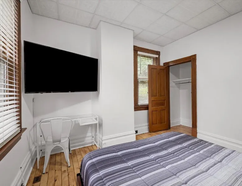 Comfortable Accommodations: Oakland, Pittsburgh !E Cozy and Stylish Private Bedroom with Shared Bathroom offers a homestay experience in Pittsburgh. The property features a garden and terrace, complemented by free WiFi. Modern Amenities: Guests enjoy air-conditioning, a fully equipped kitchen, washing machine, and a shared bathroom. Additional amenities include a dining area, TV, and free on-site parking. Convenient Location: Located 17 mi from Pittsburgh International Airport and 1.2 mi from the University of Pittsburgh, the homestay is close to attractions such as Carnegie Mellon University and the Andy Warhol Museum. An ice-skating rink is also nearby. Highly Rated by Guests: Guests appreciate the comfortable accommodations and excellent service, making it a preferred choice for a pleasant stay in Pittsburgh. In the well-equipped kitchen, guests will find a stovetop, a refrigerator, a dishwasher and kitchenware. The double room offers air conditioning, a washing machine, a terrace with garden views as well as a shared bathroom boasting a bath. The unit has 1 bed.