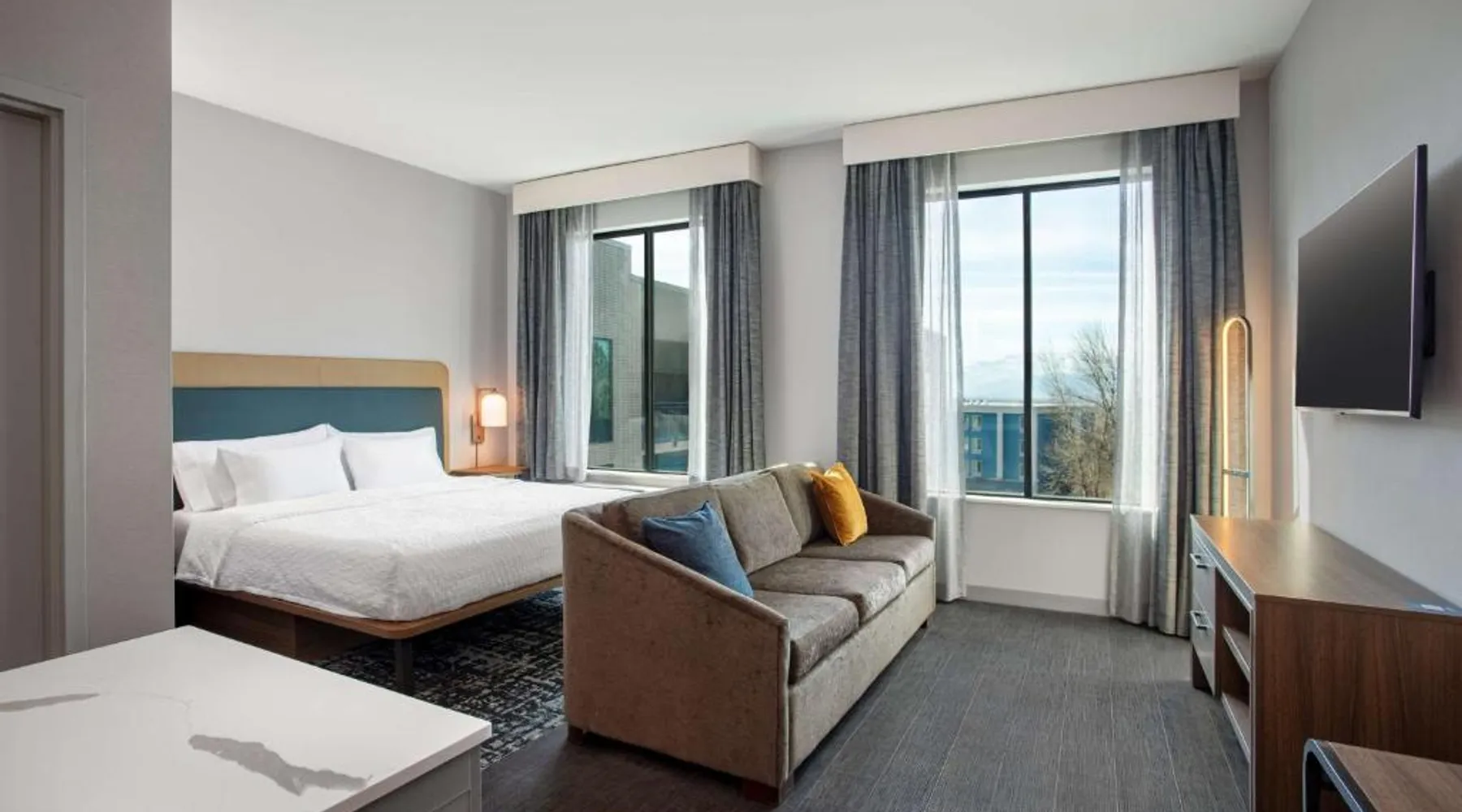 Comfortable Accommodations: Homewood Suites By Hilton Missoula in Missoula offers three-star comfort with air-conditioning, kitchen facilities, and free WiFi. Each room includes a work desk, seating area, and balcony. Exceptional Facilities: Guests can enjoy an indoor swimming pool, fitness room, and 24-hour front desk. Additional amenities include a elevator, concierge service, and interconnected rooms. Convenient Location: Located 3.1 mi from Missoula International Airport and 5 mi from the University of Montana, the hotel provides easy access to local attractions. Highly Rated by Guests: Homewood Suites By Hilton Missoula is highly rated by guests for its excellent service and comfortable accommodations. In the fully equipped kitchen, guests will find a stovetop, a refrigerator, a dishwasher and kitchenware. This studio is air-conditioned and has a flat-screen TV with cable channels, a tea and coffee maker, a seating area and heating. The unit has 2 beds.