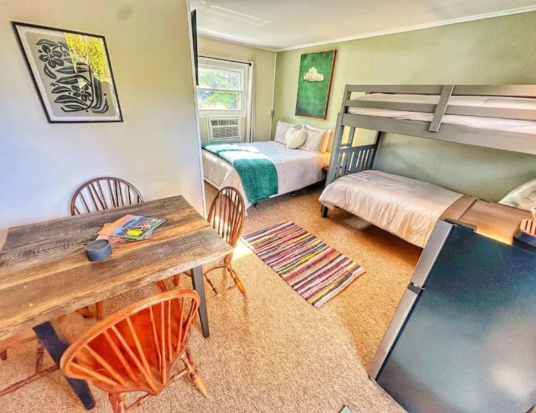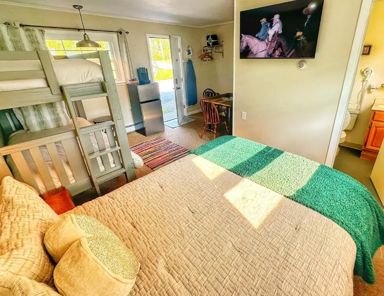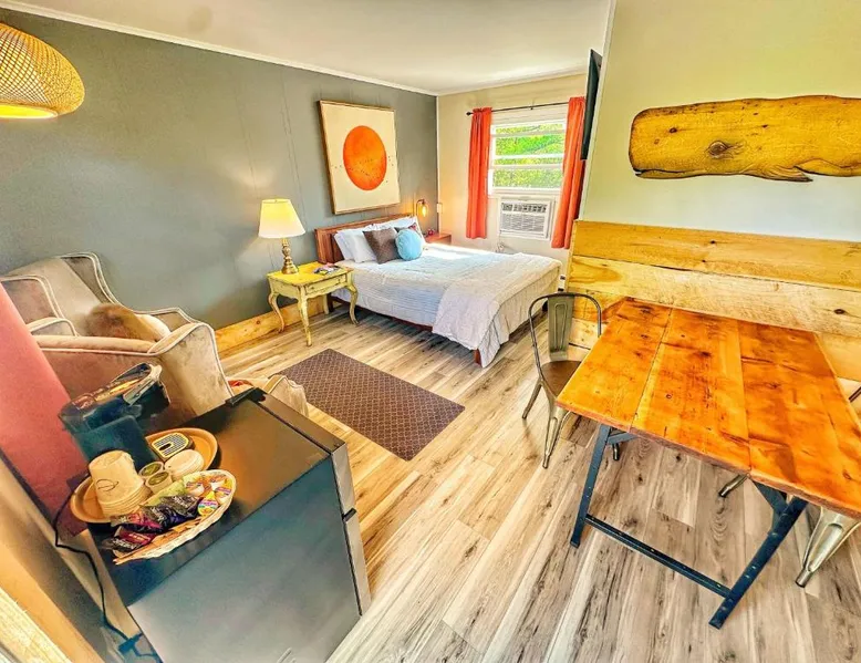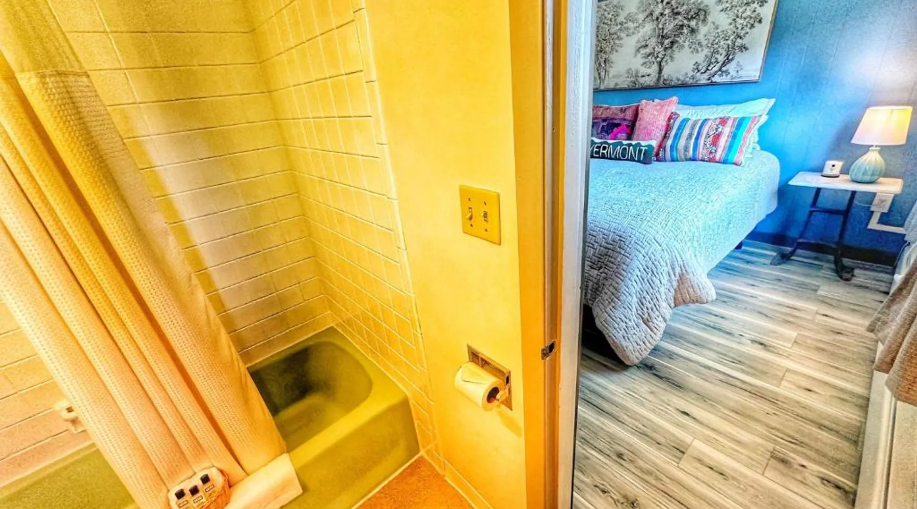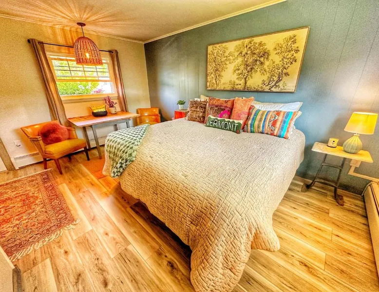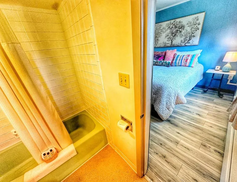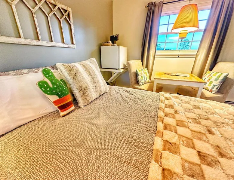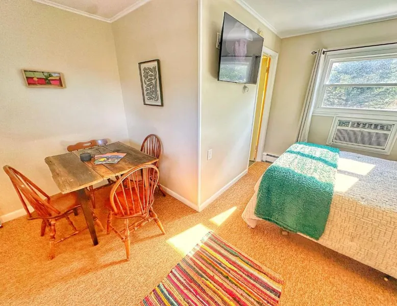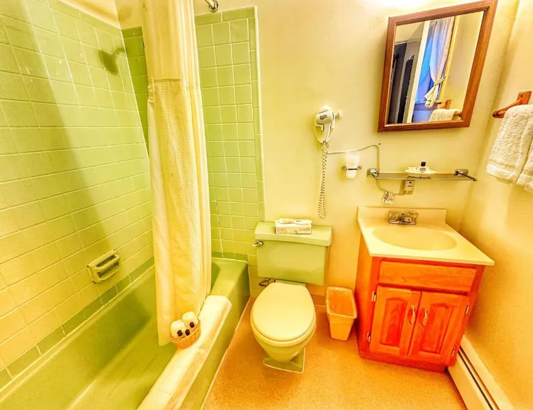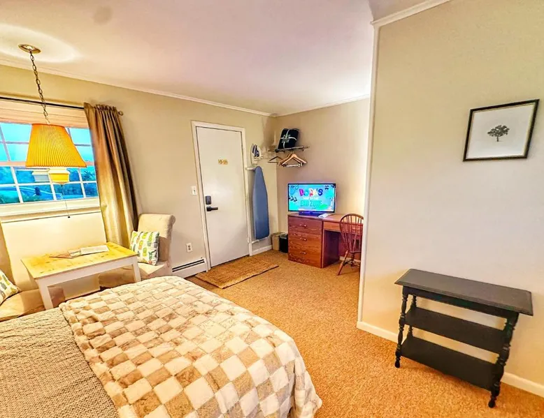 Comfortable Accommodations: Brittany Motel in Manchester offers family rooms with private bathrooms, air-conditioning, and mountain views. Each room includes a tea and coffee maker, refrigerator, work desk, and free toiletries. Essential Facilities: Guests enjoy free WiFi, a sun terrace, and an outdoor fireplace. Additional amenities include a coffee shop, outdoor seating area, picnic area, and free on-site private parking. Convenient Location: Located 31 mi from Rutland State Airport, the motel is near attractions such as Mount Equinox (5.6 mi), Bennington Battlefield Park (22 mi), and Stratton Mountain (20 mi). Guest Satisfaction: Highly rated for its snack bar, room cleanliness, and value for money. Offering free toiletries, this double room includes a private bathroom with a bath, a shower and a hairdryer. The air-conditioned double room offers a flat-screen TV with streaming services, a private entrance, a tea and coffee maker, parquet floors as well as mountain views. The unit offers 1 bed.