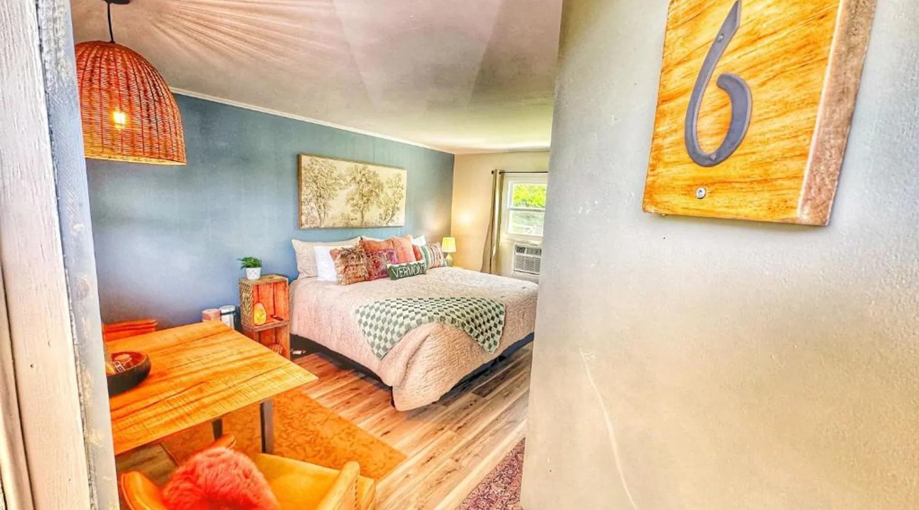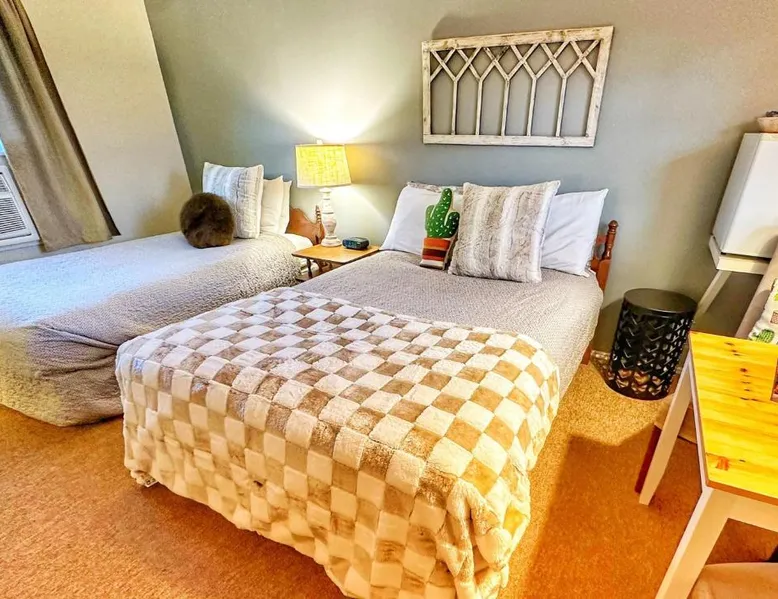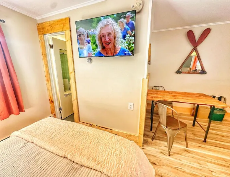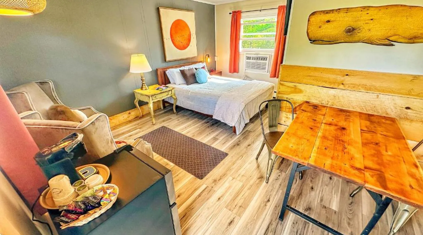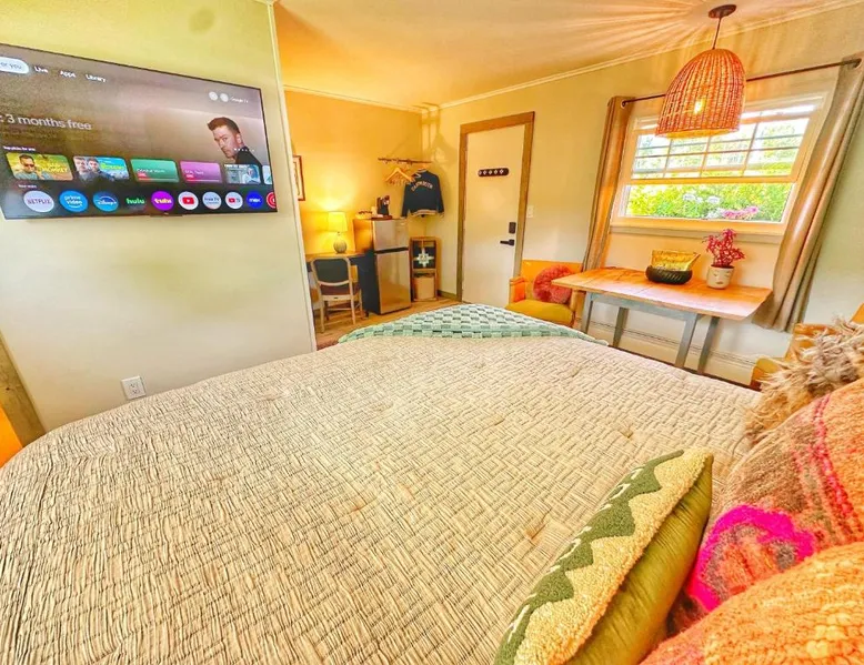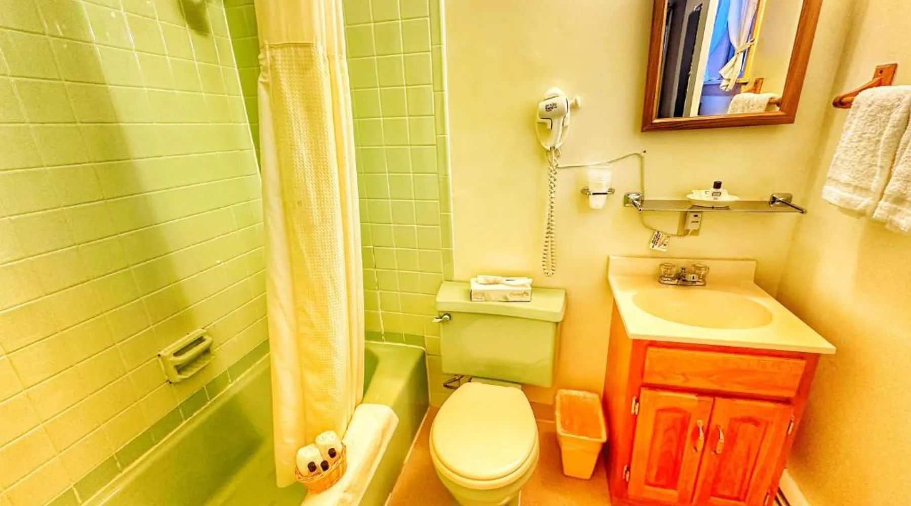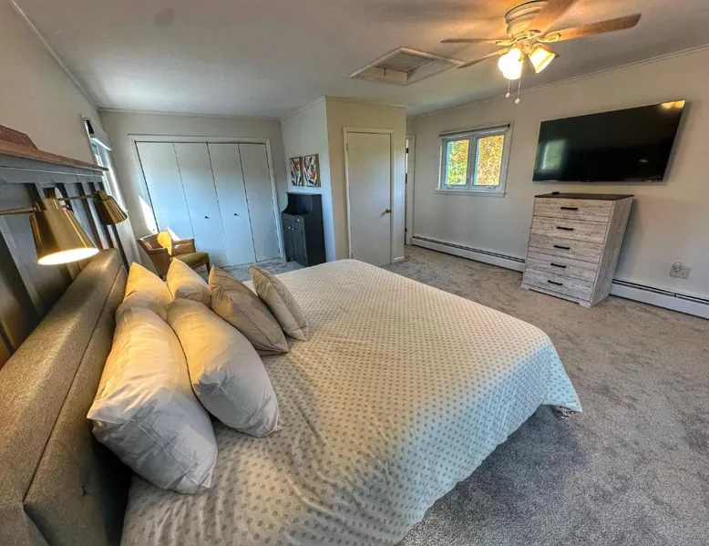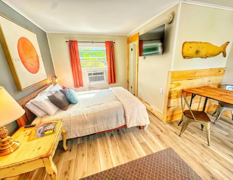 Comfortable Accommodations: Brittany Motel in Manchester offers family rooms with private bathrooms, air-conditioning, and mountain views. Each room includes a tea and coffee maker, refrigerator, work desk, and free toiletries. Essential Facilities: Guests enjoy free WiFi, a sun terrace, and an outdoor fireplace. Additional amenities include a coffee shop, outdoor seating area, picnic area, and free on-site private parking. Convenient Location: Located 31 mi from Rutland State Airport, the motel is near attractions such as Mount Equinox (5.6 mi), Bennington Battlefield Park (22 mi), and Stratton Mountain (20 mi). Guest Satisfaction: Highly rated for its snack bar, room cleanliness, and value for money. Offering free toiletries, this double room includes a private bathroom with a bath, a shower and a hairdryer. The air-conditioned double room offers a flat-screen TV with streaming services, a private entrance, a tea and coffee maker, parquet floors as well as mountain views. The unit offers 1 bed.