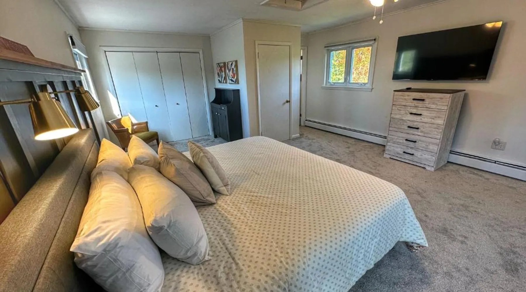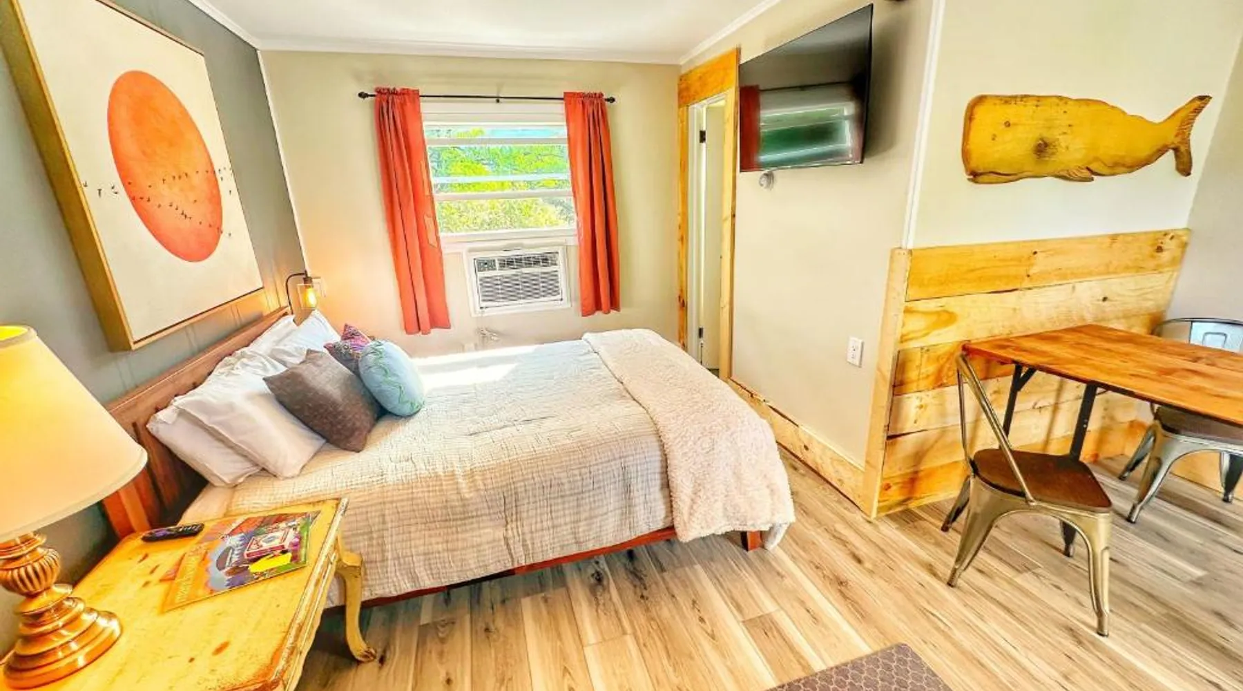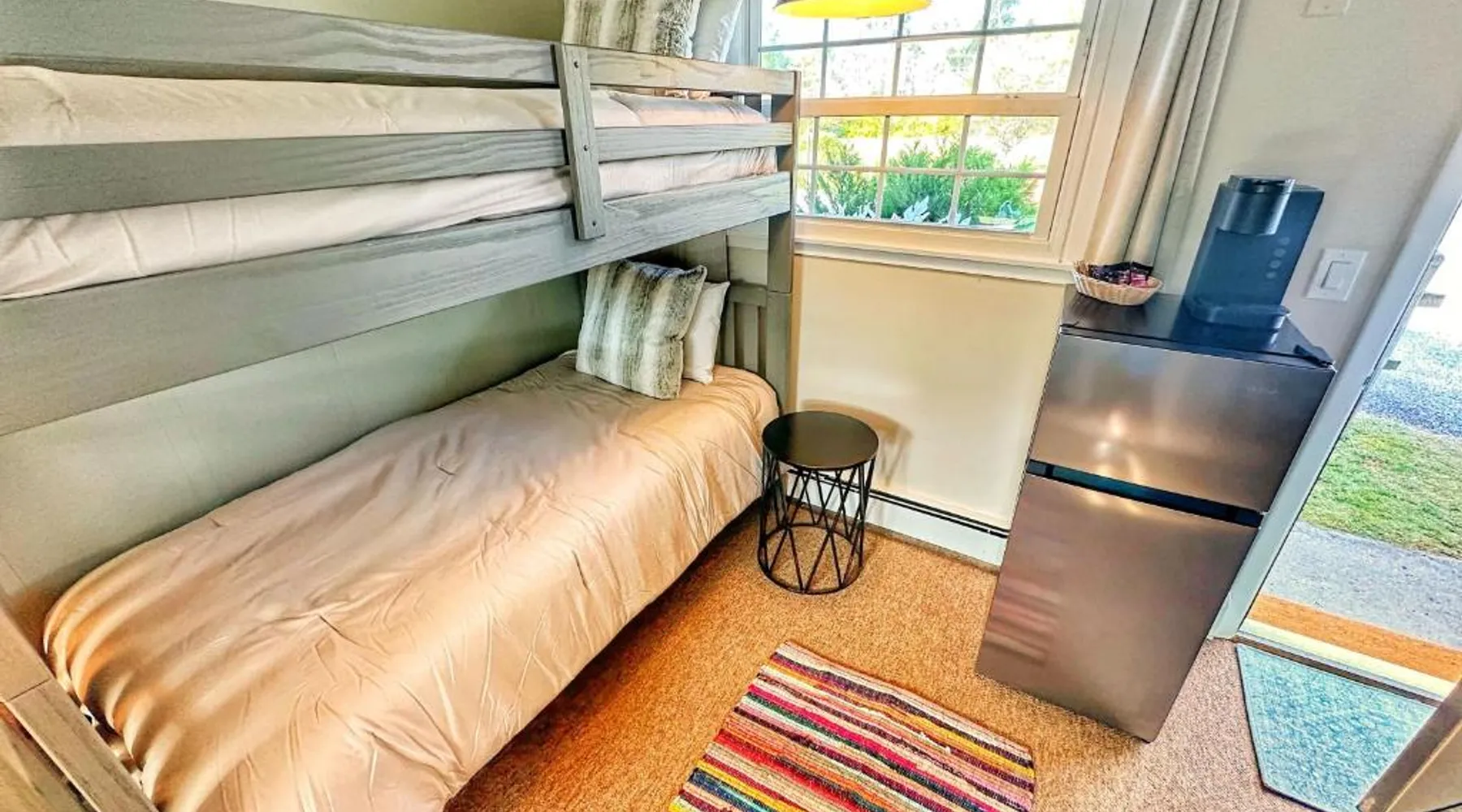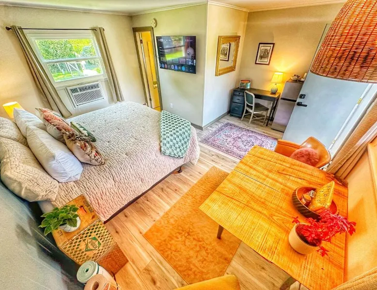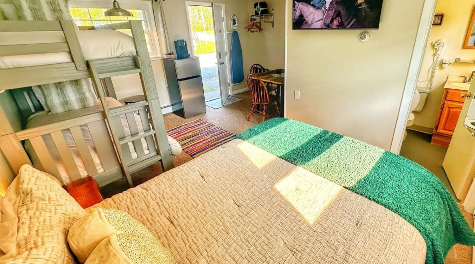 Comfortable Accommodations: Brittany Motel in Manchester offers family rooms with private bathrooms, air-conditioning, and mountain views. Each room includes a tea and coffee maker, refrigerator, work desk, and free toiletries. Essential Facilities: Guests enjoy free WiFi, a sun terrace, and an outdoor fireplace. Additional amenities include a coffee shop, outdoor seating area, picnic area, and free on-site private parking. Convenient Location: Located 31 mi from Rutland State Airport, the motel is near attractions such as Mount Equinox (5.6 mi), Bennington Battlefield Park (22 mi), and Stratton Mountain (20 mi). Guest Satisfaction: Highly rated for its snack bar, room cleanliness, and value for money. Offering free toiletries, this double room includes a private bathroom with a bath, a shower and a hairdryer. The air-conditioned double room offers a flat-screen TV with streaming services, a private entrance, a tea and coffee maker, parquet floors as well as mountain views. The unit offers 1 bed.