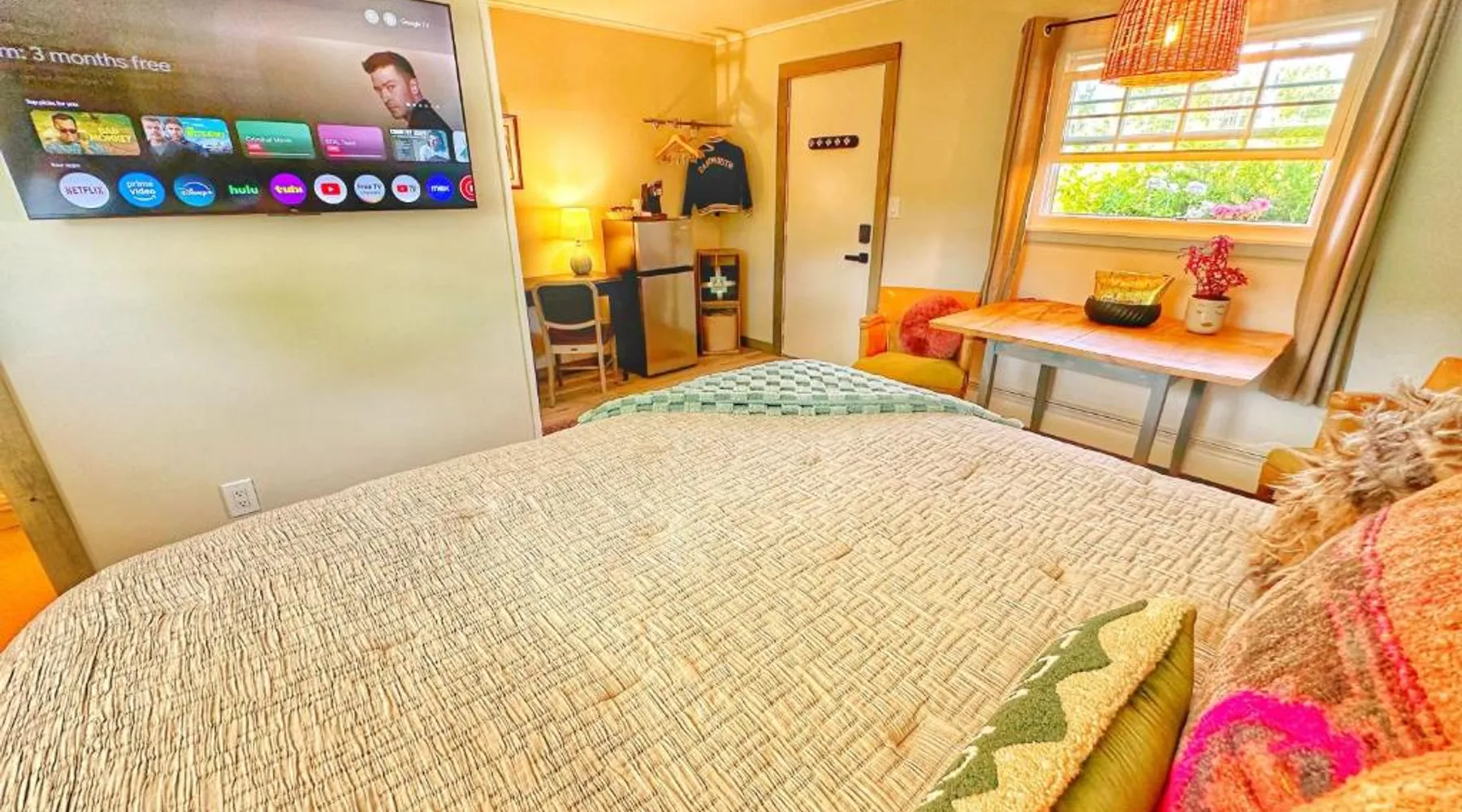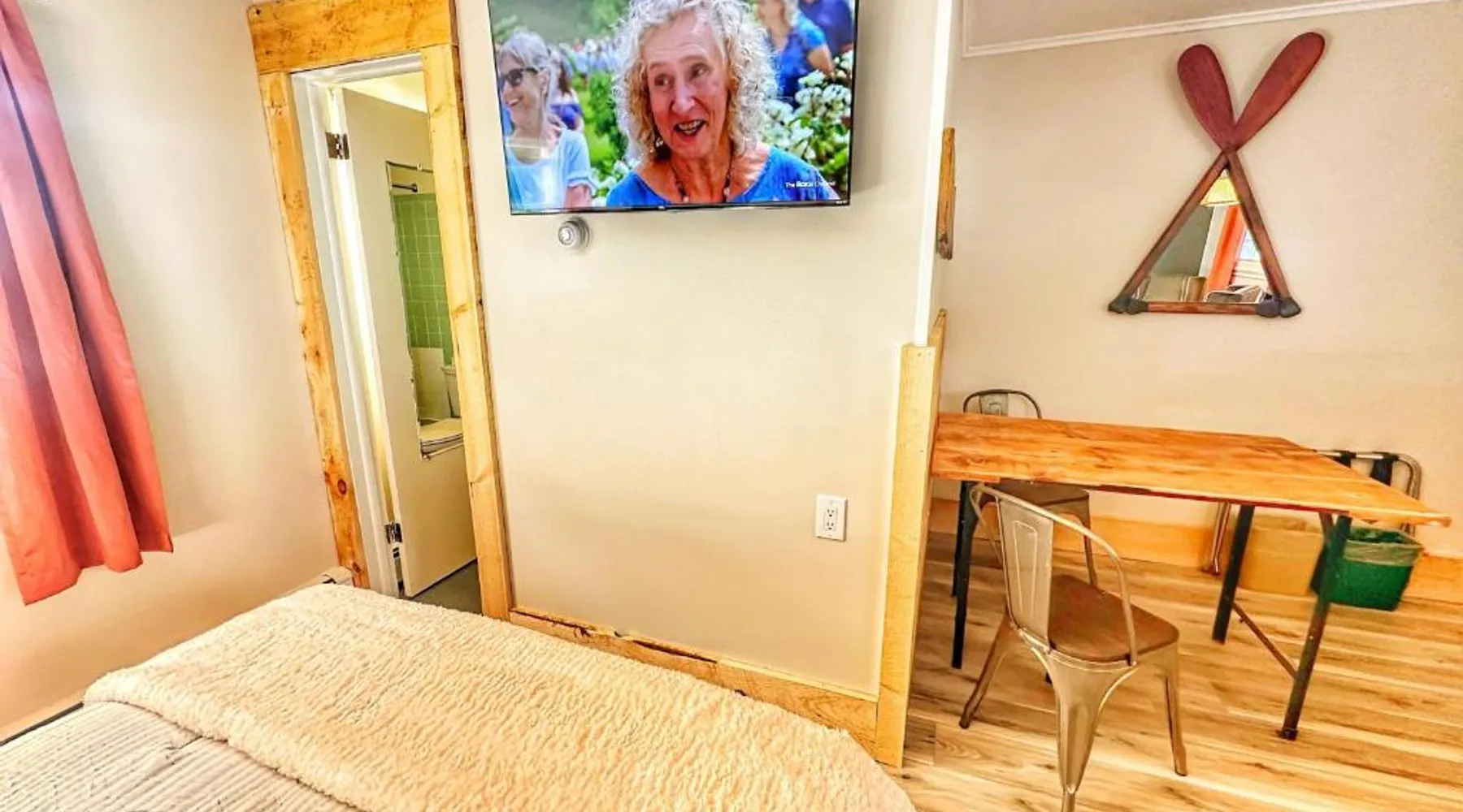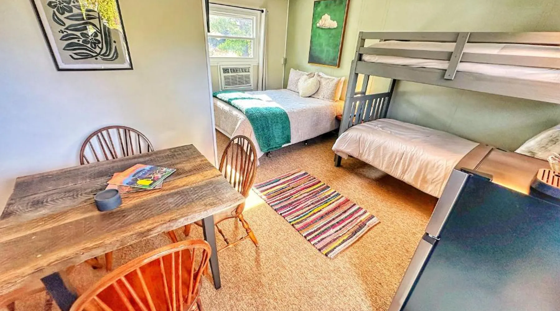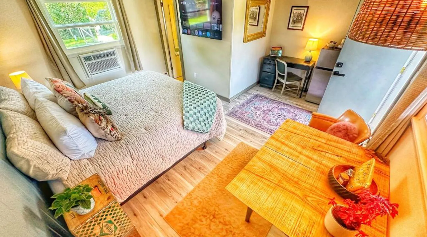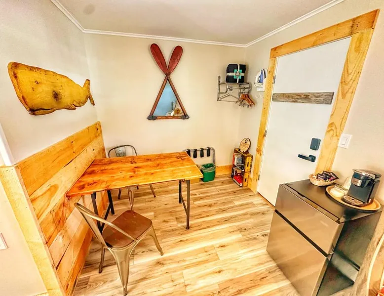 Comfortable Accommodations: Brittany Motel in Manchester offers family rooms with private bathrooms, air-conditioning, and mountain views. Each room includes a tea and coffee maker, refrigerator, work desk, and free toiletries. Essential Facilities: Guests enjoy free WiFi, a sun terrace, and an outdoor fireplace. Additional amenities include a coffee shop, outdoor seating area, picnic area, and free on-site private parking. Convenient Location: Located 31 mi from Rutland State Airport, the motel is near attractions such as Mount Equinox (5.6 mi), Bennington Battlefield Park (22 mi), and Stratton Mountain (20 mi). Guest Satisfaction: Highly rated for its snack bar, room cleanliness, and value for money. Offering free toiletries, this double room includes a private bathroom with a bath, a shower and a hairdryer. The air-conditioned double room offers a flat-screen TV with streaming services, a private entrance, a tea and coffee maker, parquet floors as well as mountain views. The unit offers 1 bed.