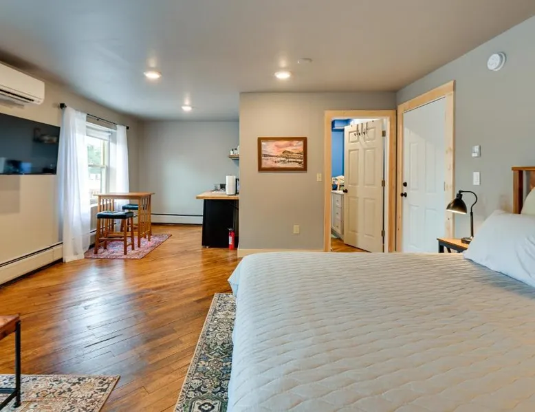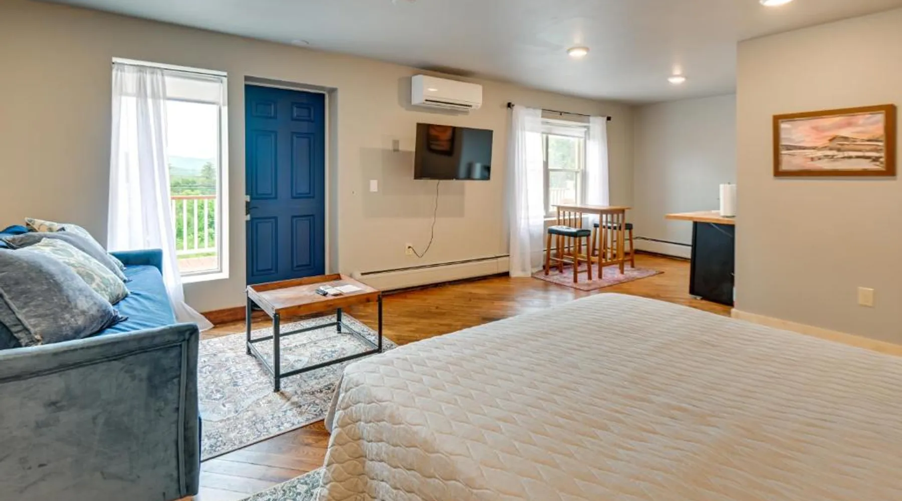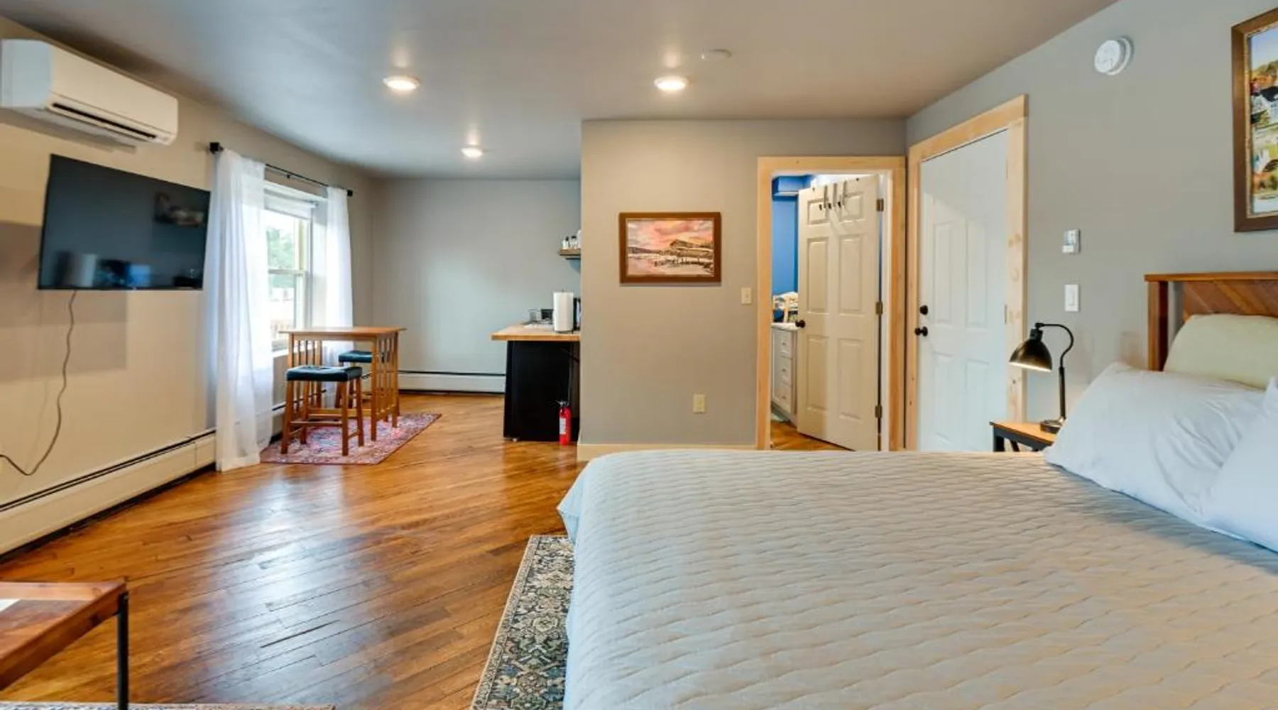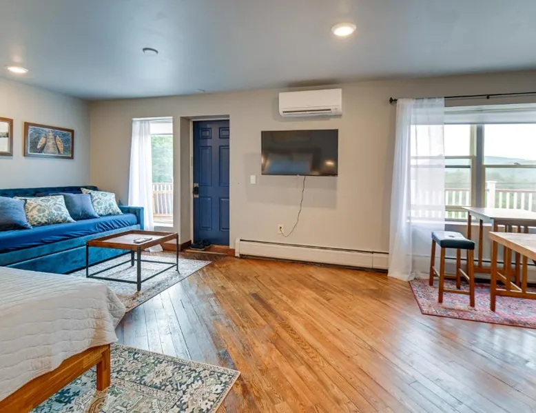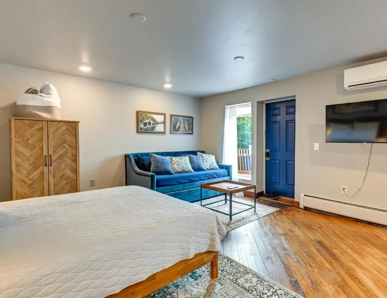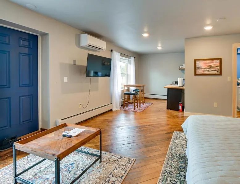Comfortable Living Space: Cozy Meredith Studio Near Lakes and Downtown in Meredith offers a spacious apartment with a private entrance. The property features air-conditioning, a fully equipped kitchen, and a private bathroom with free toiletries. Modern Amenities: Guests enjoy free WiFi, a coffee machine, dining table, refrigerator, work desk, TV, and a private entrance. The apartment includes a fully equipped kitchen with kitchenware, a toaster, and a microwave. Convenient Location: Located 50 mi from Lebanon Municipal Airport, the apartment provides easy access to local lakes and downtown areas. Free on-site parking is available for guests. Guests can make meals in the kitchen that has a refrigerator, kitchenware and a toaster. The apartment features air conditioning and a private entrance, as well as a private bathroom boasting a shower.