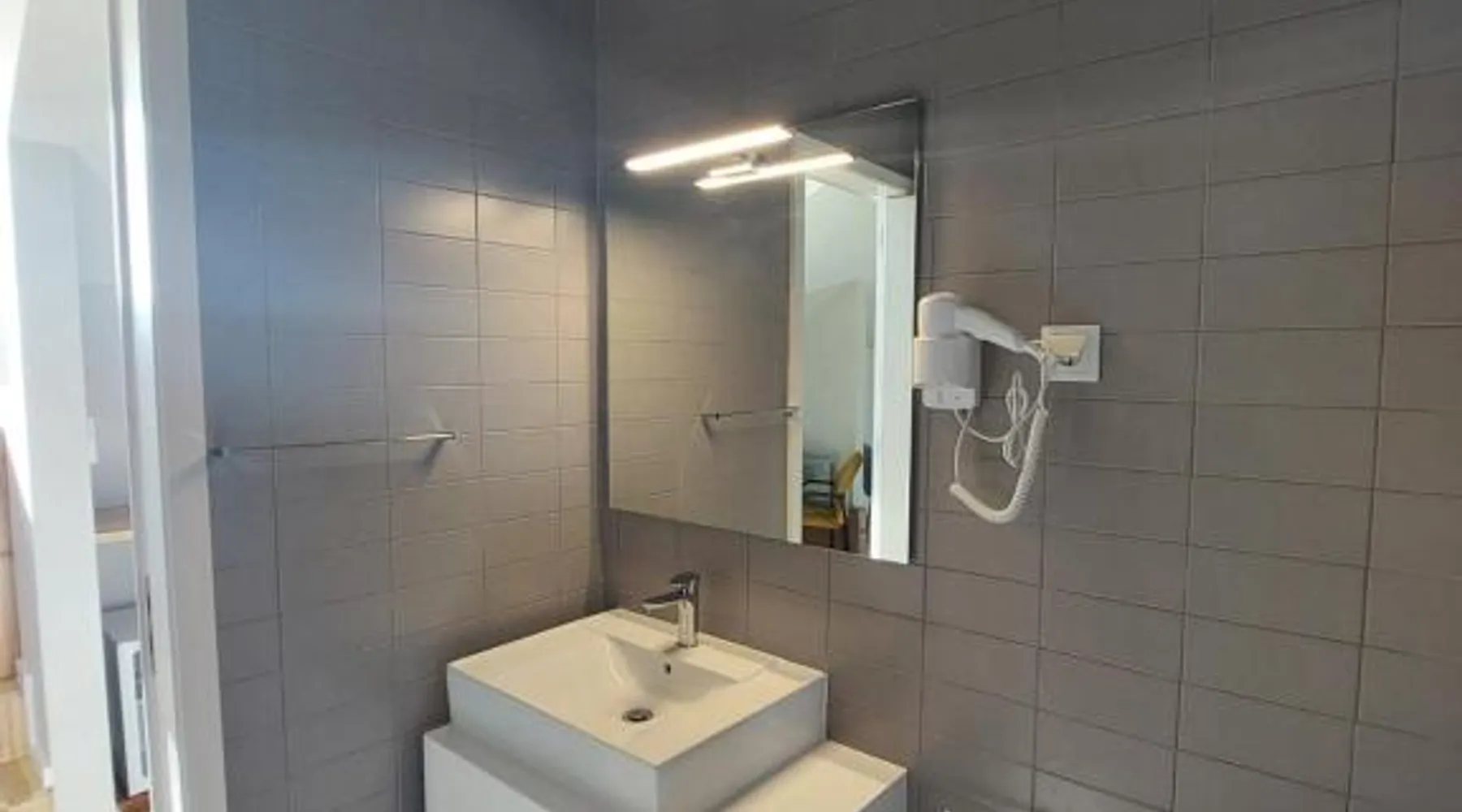 Beachfront Location: VerMar in Torreira offers direct beachfront access and a sun terrace. Guests enjoy sea views and a relaxing atmosphere. Comfortable Accommodations: Recently renovated rooms feature air-conditioning, private bathrooms, and modern amenities. Family rooms and private check-in and check-out services ensure a comfortable stay. Dining and Amenities: The property provides free WiFi, a lounge, and a coffee shop. Additional facilities include a shared kitchen, outdoor seating area, and picnic spots. Nearby Attractions: Torreira Beach is just a few steps away. Francisco Sá Carneiro Airport is 40 mi from VerMar. Other attractions include Europarque (19 mi) and Santa Maria da Feira Castle (19 mi). In the well-fitted kitchen, guests will find a stovetop, a refrigerator, kitchenware and an oven. This air-conditioned family room has a desk, an outdoor dining area, sea views and a private bathroom. The unit has 2 beds.