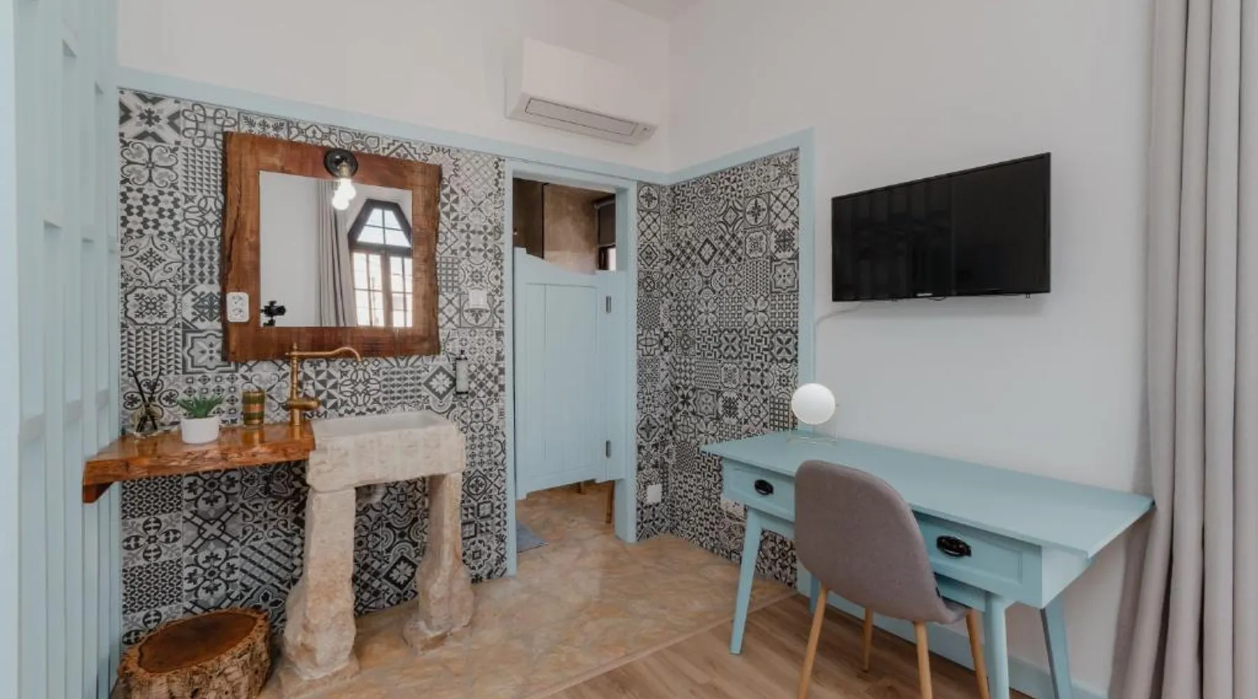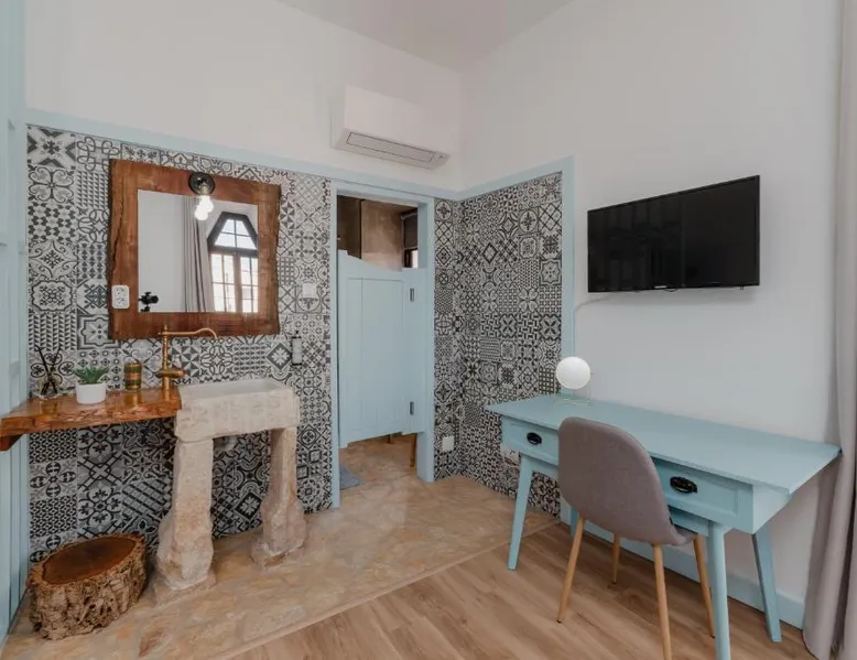 Elegant Accommodations: Casa da Cerca in Runa offers a recently renovated bed and breakfast with a sun terrace, garden, and a year-round outdoor swimming pool. Guests enjoy free WiFi throughout the property. Comfortable Amenities: The property features air-conditioning, private bathrooms, tea and coffee makers, and parquet floors. Additional amenities include balconies with garden or pool views, sofa beds, and work desks. Outdoor Spaces: An outdoor seating area, picnic area, and children's playground provide relaxing spaces. Free on-site parking is available for guests. Local Attractions: Located 25 mi from Obidos Castle and Humberto Delgado Airport, Casa da Cerca is also close to Gare do Oriente (29 mi), Lisbon Oceanarium (29 mi), and Luz Football Stadium (30 mi). Activities include fishing, canoeing, hiking, cycling, diving, and snorkeling. Offering free toiletries, this triple room includes a private bathroom with a shower and a hairdryer. This triple room has air conditioning, flat-screen TV, garden views, as well as chocolate for guests. The unit has 2 beds.