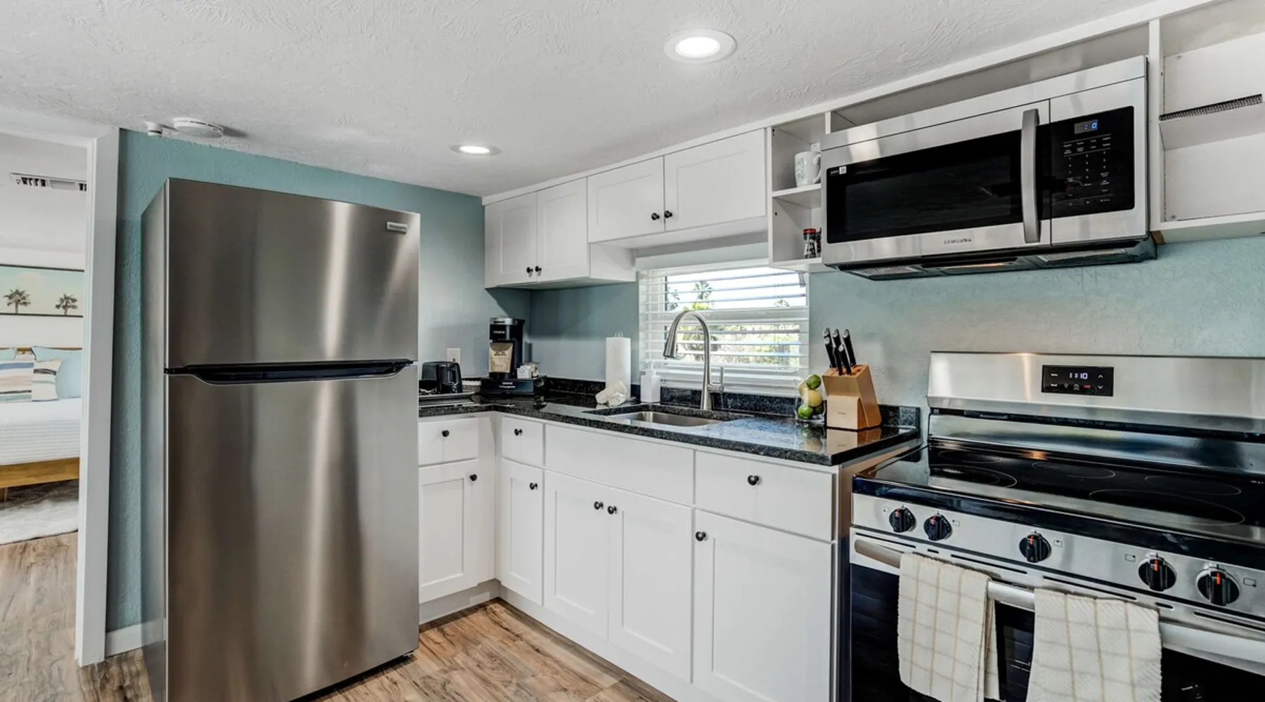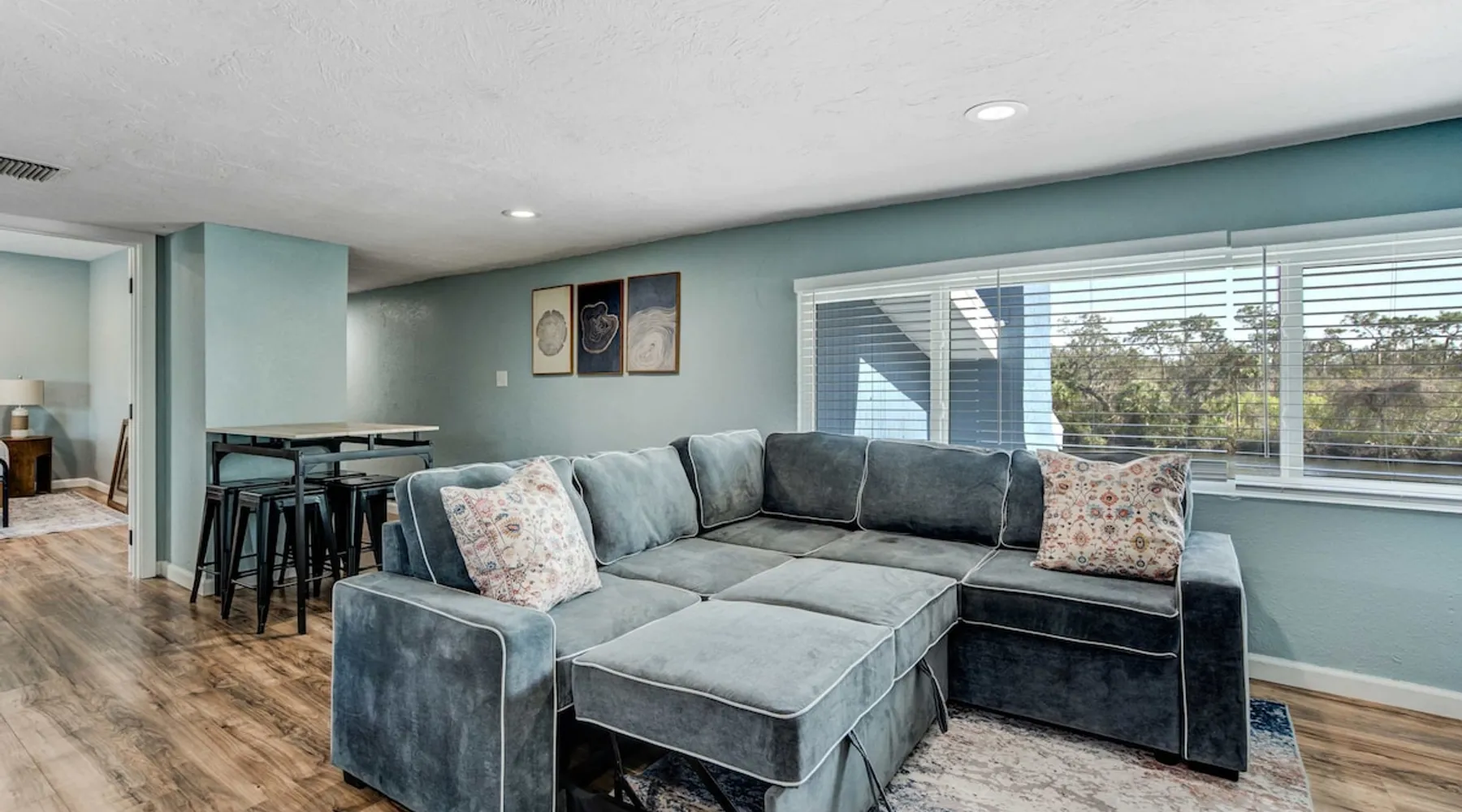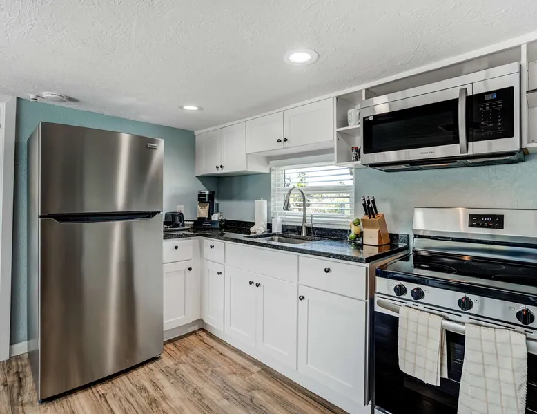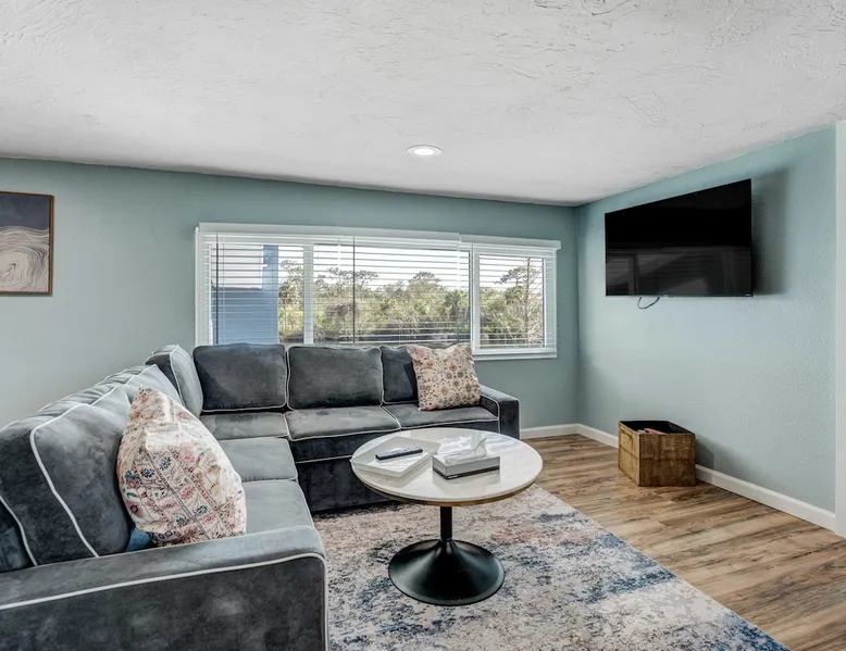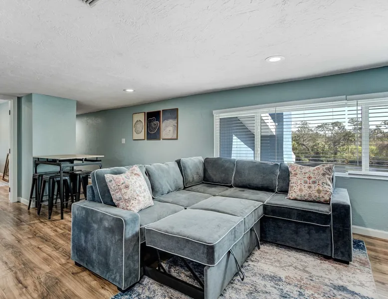Escape to Riverside Breeze, a peaceful upstairs hideaway along the Braden River, where outdoor relaxation meets modern comfort. 🌊 Riverfront escape with a shaded tiki hut 🐾 Pet-friendly with plenty of outdoor space. 🌿 Lush tropical backyard with Fire pit for ultimate relaxation 🍽️ Well-equipped kitchen with stainless steel appliances 📶 Fast WiFi & Smart TVs for seamless entertainment Experience nature and comfort in one—book your stay today! The space Step into a thoughtfully designed upstairs unit where modern comforts meet a relaxing riverside atmosphere. 🏡 Bright & Inviting Living Area Unwind in Unit #2, a private upstairs unit, The open-concept living room offers a comfortable sectional sofa, a Smart TV, and large windows that bring in natural light. Whether you're relaxing with a movie or gathering with loved ones, this space is perfect for unwinding. The sofa converts into a pull-out bed for additional sleeping options. 🍽️ Fully-Equipped Kitchen & Dining The modern kitchen includes stainless steel appliances, ample counter space, and all the essentials for preparing home-cooked meals. A Keurig coffee maker and toaster are provided for added convenience. The adjacent dining area features a high-top table with barstool seating, making it a great spot to enjoy meals or plan the day's adventures. 🛏️ Bedrooms & Sleeping Arrangements Bedroom 1 – King bed Bedroom 2 – Queen bed Additional Sleeping – Pull-out sofa bed in the living room. 🛁 Bathroom The bathroom features a spacious walk-in shower, fresh towels, and complimentary toiletries for a stress-free stay. 🌴 Riverside Outdoor Oasis Step outside to your shared backyard retreat, where you’ll find everything you need to relax and enjoy the Florida sunshine. The highlight is the tiki hut, offering shade and a comfortable space to unwind with a drink in hand. Gather around the fire pit for a cozy evening, or dine at the outdoor seating area. The backyard is also equipped with outdoor coolers, making it easy to keep drinks chilled while you soak up the atmosphere. 🧺 Laundry & Essentials For your convenience, an in-unit washer and dryer are available, making it easy to refresh your clothes after a day at the beach or exploring the area. Extra towels and linens are provided, so you can pack light and feel right at home. 🚗 Parking This unit includes four parking spaces, available in the driveway or on the street. Whether you’re spending time in the inviting living spaces or soaking up the sun in the backyard, Riverside Breeze offers a stylish and relaxing escape! Guest access 🔑 You'll have full access to the upstairs unit, including all bedrooms, living areas, the kitchen, and outdoor spaces. Feel free to make yourself at home and enjoy everything the space has to offer. If you have any questions or need anything during your stay, just let us know—we’re happy to help! Other things to note 📜 Rental Agreement: For a seamless booking experience, a Rental Agreement is required for all reservations. Once your reservation is confirmed, we’ll provide details for completing the agreement. 🔑 Check-In Process: For a seamless check-in experience, your unique code along with your check-in instructions will be updated into your personalized guidebook on the morning of your arrival. You’ll use this code for entry. ☕ Starter Supply: We’ve prepared a starter supply that includes paper towels, coffee K-cups, toilet paper, shampoo, body wash, and plush white towels! We hope these amenities add an extra touch of comfort to your stay. ⏰ Unauthorized Late Checkout Fee: $20 Per Half Hour Late 💵 Additional Fees: For guests bringing dogs, there is a mandatory pet fee of $100 per dog, collected after booking. A maximum of 2 dogs is allowed per reservation unless otherwise approved. No other animals are permitted. Optional services, including early check-in, late check-out, and additional guests, can be arranged upon request and are subject to availability. These additional fees help cover the cost of reworking the schedule or adding an additional cleaner if needed. Please message us ahead of time for pricing and availability.. 🏡 Separate Unit & Shared Outdoor Spaces: Riverside Luau, Riverside Breeze, and Riverside Hut are separate units within the same property. While your indoor space is private, all outdoor amenities—including the tiki hut, fire pit, BBQ grill, and seating areas—are shared among guests staying in other units. 📅 Booking the Entire Property: If you’re interested in reserving the entire property for a larger group, feel free to reach out for availability. We’d be happy to accommodate your stay!
