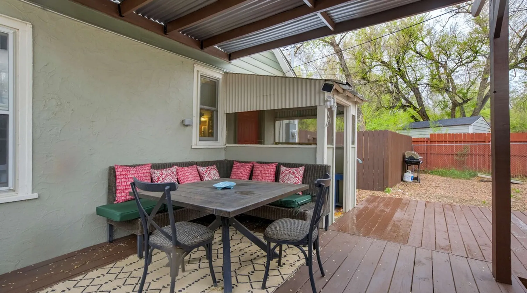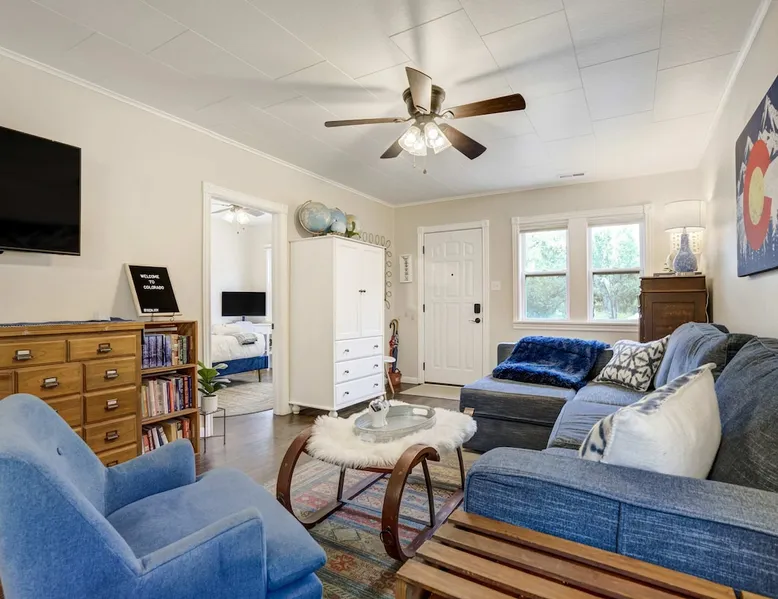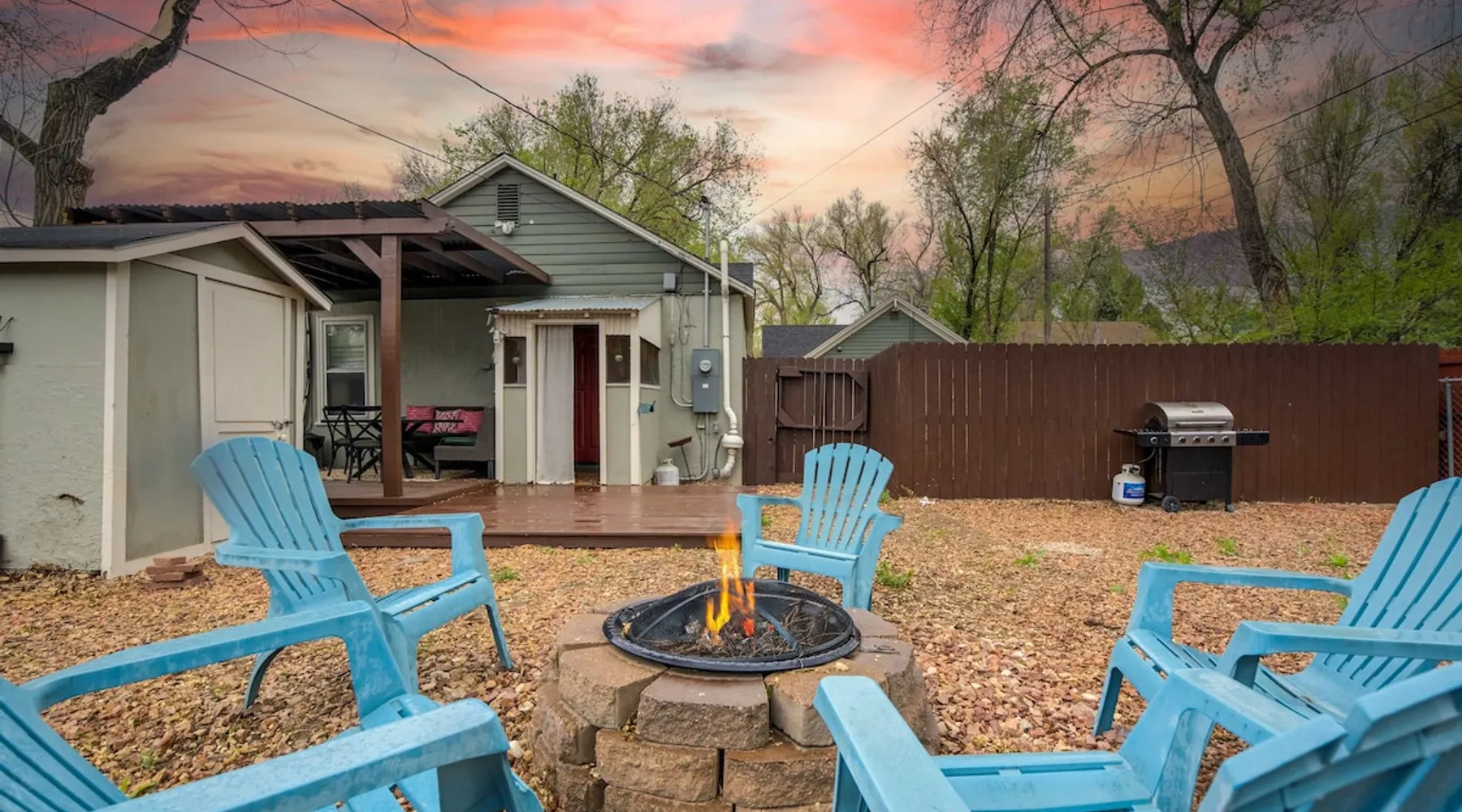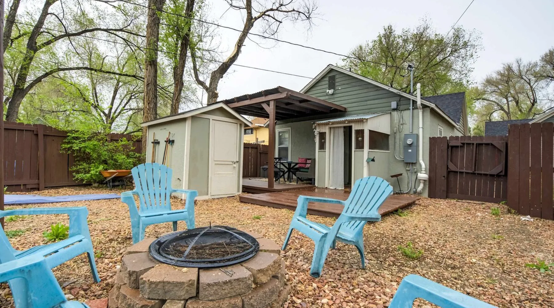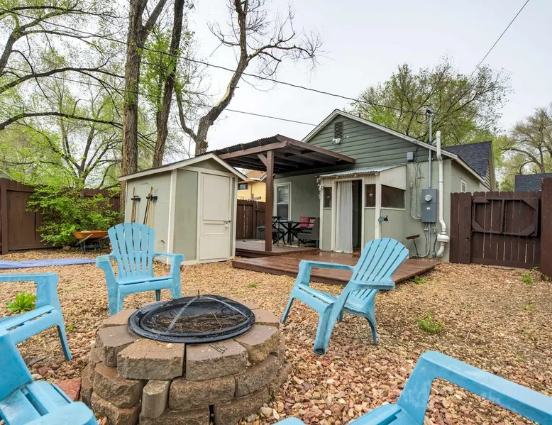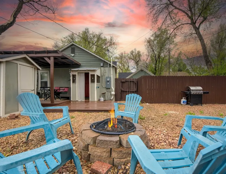 Welcome to Peakstone Nest! A cozy Colorado Springs retreat blending comfort, function, and design! 🔥 Cozy fire pit and outdoor seating area for relaxing nights 🪵 Thoughtfully designed with warm textures and rustic-modern charm 💻 Home office setup with a curved 27" external monitor 👶 Pet-friendly, includes pack-n-play and high chair for traveling families 📍 Located near Old Colorado City, parks, cafés, and downtown Book your Colorado Springs escape today! The space Peakstone Nest is a cozy single-level retreat that combines comfort, functionality, and warm design. From the open living area to the backyard fire pit and dedicated home office, every space is crafted for relaxation and ease. 🛋️ Living Room(s) The open-concept living area is full of warmth and charm, featuring a plush blue sectional, hardwood floors, and mountain-inspired artwork. Gather for movie nights, morning coffee, or game nights in this cozy, stylish space. Ceiling fans and natural light make it an easy place to unwind year-round. 🍽️ Kitchens & Dining The kitchen blends function and design with granite countertops, stainless steel appliances, and curated open shelving. A wall-mounted pot rack keeps essentials close at hand, while track lighting and a window above the sink add brightness. The adjacent dining area overlooks the backyard—ideal for relaxed meals or takeout from nearby spots. A complimentary coffee station with pods and a curated spice rack make prepping meals feel effortless. 🛏️ Bedroom/s & Sleeping Arrangement/s Bedroom 1: King bed Bedroom 2: Full bed Bedroom 3: Full-over-full bunk bed 🛁 Bathrooms The full bathroom includes a mosaic-tiled shower, LED-lit mirror, modern vanity, and a tub perfect for soaking. Stocked with plush towels and essential toiletries to keep you refreshed throughout your stay. 🧺 Laundry In-unit washer and dryer with extra storage space, making longer stays a breeze. 🌿 Outdoor Spaces Step outside to your own backyard retreat—featuring a cozy fire pit, bench seating, and a covered patio for shaded relaxation. Whether you’re enjoying a peaceful morning or gathering under the stars, this outdoor space is a guest favorite. 💻 Remote Work Setup Need to get a little work done between adventures? A dedicated workspace includes a curved 27" external monitor, comfortable desk chair, and plenty of natural light. It’s the perfect nook for video calls, creative focus, or extended remote stays. 🐾 Pet-Friendly Details Peakstone Nest is pet-friendly. If you are bringing a pet, there is a mandatory pet fee of $100 per pet, with a maximum of 2 pets allowed. Please let us know ahead of time if you plan to bring your furry friends. 👶 Kid-Friendly Touches Includes a pack-n-play and high chair to make family travel easy and comfortable. 🅿️ Parking Front street parking is available, along with one private spot in the back off the alleyway. Guest access 🔑You'll have full access to the entire home, including all bedrooms, living areas, the kitchen, and outdoor spaces. Feel free to make yourself at home and enjoy everything the space has to offer. If you have any questions or need anything during your stay, just let us know—we’re happy to help! Other things to note 📜 Rental Agreement: For a seamless booking experience, a Rental Agreement is required for all reservations. Once your reservation is confirmed, we’ll provide details for completing the agreement. 🔑 Check-In Process: For a seamless check-in experience, your unique code along with your check-in instructions will be updated into your personalized guidebook on the morning of your arrival. You’ll use this code for entry. ☕ Starter Supply: We’ve prepared a starter supply that includes paper towels, coffee K-cups, toilet paper, shampoo, body wash, and plush white towels! We hope these amenities add an extra touch of comfort to your stay. ⏰ Unauthorized Late Checkout Fee: $20 Per Half Hour Late 💵 Additional Fees: For guests bringing dogs, there is a mandatory pet fee of $100 per dog, collected after booking. A maximum of 2 dogs is allowed per reservation unless otherwise approved. No other animals are permitted. Optional services, including early check-in, late check-out, and additional guests, can be arranged upon request and are subject to availability. These additional fees help cover the cost of reworking the schedule or adding an additional cleaner if needed. Please message us ahead of time for pricing and availability.