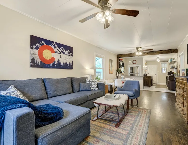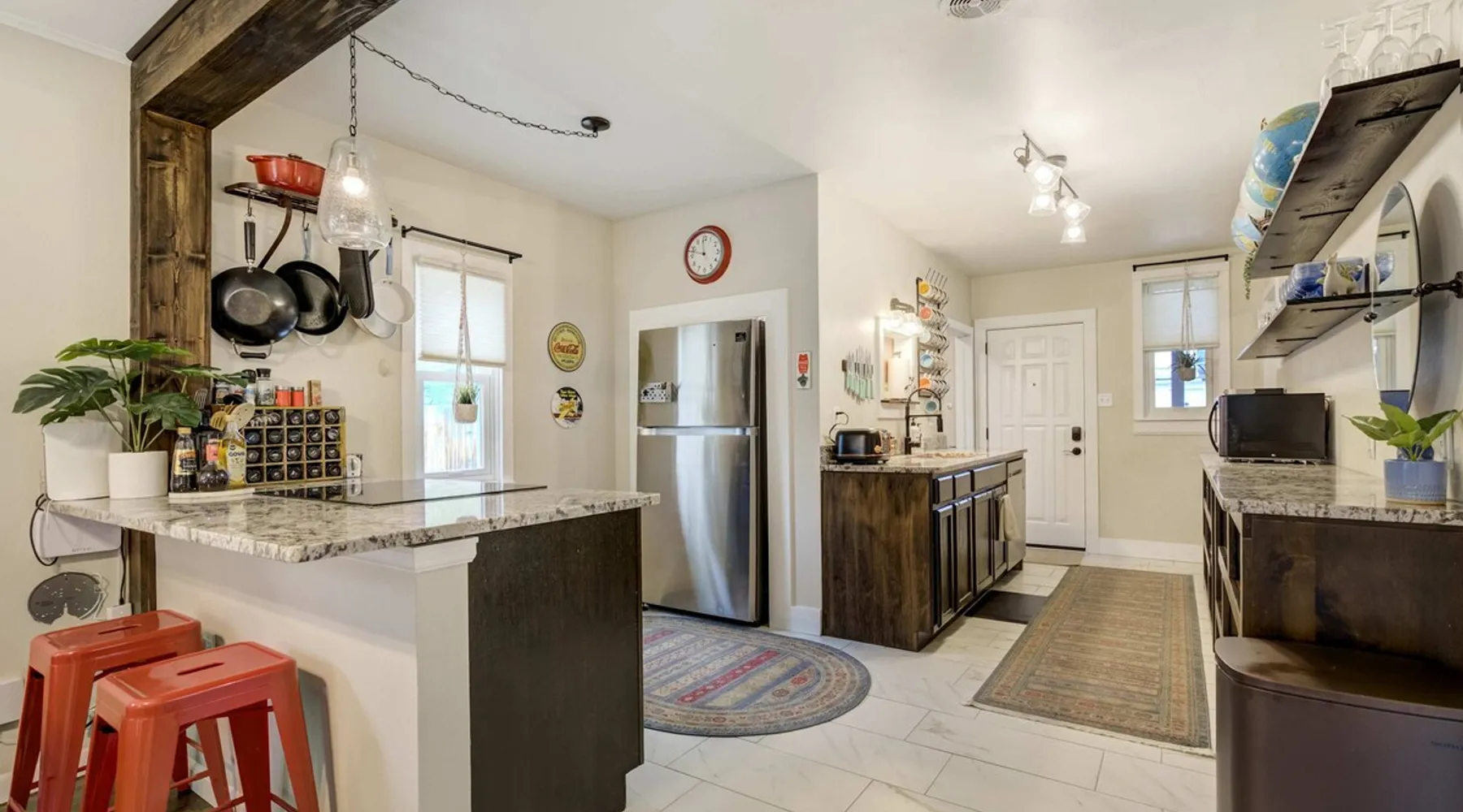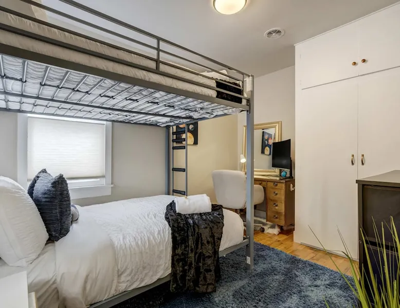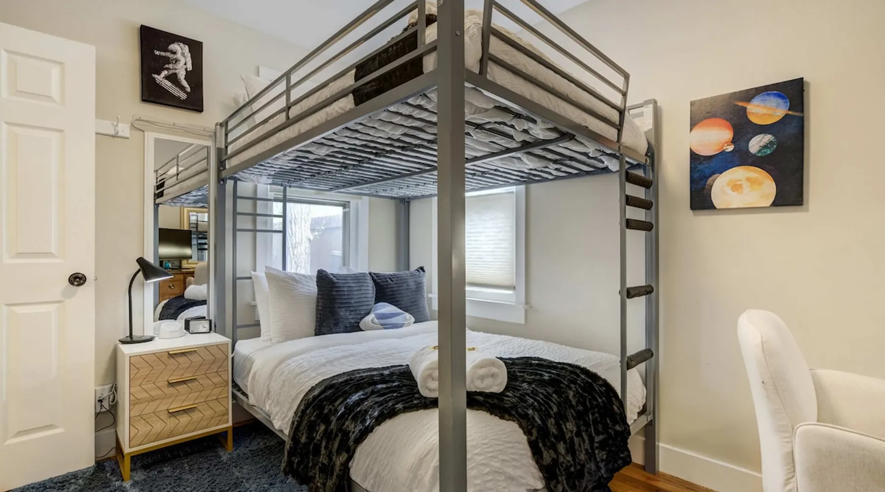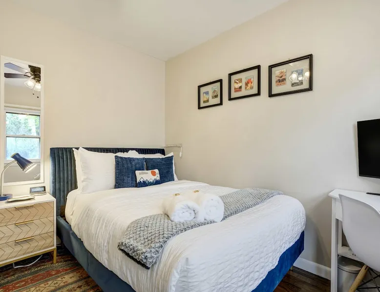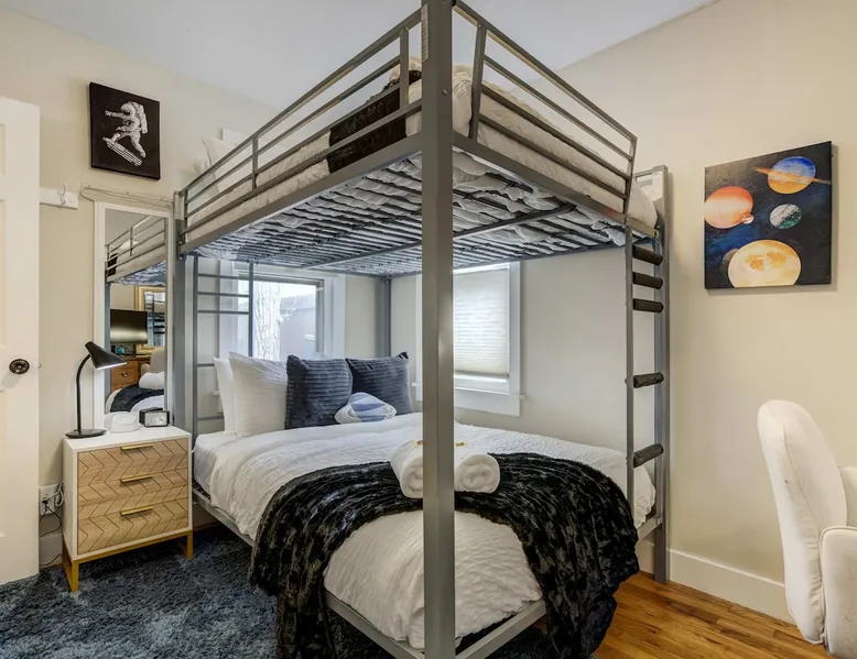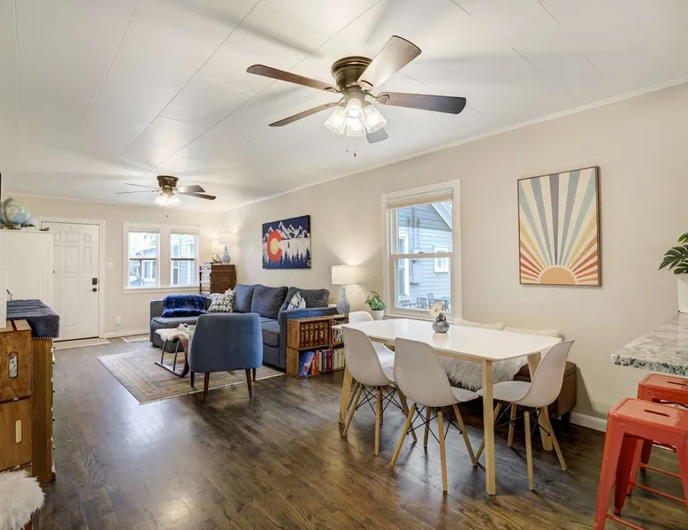 Welcome to Peakstone Nest! A cozy Colorado Springs retreat blending comfort, function, and design! 🔥 Cozy fire pit and outdoor seating area for relaxing nights 🪵 Thoughtfully designed with warm textures and rustic-modern charm 💻 Home office setup with a curved 27" external monitor 👶 Pet-friendly, includes pack-n-play and high chair for traveling families 📍 Located near Old Colorado City, parks, cafés, and downtown Book your Colorado Springs escape today! The space Peakstone Nest is a cozy single-level retreat that combines comfort, functionality, and warm design. From the open living area to the backyard fire pit and dedicated home office, every space is crafted for relaxation and ease. 🛋️ Living Room(s) The open-concept living area is full of warmth and charm, featuring a plush blue sectional, hardwood floors, and mountain-inspired artwork. Gather for movie nights, morning coffee, or game nights in this cozy, stylish space. Ceiling fans and natural light make it an easy place to unwind year-round. 🍽️ Kitchens & Dining The kitchen blends function and design with granite countertops, stainless steel appliances, and curated open shelving. A wall-mounted pot rack keeps essentials close at hand, while track lighting and a window above the sink add brightness. The adjacent dining area overlooks the backyard—ideal for relaxed meals or takeout from nearby spots. A complimentary coffee station with pods and a curated spice rack make prepping meals feel effortless. 🛏️ Bedroom/s & Sleeping Arrangement/s Bedroom 1: King bed Bedroom 2: Full bed Bedroom 3: Full-over-full bunk bed 🛁 Bathrooms The full bathroom includes a mosaic-tiled shower, LED-lit mirror, modern vanity, and a tub perfect for soaking. Stocked with plush towels and essential toiletries to keep you refreshed throughout your stay. 🧺 Laundry In-unit washer and dryer with extra storage space, making longer stays a breeze. 🌿 Outdoor Spaces Step outside to your own backyard retreat—featuring a cozy fire pit, bench seating, and a covered patio for shaded relaxation. Whether you’re enjoying a peaceful morning or gathering under the stars, this outdoor space is a guest favorite. 💻 Remote Work Setup Need to get a little work done between adventures? A dedicated workspace includes a curved 27" external monitor, comfortable desk chair, and plenty of natural light. It’s the perfect nook for video calls, creative focus, or extended remote stays. 🐾 Pet-Friendly Details Peakstone Nest is pet-friendly. If you are bringing a pet, there is a mandatory pet fee of $100 per pet, with a maximum of 2 pets allowed. Please let us know ahead of time if you plan to bring your furry friends. 👶 Kid-Friendly Touches Includes a pack-n-play and high chair to make family travel easy and comfortable. 🅿️ Parking Front street parking is available, along with one private spot in the back off the alleyway. Guest access 🔑You'll have full access to the entire home, including all bedrooms, living areas, the kitchen, and outdoor spaces. Feel free to make yourself at home and enjoy everything the space has to offer. If you have any questions or need anything during your stay, just let us know—we’re happy to help! Other things to note 📜 Rental Agreement: For a seamless booking experience, a Rental Agreement is required for all reservations. Once your reservation is confirmed, we’ll provide details for completing the agreement. 🔑 Check-In Process: For a seamless check-in experience, your unique code along with your check-in instructions will be updated into your personalized guidebook on the morning of your arrival. You’ll use this code for entry. ☕ Starter Supply: We’ve prepared a starter supply that includes paper towels, coffee K-cups, toilet paper, shampoo, body wash, and plush white towels! We hope these amenities add an extra touch of comfort to your stay. ⏰ Unauthorized Late Checkout Fee: $20 Per Half Hour Late 💵 Additional Fees: For guests bringing dogs, there is a mandatory pet fee of $100 per dog, collected after booking. A maximum of 2 dogs is allowed per reservation unless otherwise approved. No other animals are permitted. Optional services, including early check-in, late check-out, and additional guests, can be arranged upon request and are subject to availability. These additional fees help cover the cost of reworking the schedule or adding an additional cleaner if needed. Please message us ahead of time for pricing and availability.