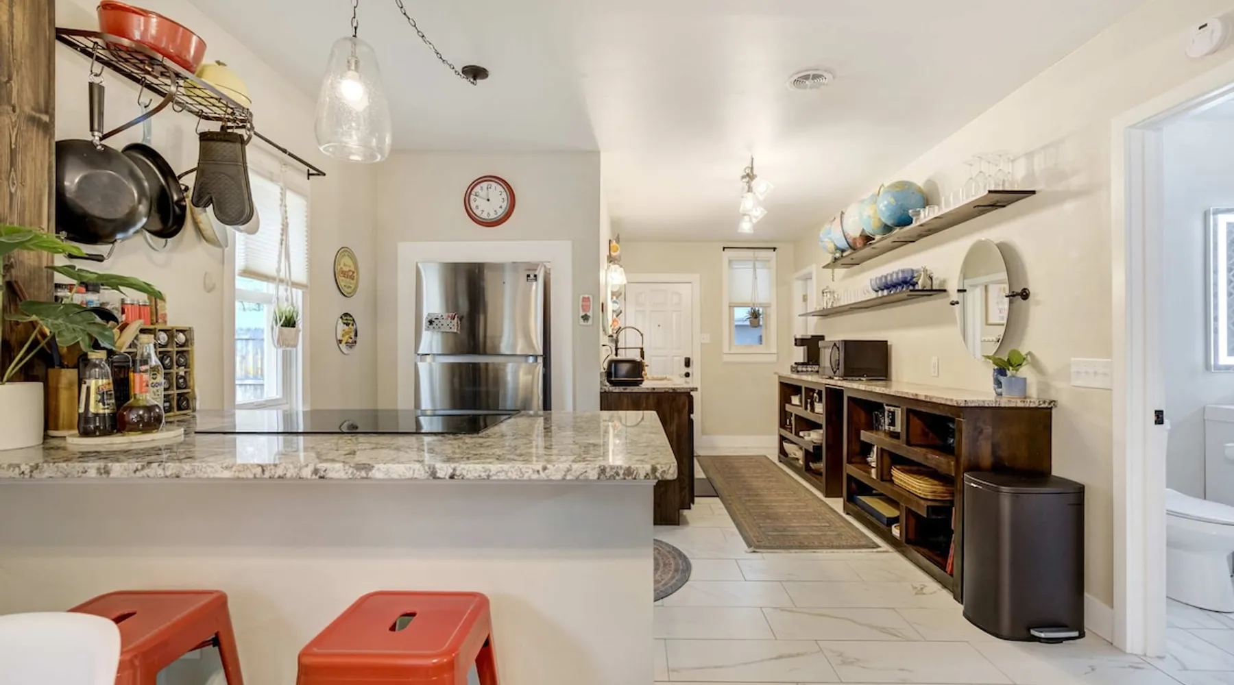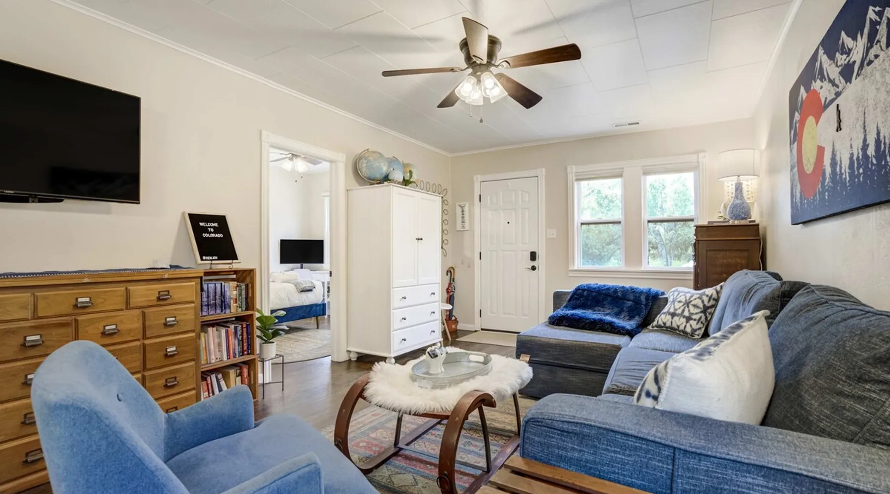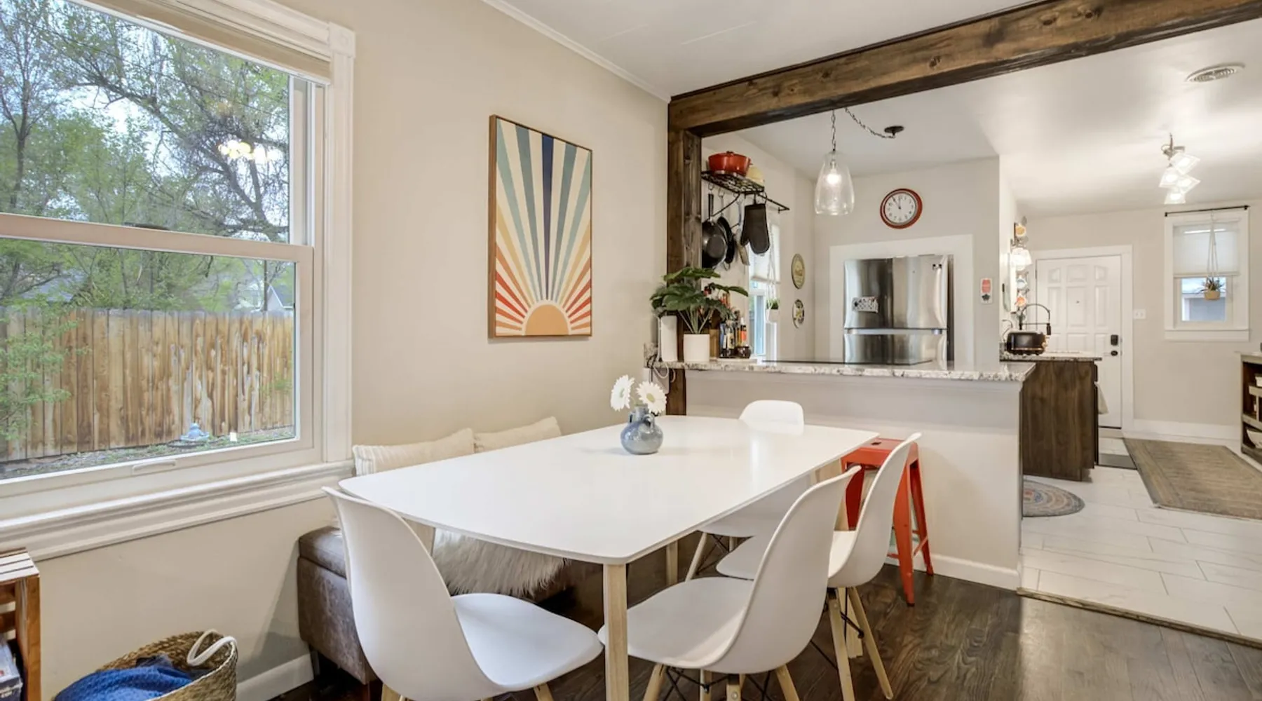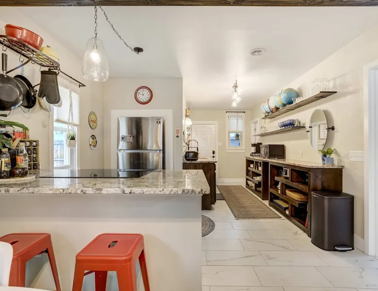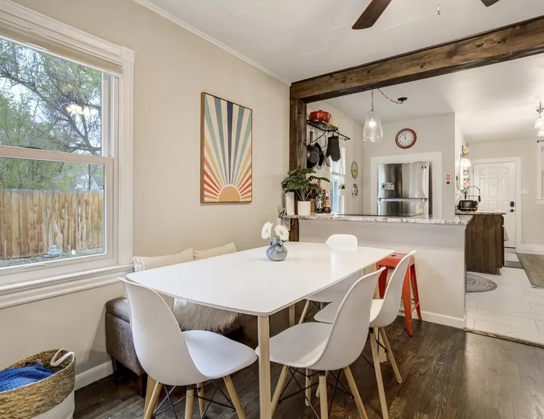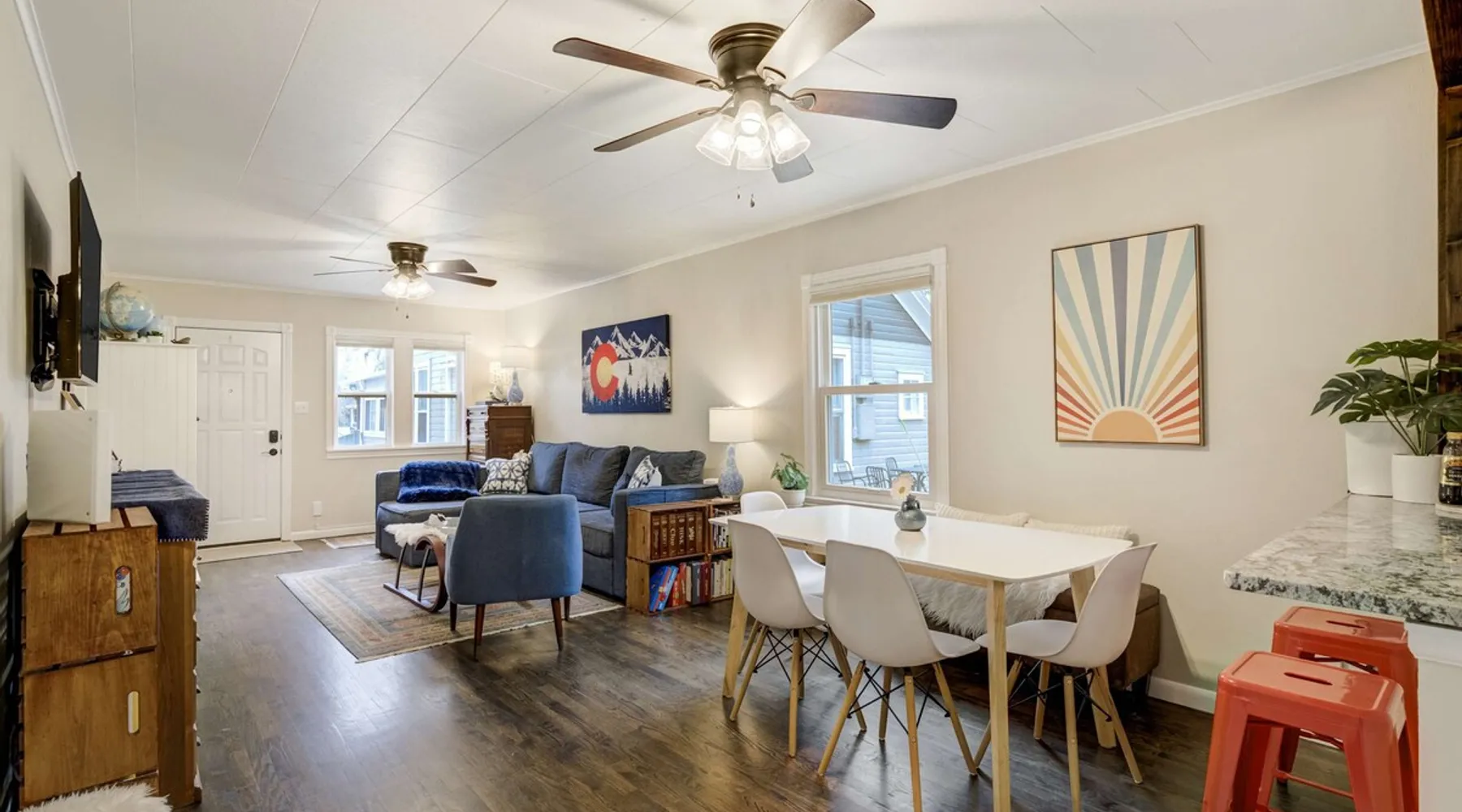 Welcome to Peakstone Nest! A cozy Colorado Springs retreat blending comfort, function, and design! 🔥 Cozy fire pit and outdoor seating area for relaxing nights 🪵 Thoughtfully designed with warm textures and rustic-modern charm 💻 Home office setup with a curved 27" external monitor 👶 Pet-friendly, includes pack-n-play and high chair for traveling families 📍 Located near Old Colorado City, parks, cafés, and downtown Book your Colorado Springs escape today! The space Peakstone Nest is a cozy single-level retreat that combines comfort, functionality, and warm design. From the open living area to the backyard fire pit and dedicated home office, every space is crafted for relaxation and ease. 🛋️ Living Room(s) The open-concept living area is full of warmth and charm, featuring a plush blue sectional, hardwood floors, and mountain-inspired artwork. Gather for movie nights, morning coffee, or game nights in this cozy, stylish space. Ceiling fans and natural light make it an easy place to unwind year-round. 🍽️ Kitchens & Dining The kitchen blends function and design with granite countertops, stainless steel appliances, and curated open shelving. A wall-mounted pot rack keeps essentials close at hand, while track lighting and a window above the sink add brightness. The adjacent dining area overlooks the backyard—ideal for relaxed meals or takeout from nearby spots. A complimentary coffee station with pods and a curated spice rack make prepping meals feel effortless. 🛏️ Bedroom/s & Sleeping Arrangement/s Bedroom 1: King bed Bedroom 2: Full bed Bedroom 3: Full-over-full bunk bed 🛁 Bathrooms The full bathroom includes a mosaic-tiled shower, LED-lit mirror, modern vanity, and a tub perfect for soaking. Stocked with plush towels and essential toiletries to keep you refreshed throughout your stay. 🧺 Laundry In-unit washer and dryer with extra storage space, making longer stays a breeze. 🌿 Outdoor Spaces Step outside to your own backyard retreat—featuring a cozy fire pit, bench seating, and a covered patio for shaded relaxation. Whether you’re enjoying a peaceful morning or gathering under the stars, this outdoor space is a guest favorite. 💻 Remote Work Setup Need to get a little work done between adventures? A dedicated workspace includes a curved 27" external monitor, comfortable desk chair, and plenty of natural light. It’s the perfect nook for video calls, creative focus, or extended remote stays. 🐾 Pet-Friendly Details Peakstone Nest is pet-friendly. If you are bringing a pet, there is a mandatory pet fee of $100 per pet, with a maximum of 2 pets allowed. Please let us know ahead of time if you plan to bring your furry friends. 👶 Kid-Friendly Touches Includes a pack-n-play and high chair to make family travel easy and comfortable. 🅿️ Parking Front street parking is available, along with one private spot in the back off the alleyway. Guest access 🔑You'll have full access to the entire home, including all bedrooms, living areas, the kitchen, and outdoor spaces. Feel free to make yourself at home and enjoy everything the space has to offer. If you have any questions or need anything during your stay, just let us know—we’re happy to help! Other things to note 📜 Rental Agreement: For a seamless booking experience, a Rental Agreement is required for all reservations. Once your reservation is confirmed, we’ll provide details for completing the agreement. 🔑 Check-In Process: For a seamless check-in experience, your unique code along with your check-in instructions will be updated into your personalized guidebook on the morning of your arrival. You’ll use this code for entry. ☕ Starter Supply: We’ve prepared a starter supply that includes paper towels, coffee K-cups, toilet paper, shampoo, body wash, and plush white towels! We hope these amenities add an extra touch of comfort to your stay. ⏰ Unauthorized Late Checkout Fee: $20 Per Half Hour Late 💵 Additional Fees: For guests bringing dogs, there is a mandatory pet fee of $100 per dog, collected after booking. A maximum of 2 dogs is allowed per reservation unless otherwise approved. No other animals are permitted. Optional services, including early check-in, late check-out, and additional guests, can be arranged upon request and are subject to availability. These additional fees help cover the cost of reworking the schedule or adding an additional cleaner if needed. Please message us ahead of time for pricing and availability.